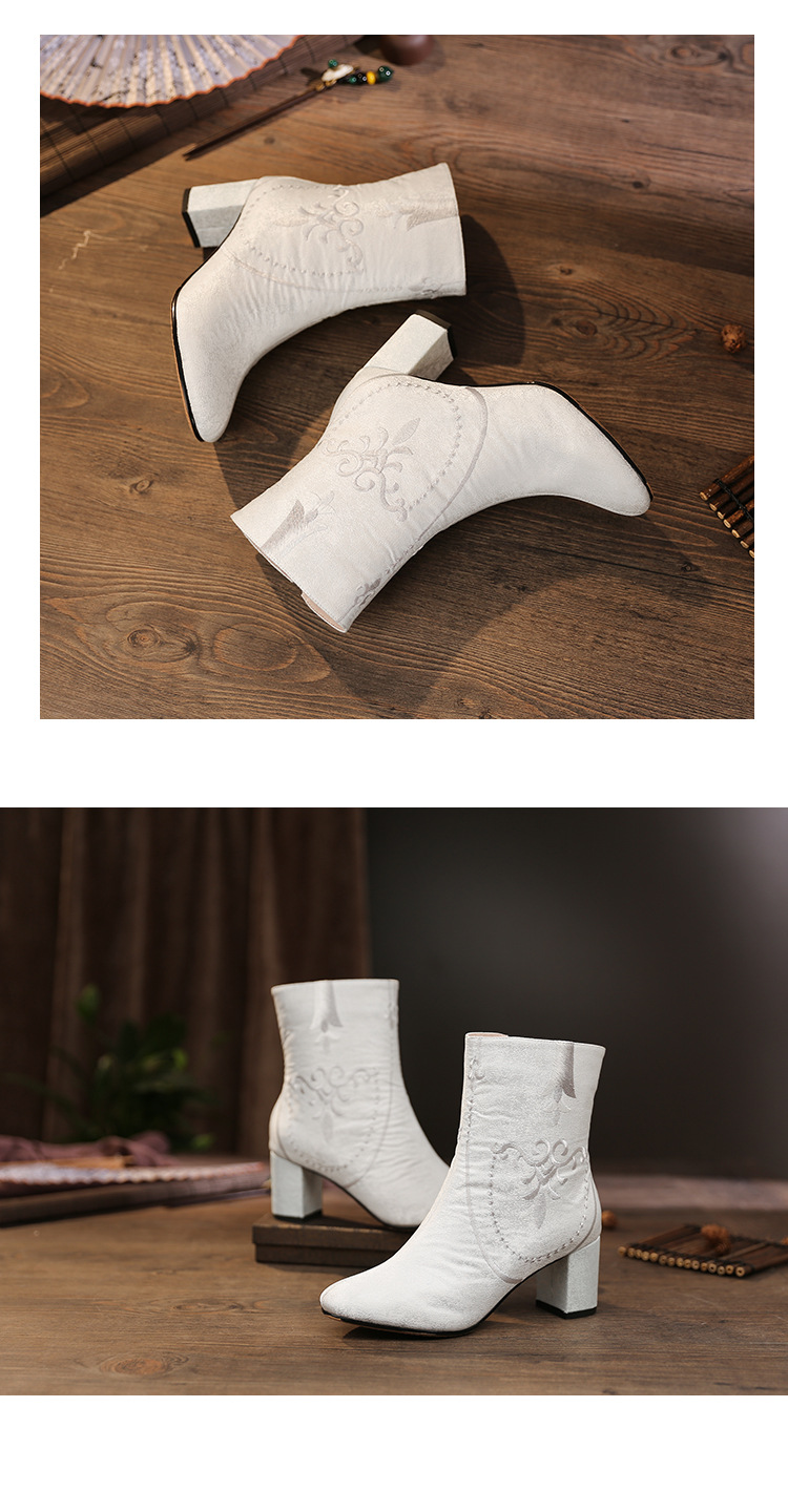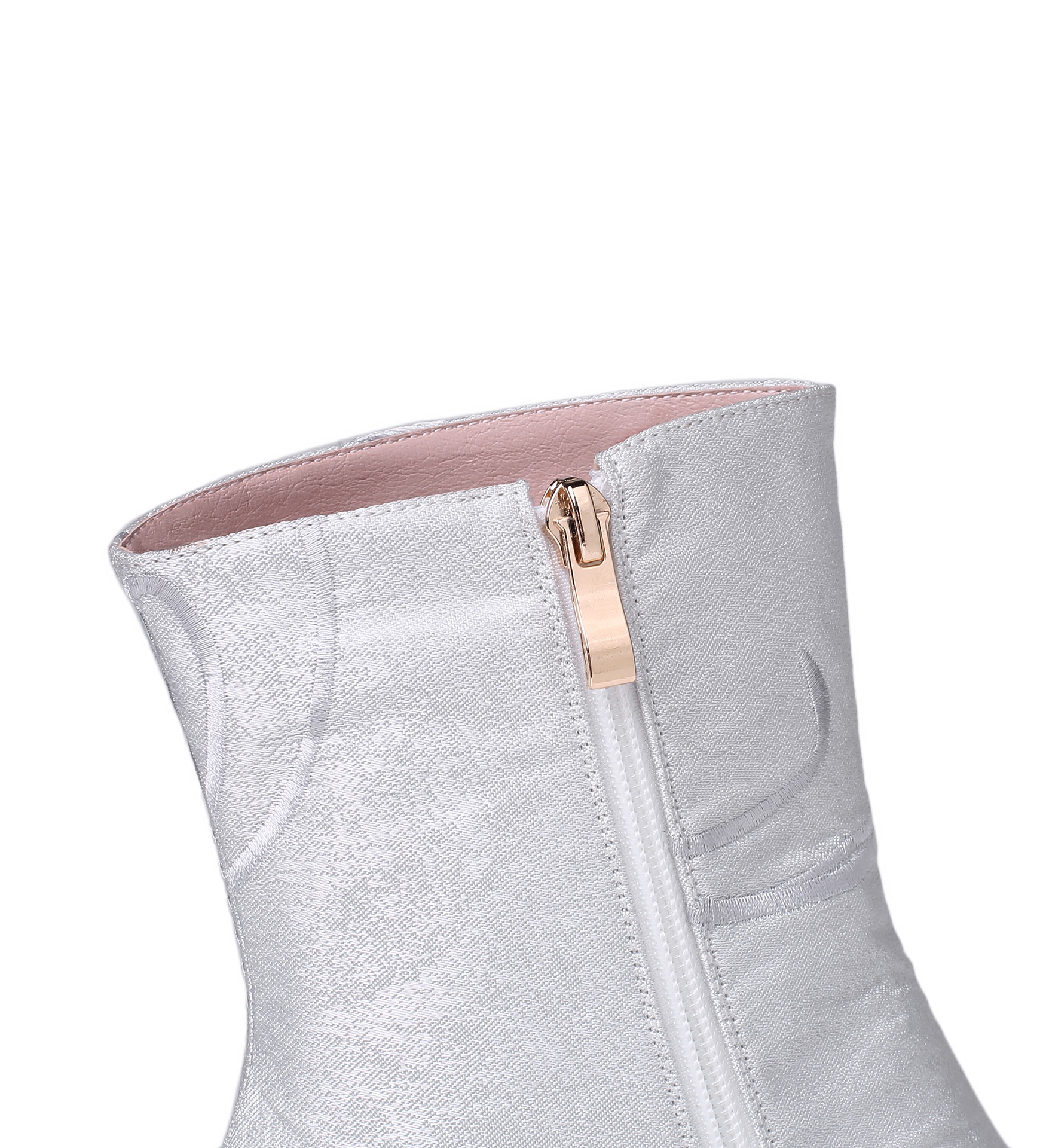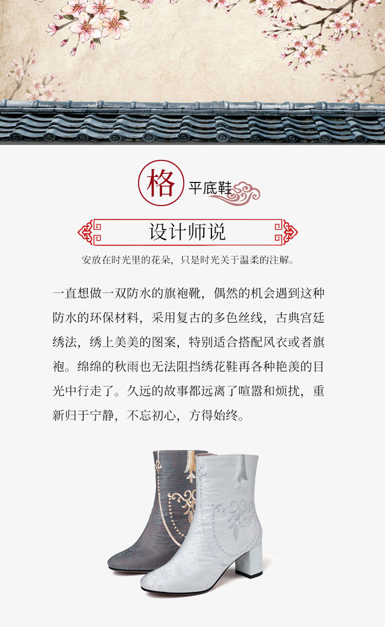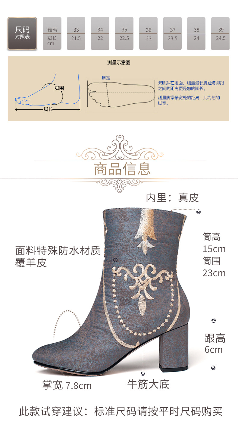 XY-388-2Y轻奢民族风马丁靴提花缎面短靴女粗跟百搭冬季加绒棉靴