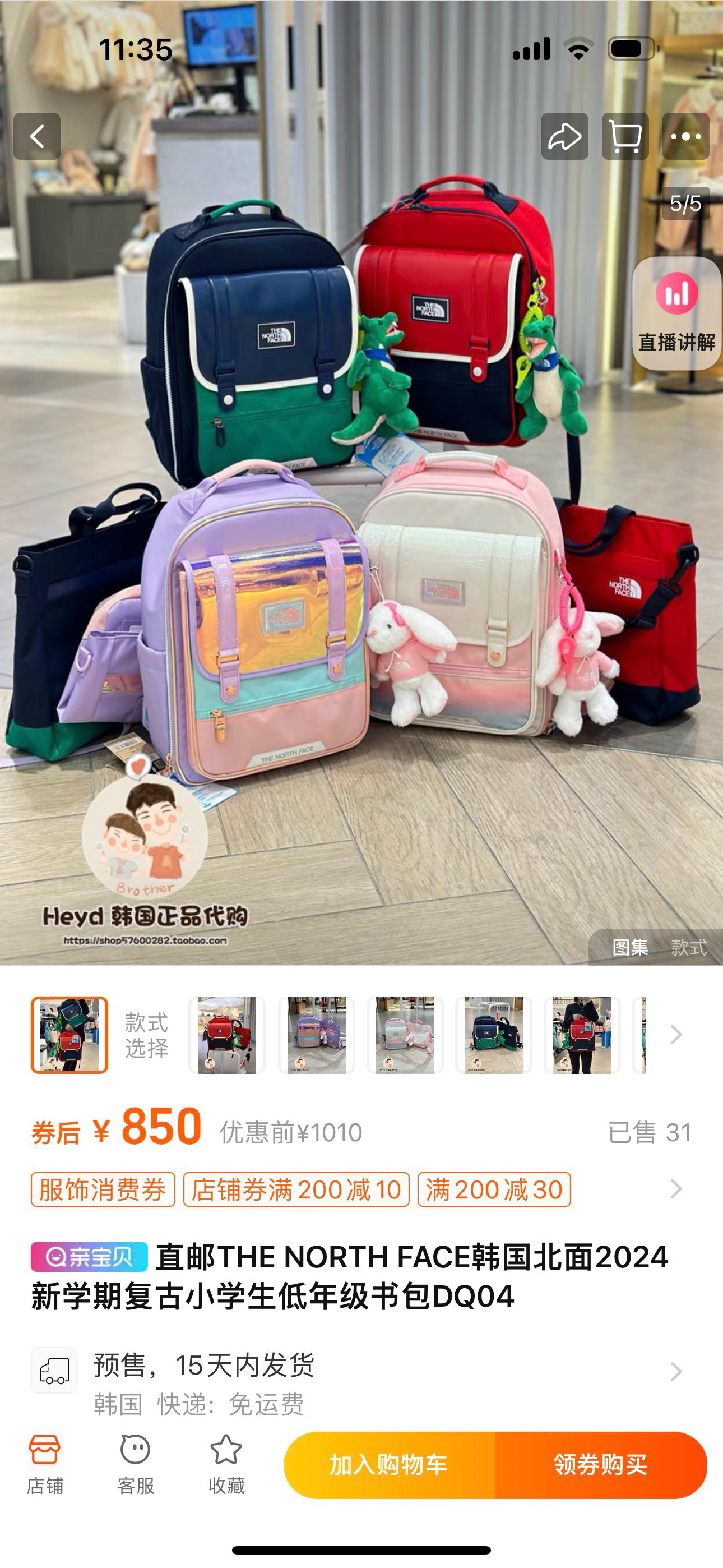 北面儿童书包,大货在线上陆续出货,预计下周三出齐,出来那个色就先发那个色,不接急单!24新款,超级漂亮的小书包适合3年级以下背!