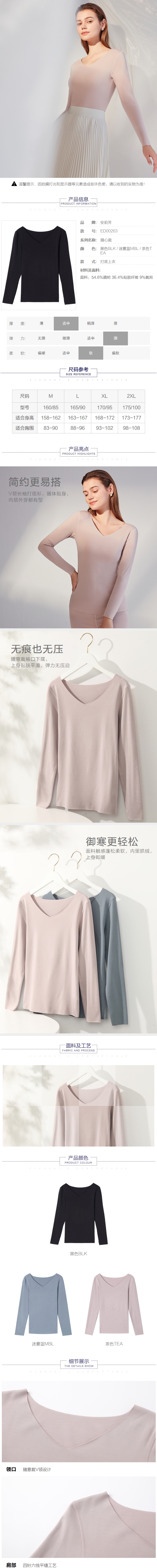 安莉芳专柜新品打底上衣女宽松长袖V领舒适打底衫秋季简约ED00263