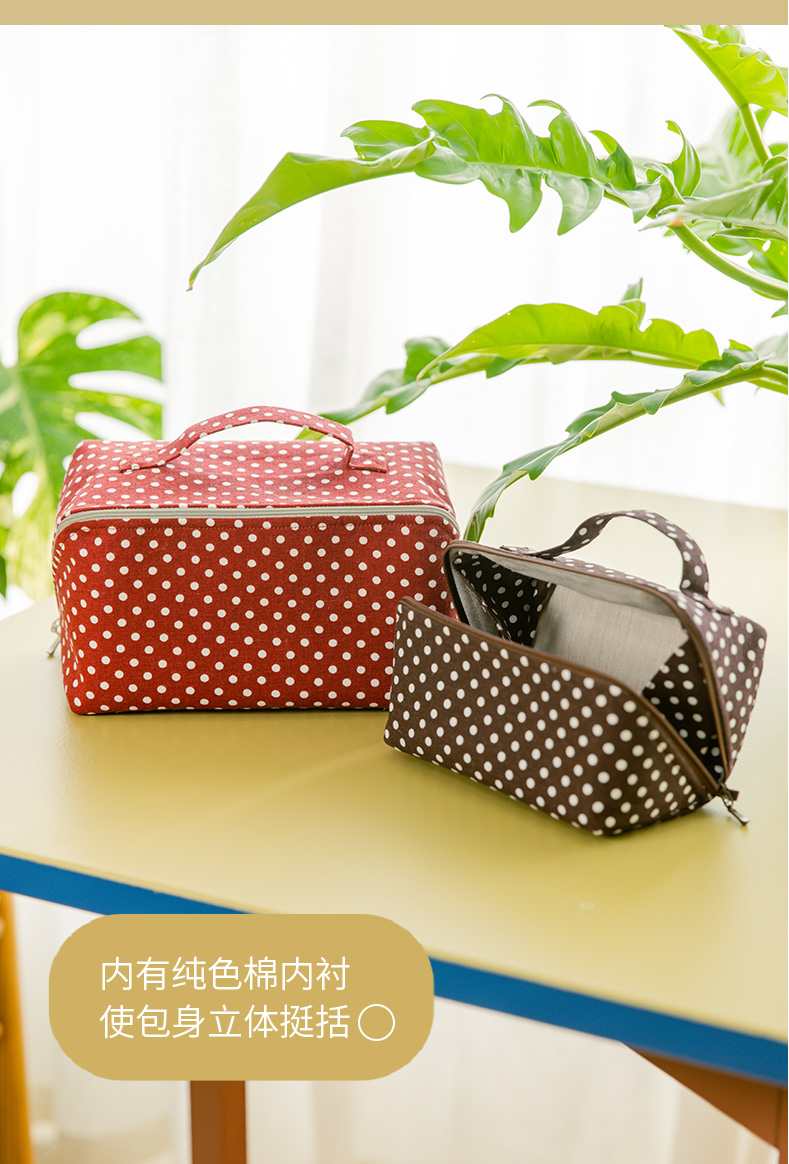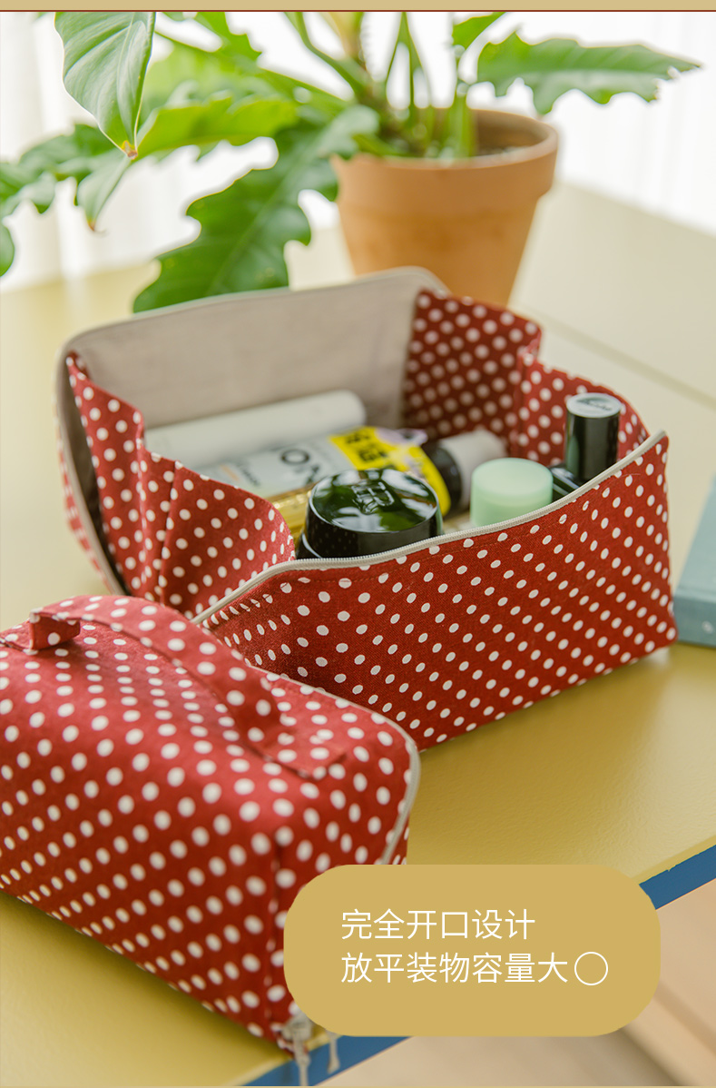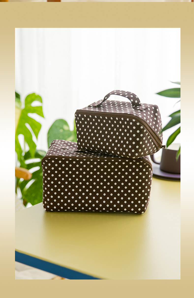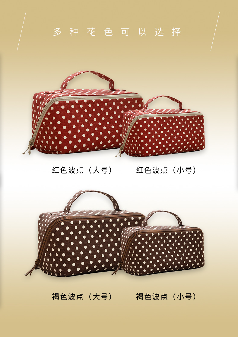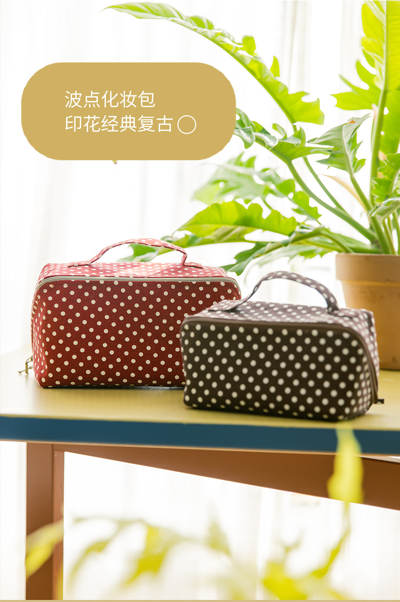 波点化妆包女便携式大容量手提包小拎包收纳包轻奢高级感新款