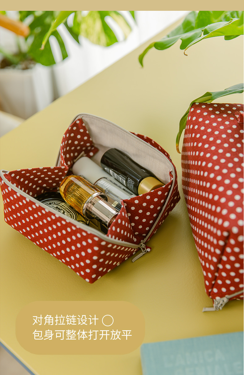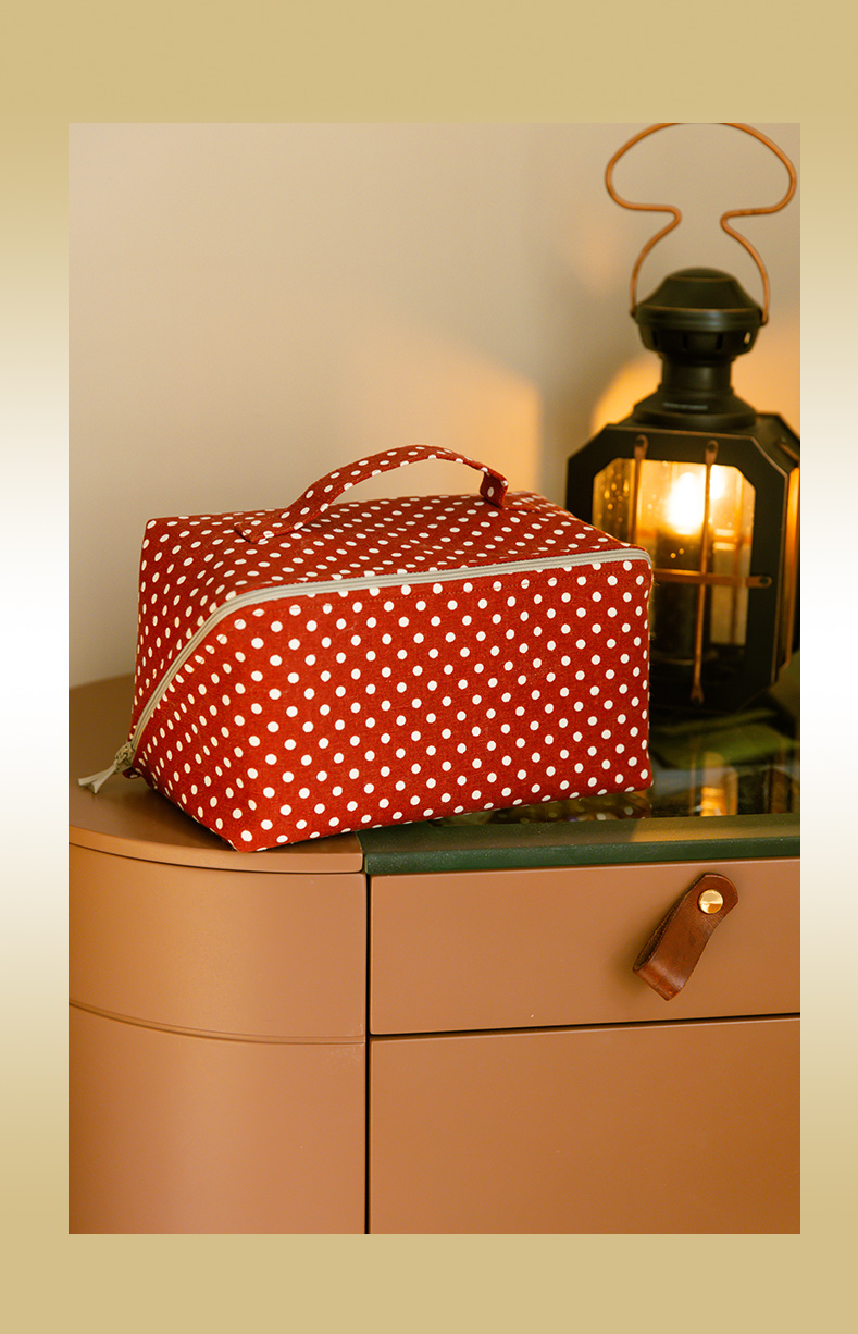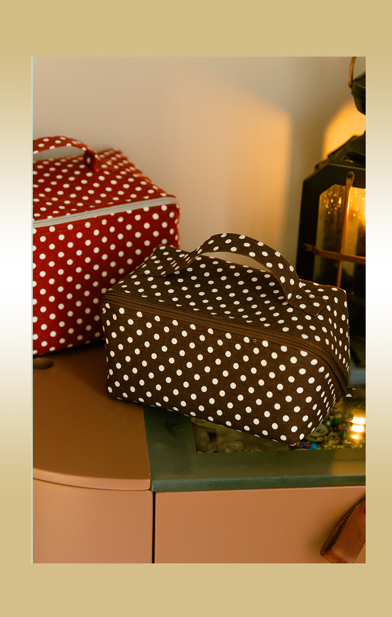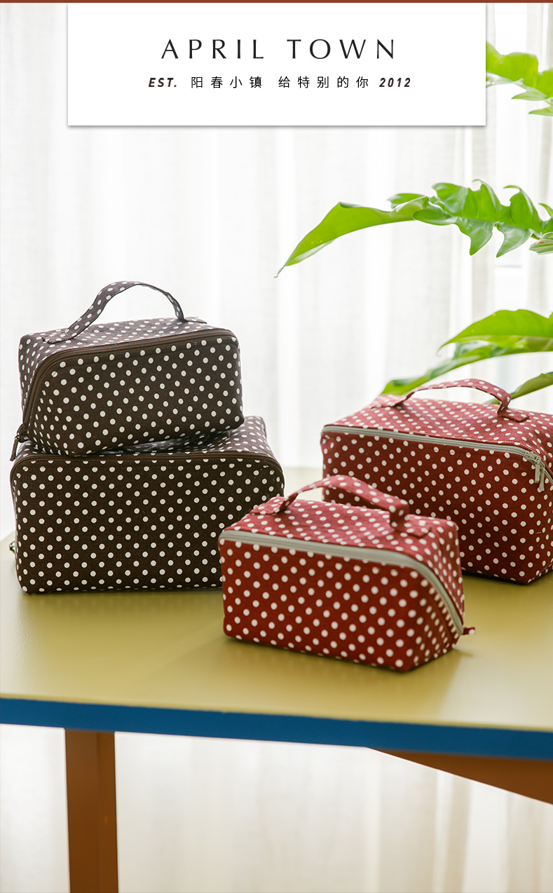 波点化妆包女便携式大容量手提包小拎包收纳包轻奢高级感新款