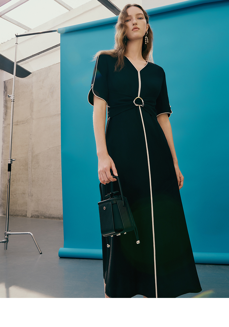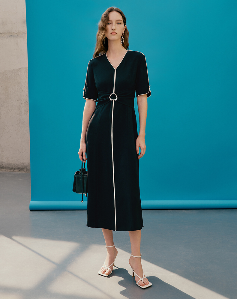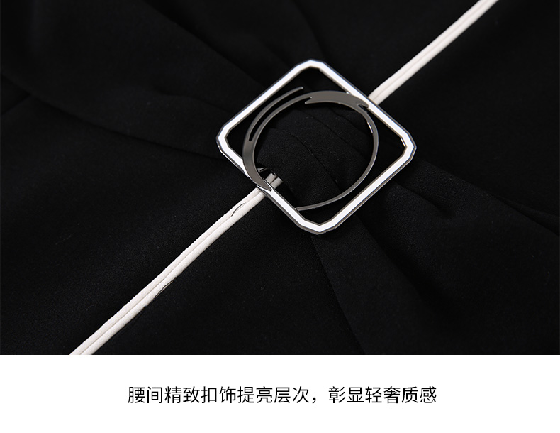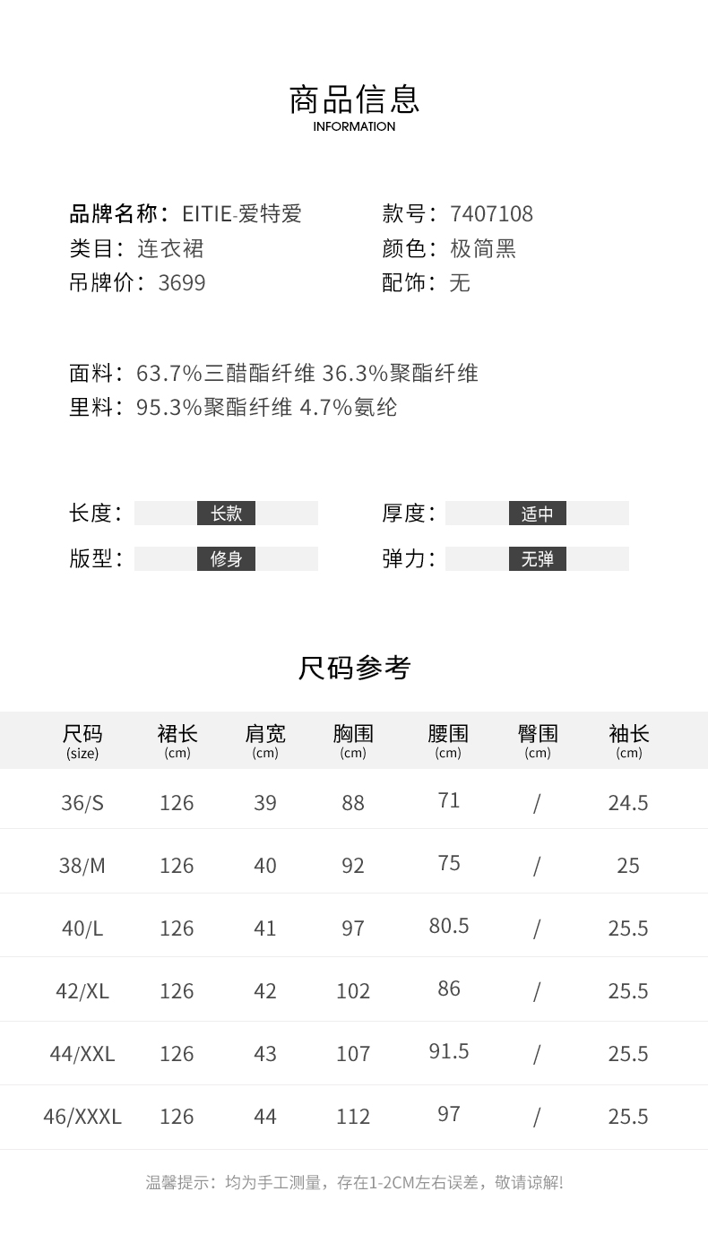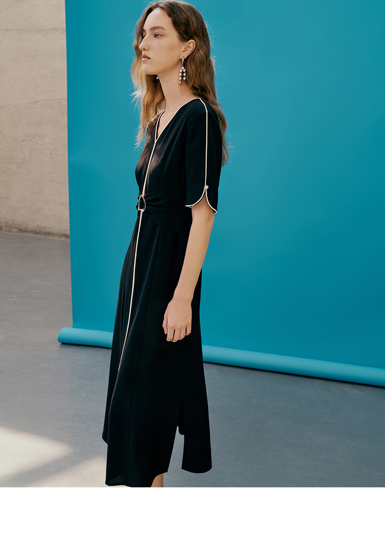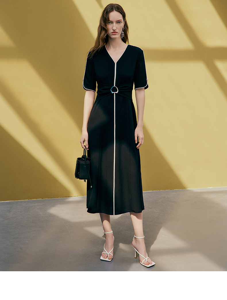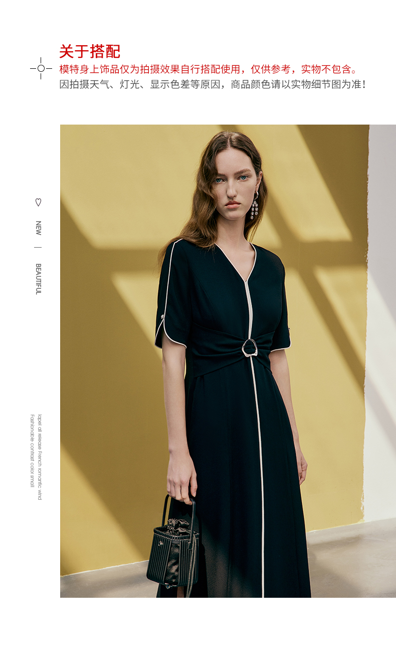 EITIE爱特爱夏季新款干练成熟V领高腰显瘦连衣裙7407108