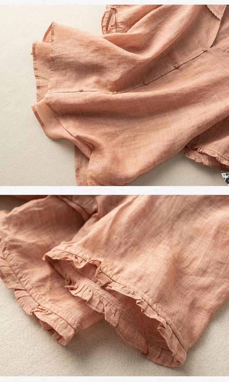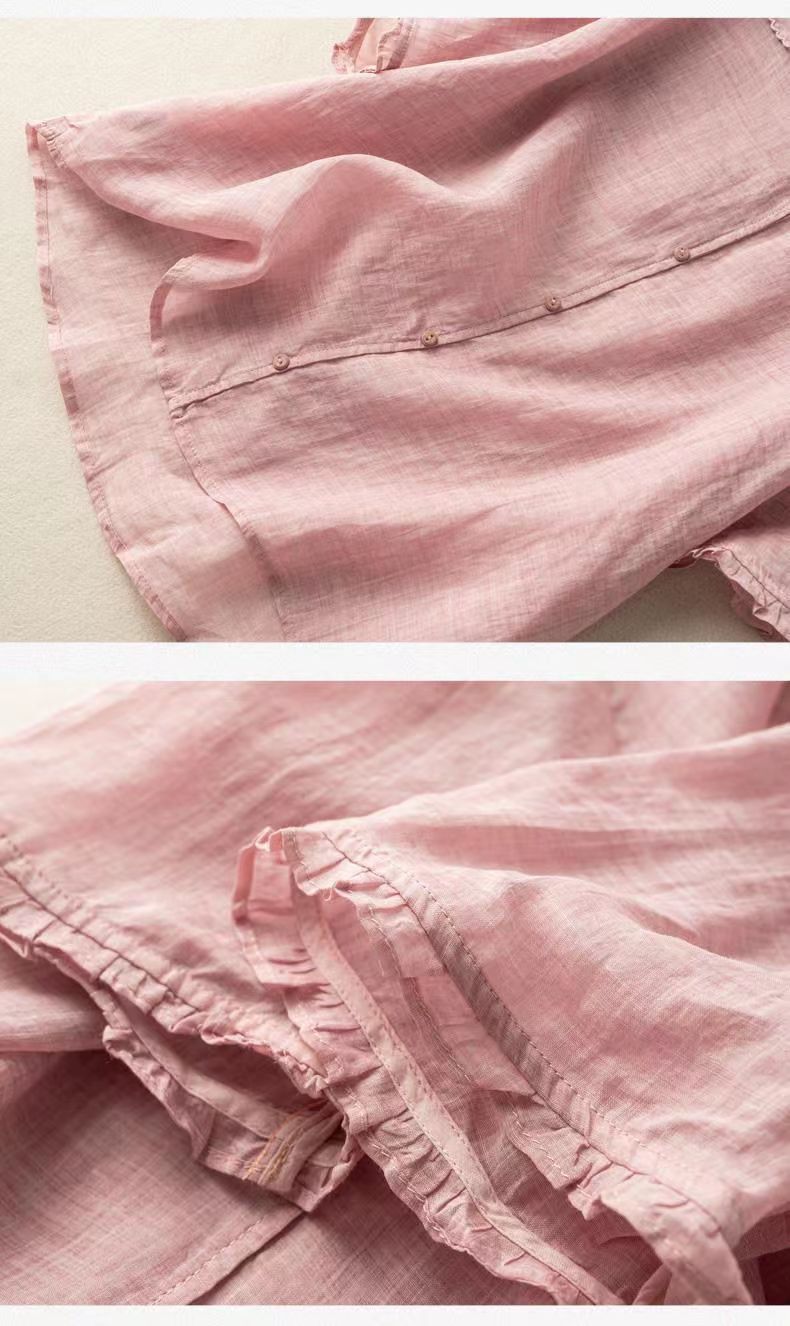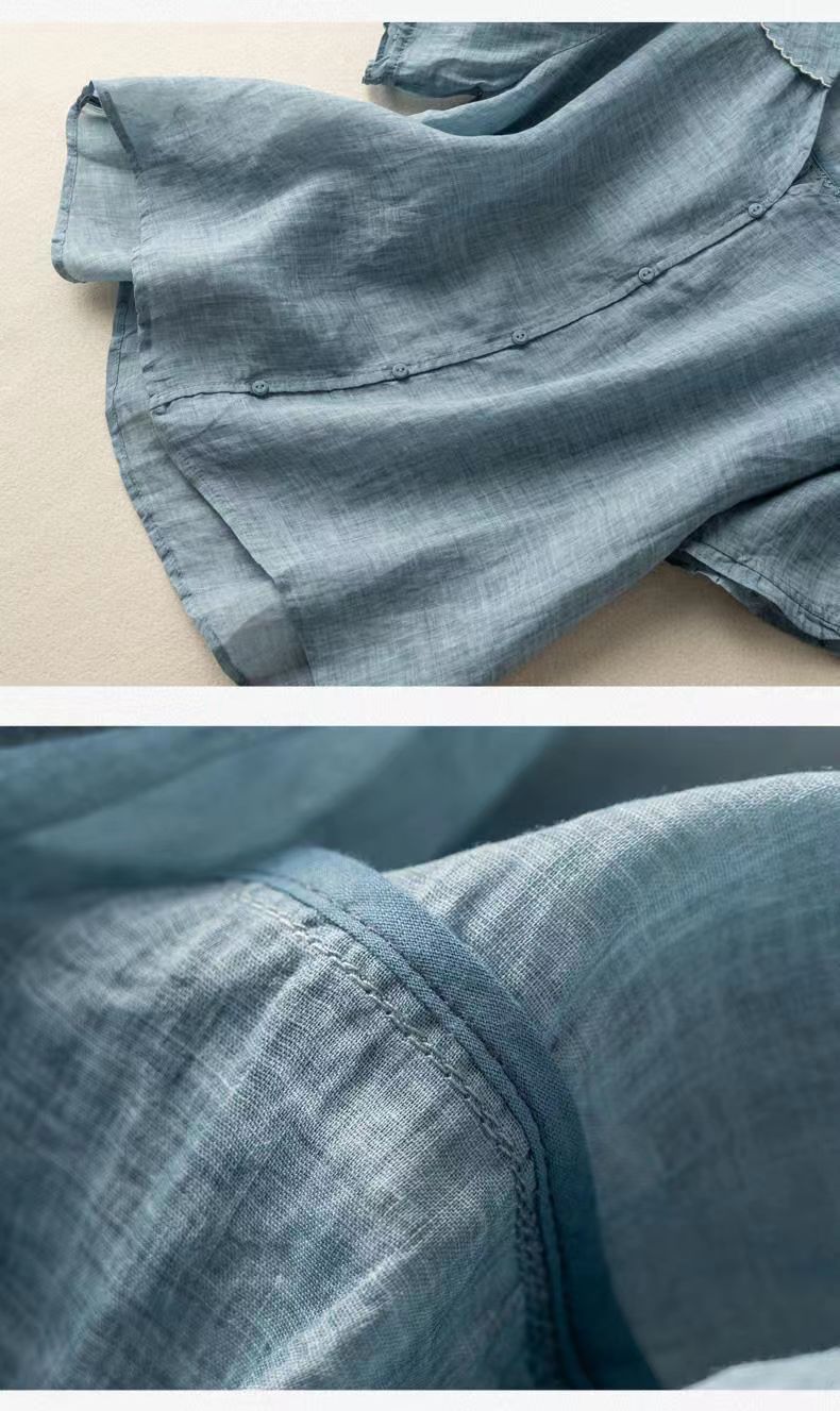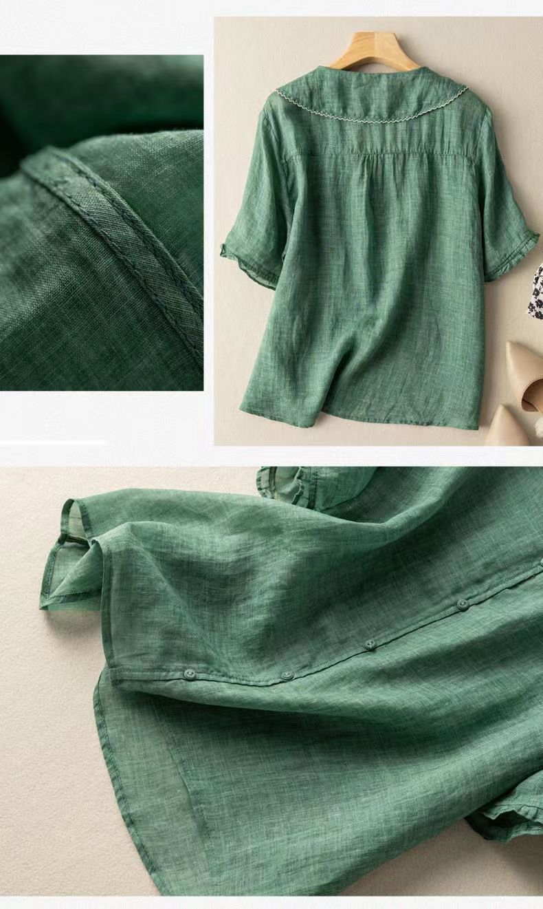 雀说夏季薄款棉麻文艺复古宽松显瘦娃娃领上衣T恤女AL6037