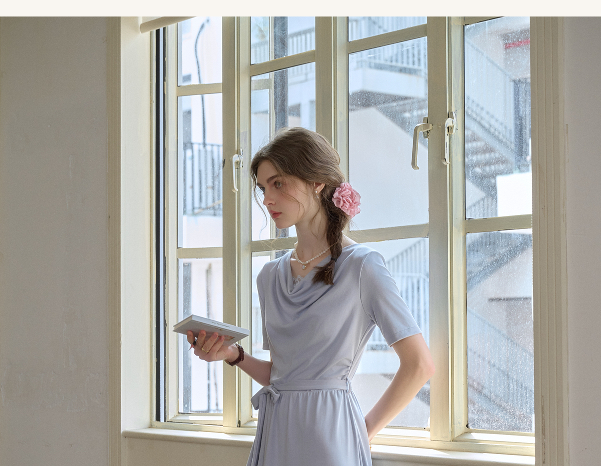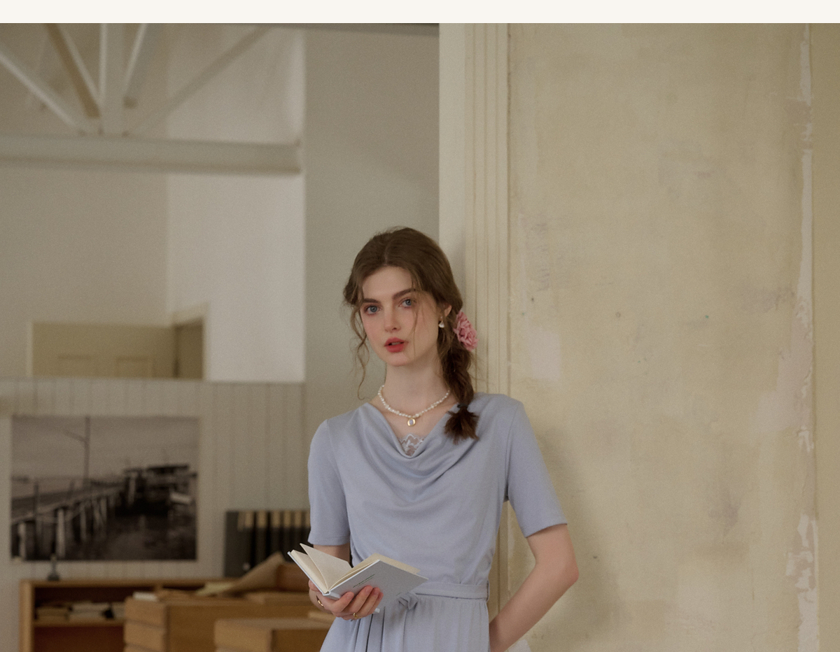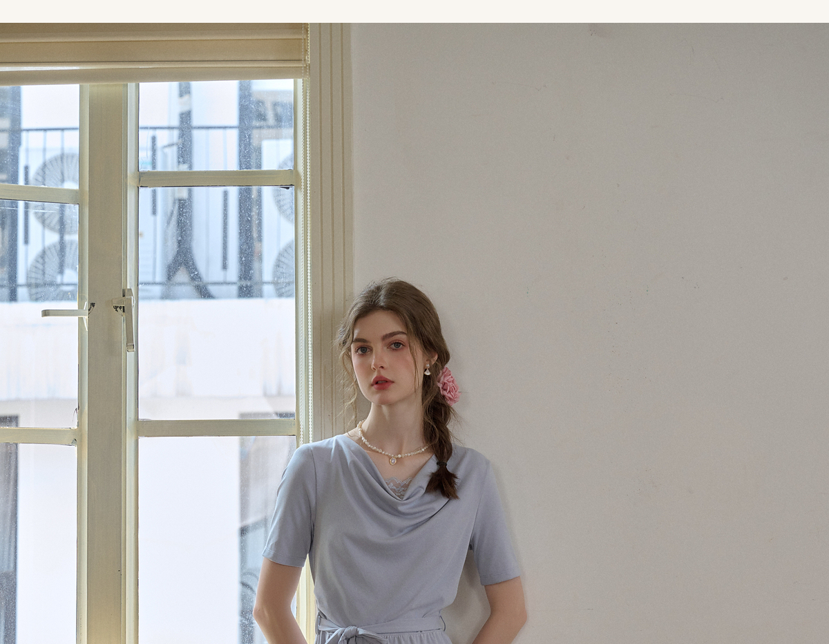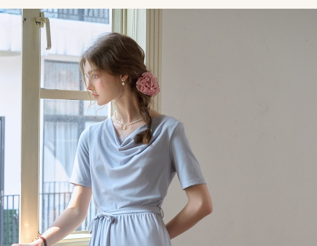 (小眠专属)SimpleRetro法式松弛拼接蕾丝荡领连衣裙女