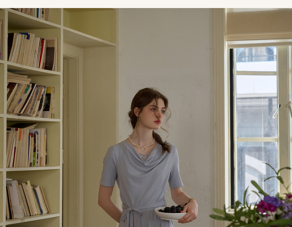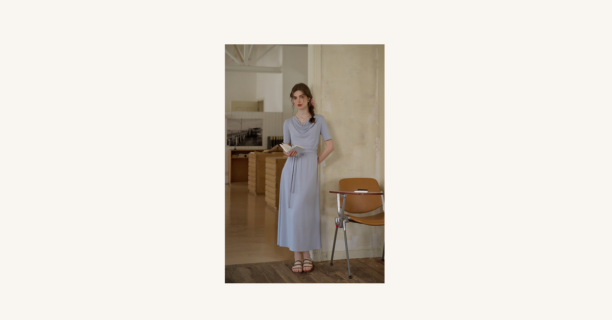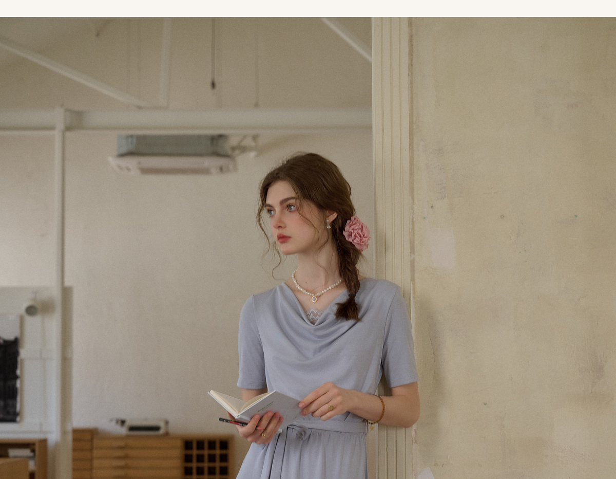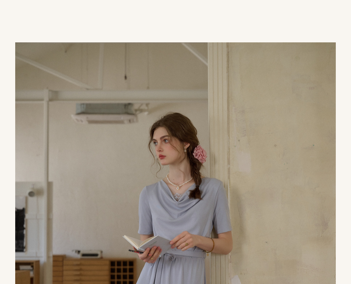 (小眠专属)SimpleRetro法式松弛拼接蕾丝荡领连衣裙女