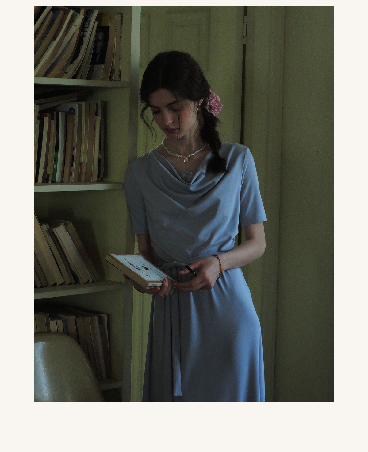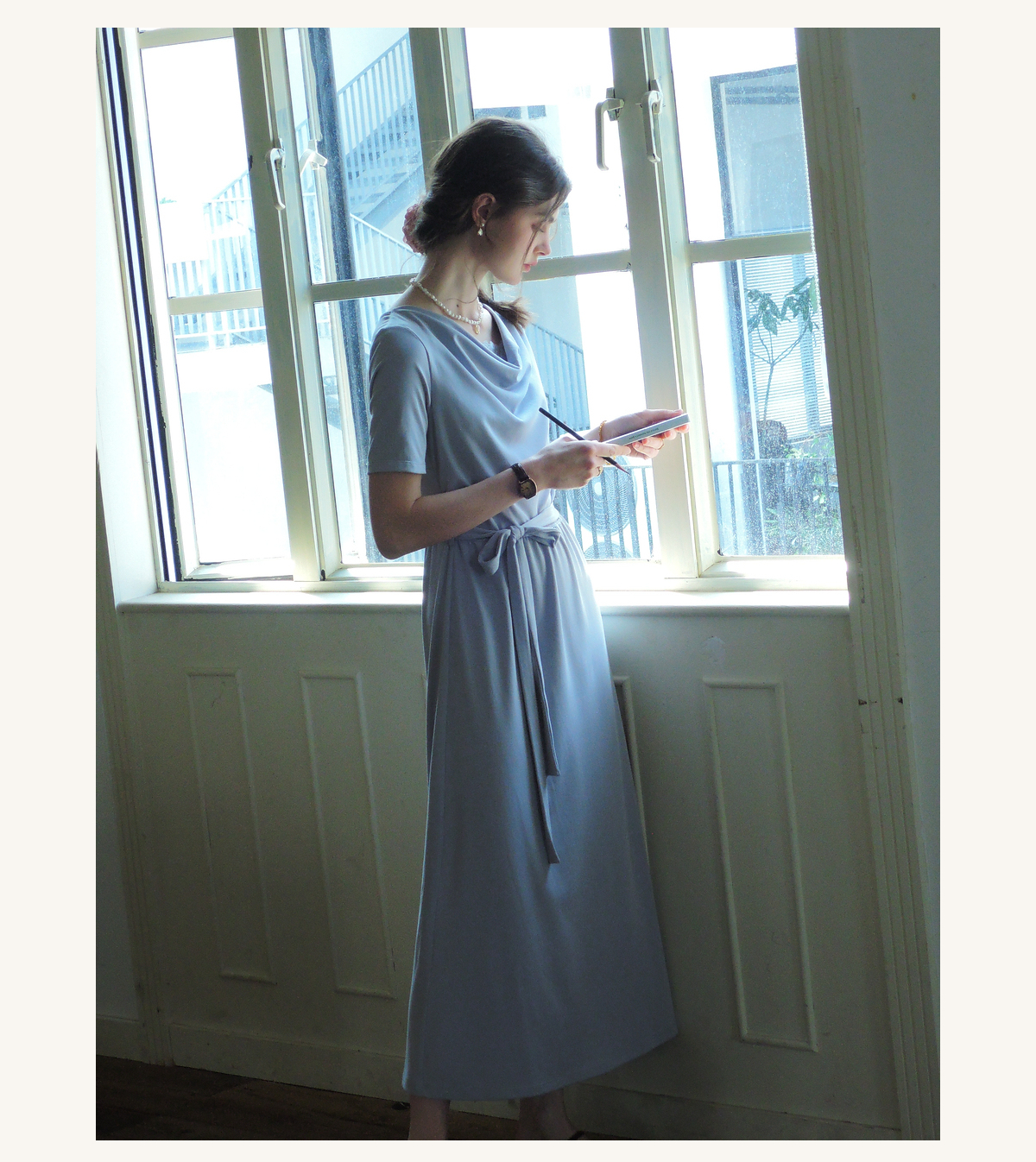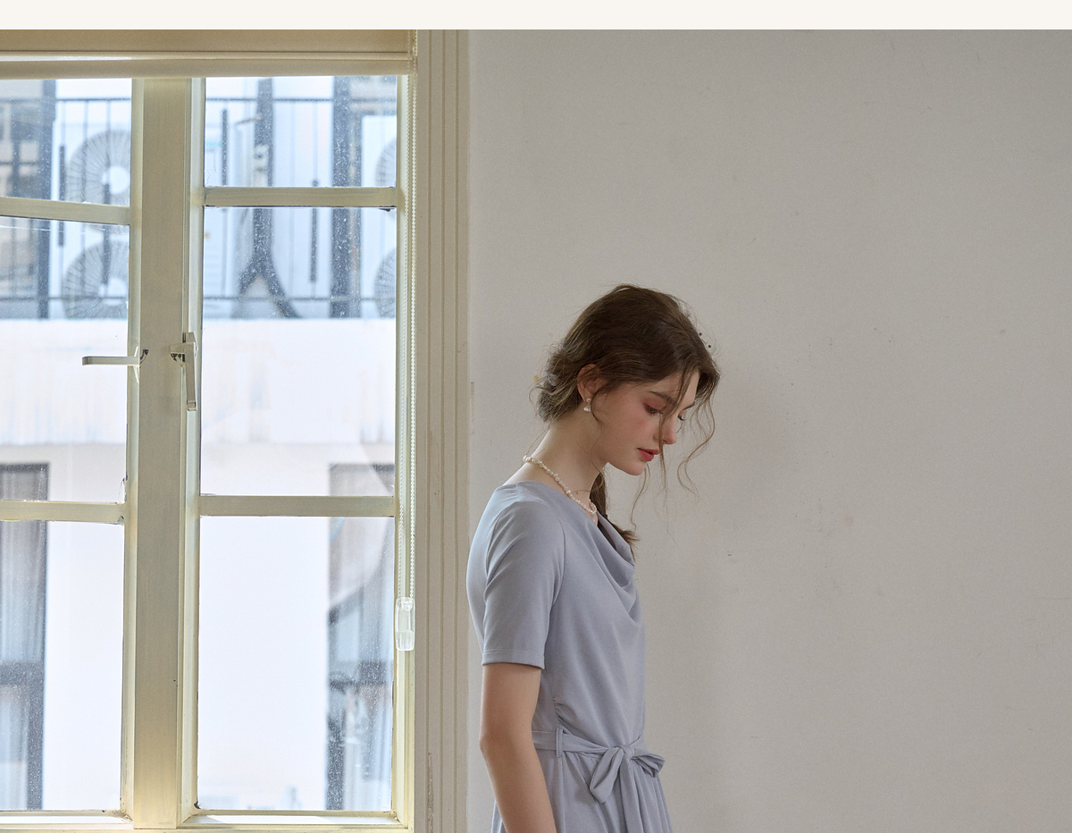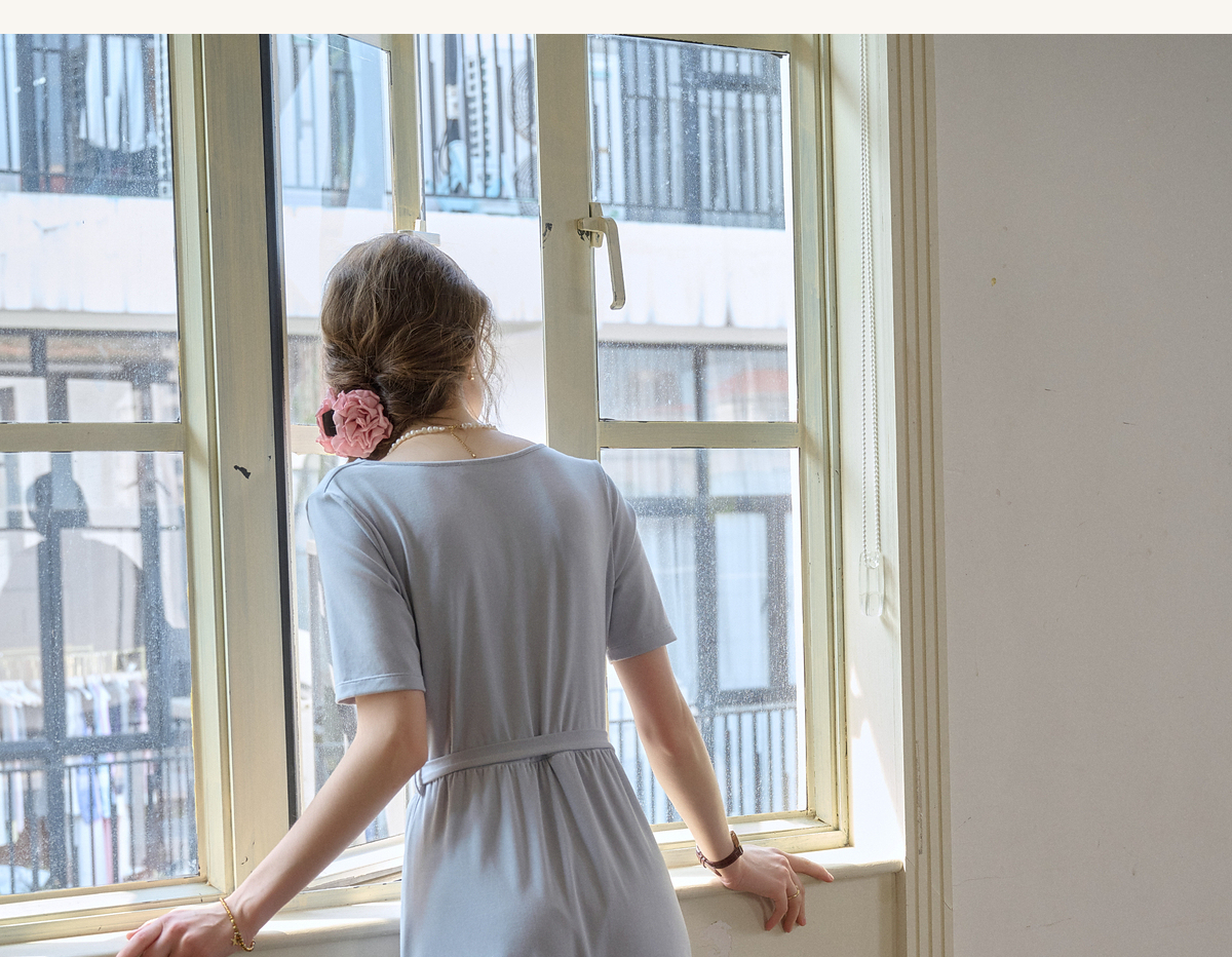 (小眠专属)SimpleRetro法式松弛拼接蕾丝荡领连衣裙女