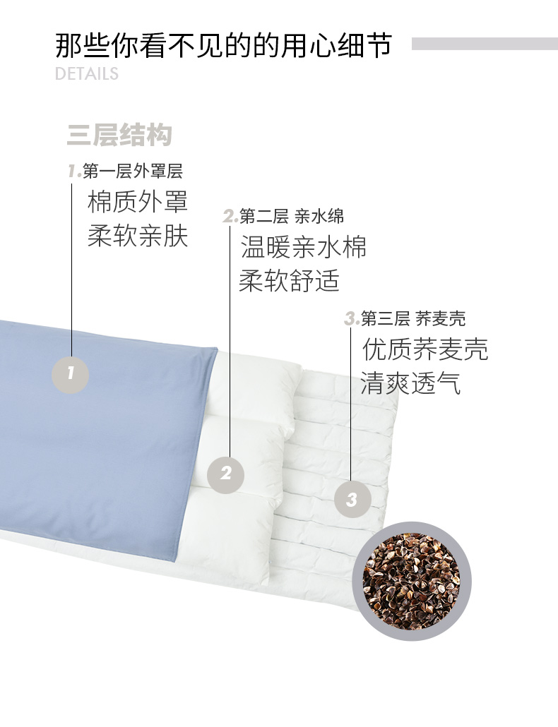 莫兰迪系列双人荞麦壳一体夫妻枕头