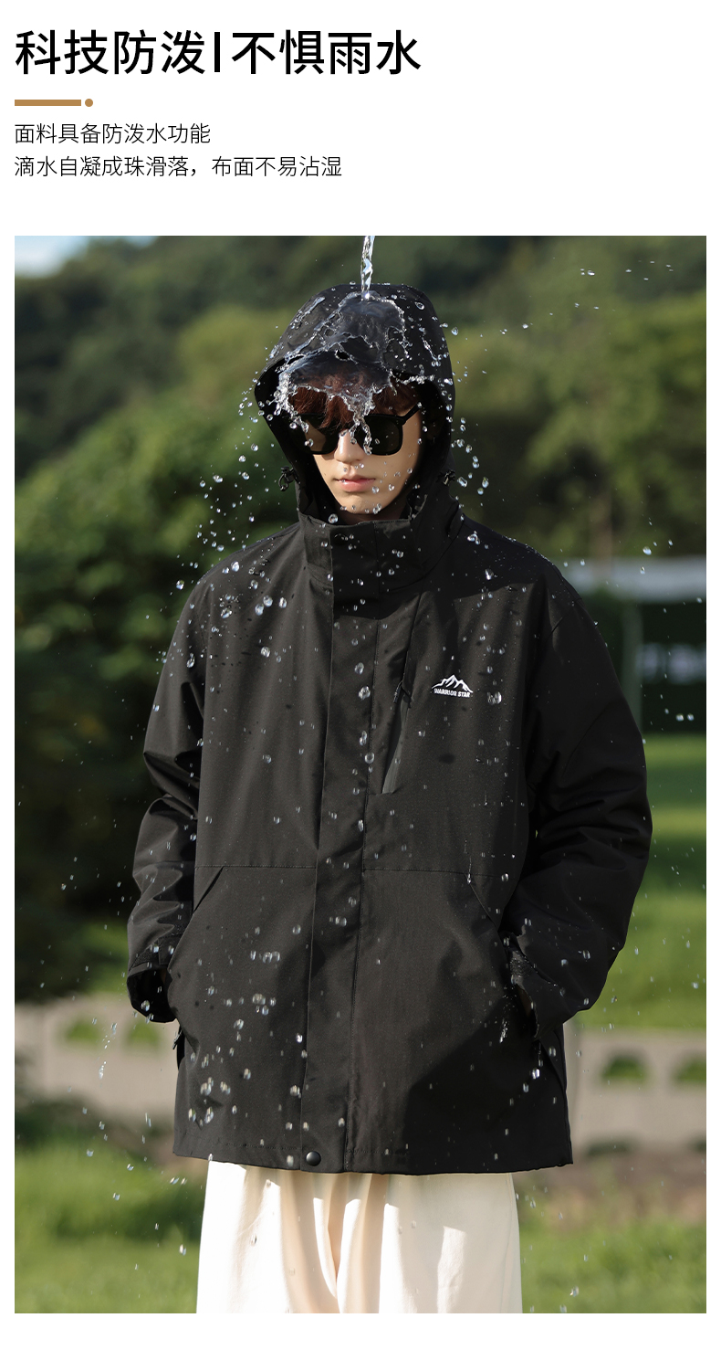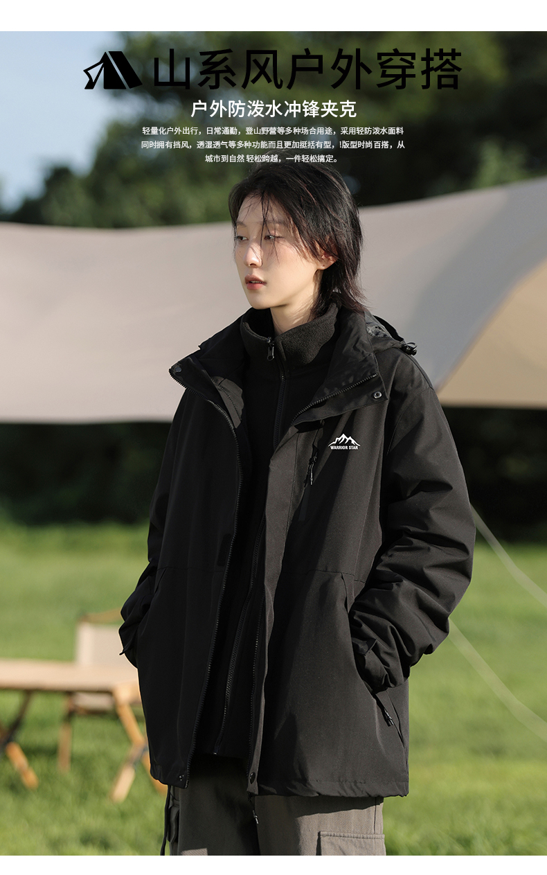 回力冲锋衣男女情侣款秋冬三合一防泼水夹克外套黑户外运动登山服