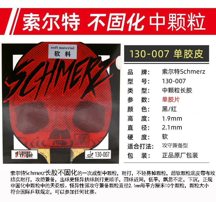 德国Schmerz 索尔特痛苦长胶(软料)单胶片中颗粒乒联注册正规比赛怪异长胶130-007