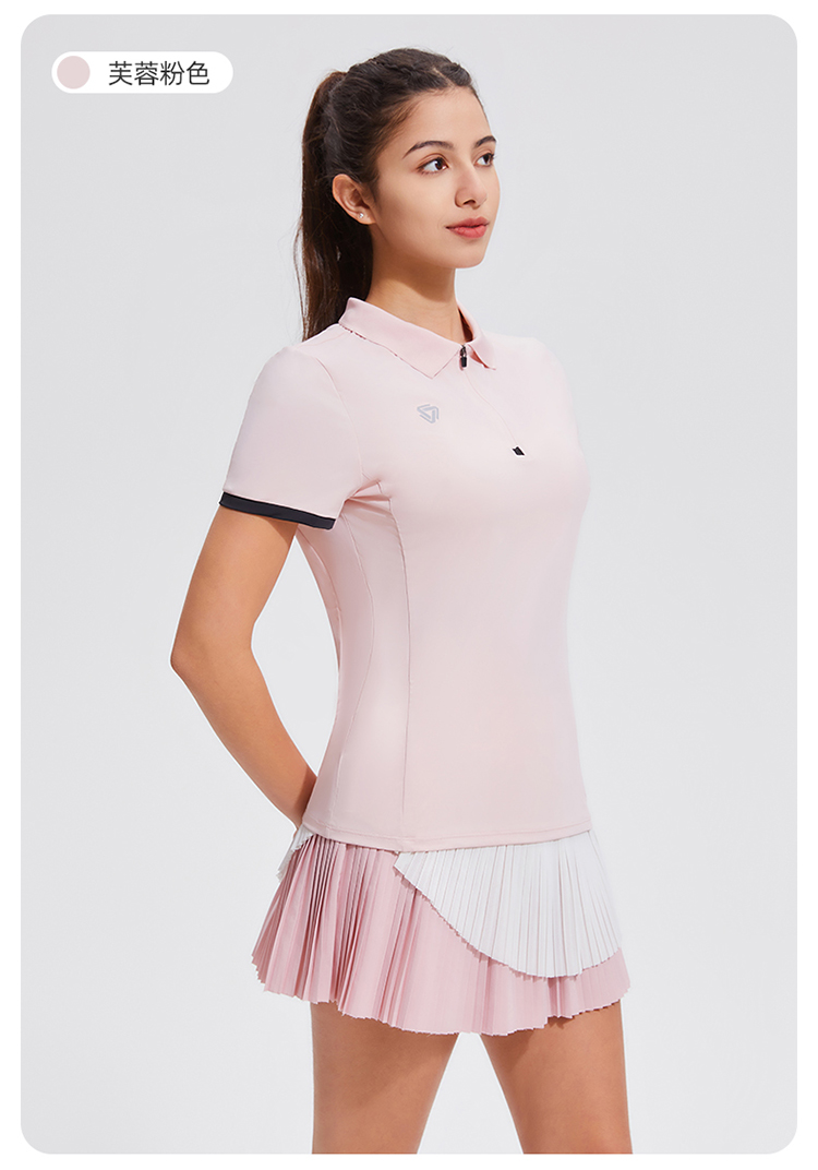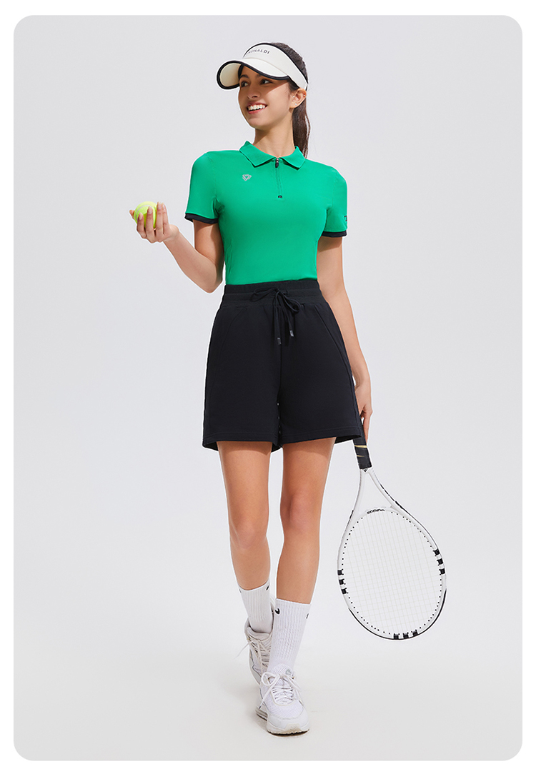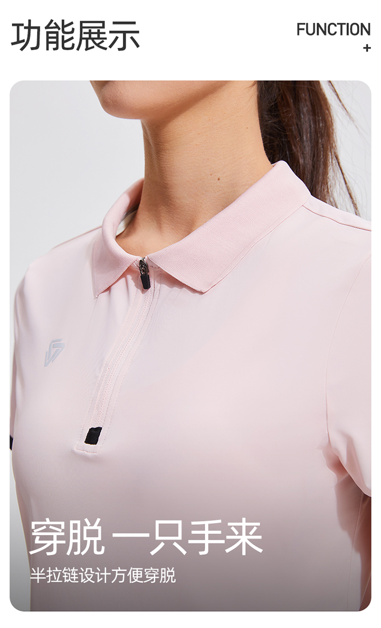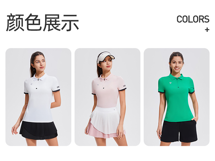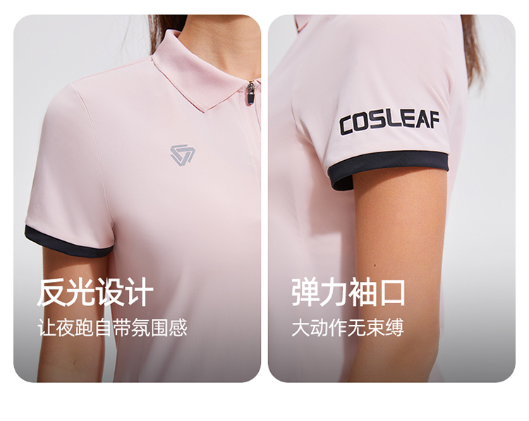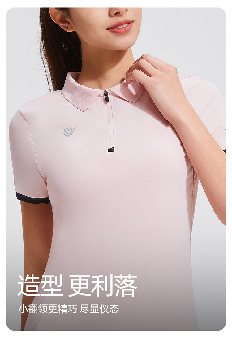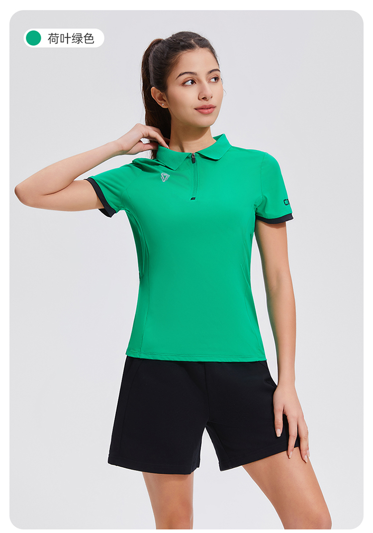 科里芙新款POLO衫半拉链翻领拼色短袖运动上衣户外休闲女款夏季