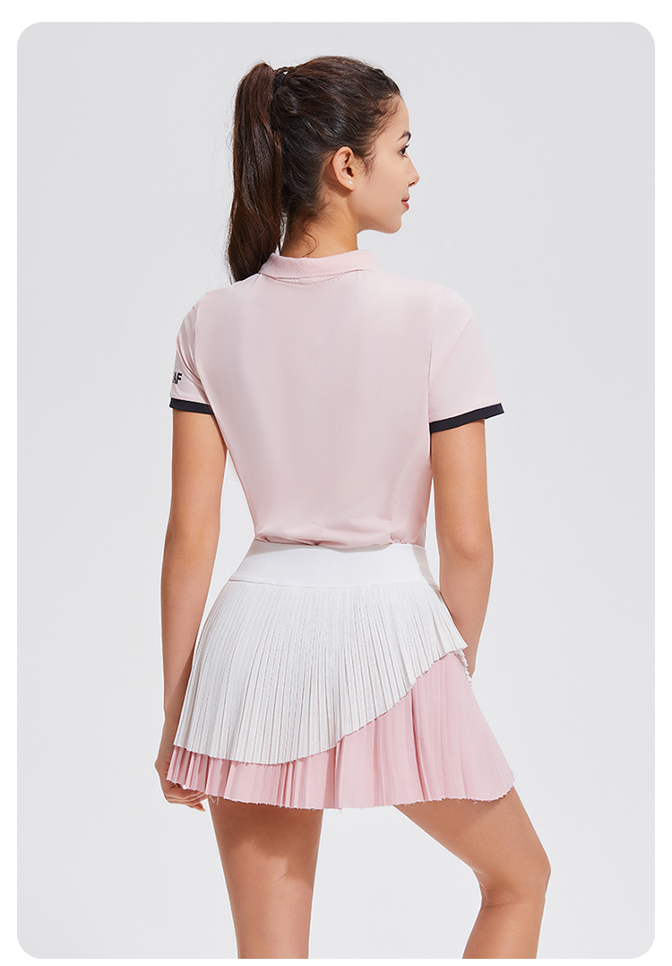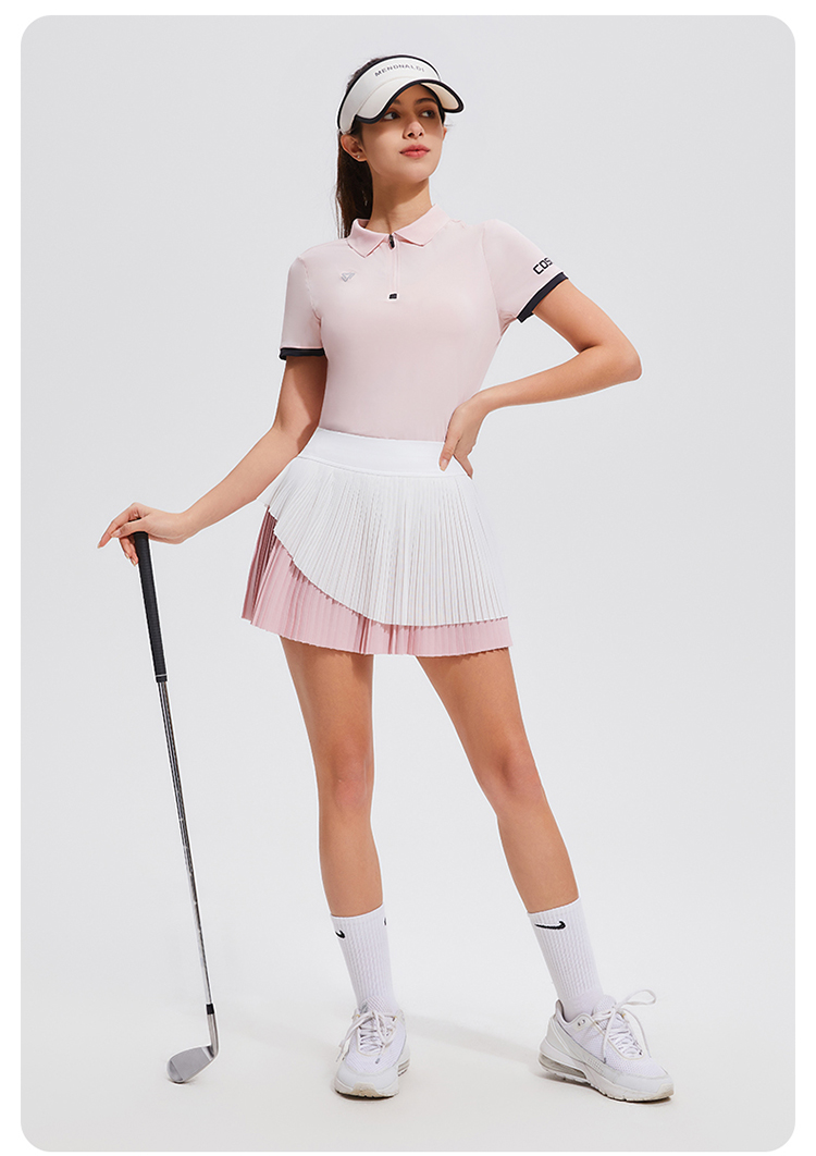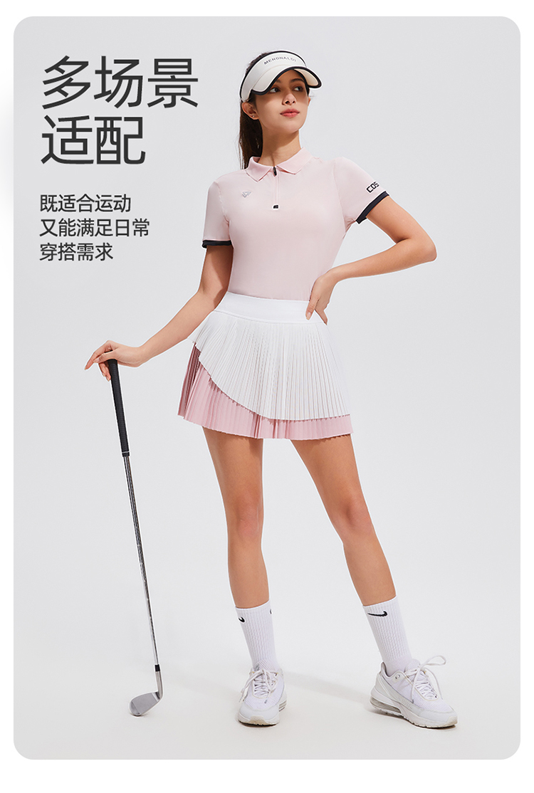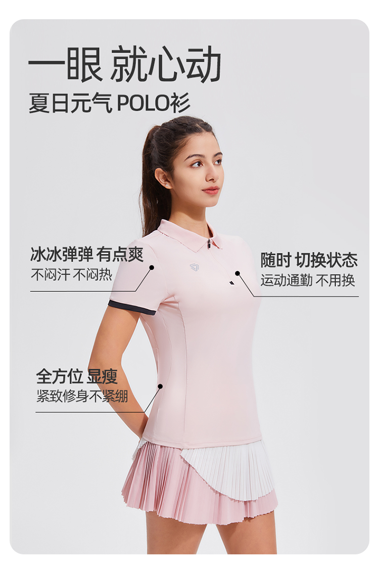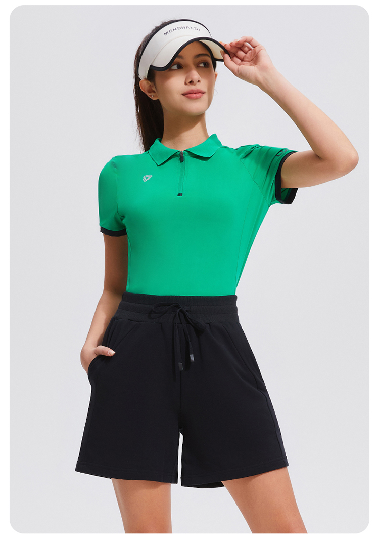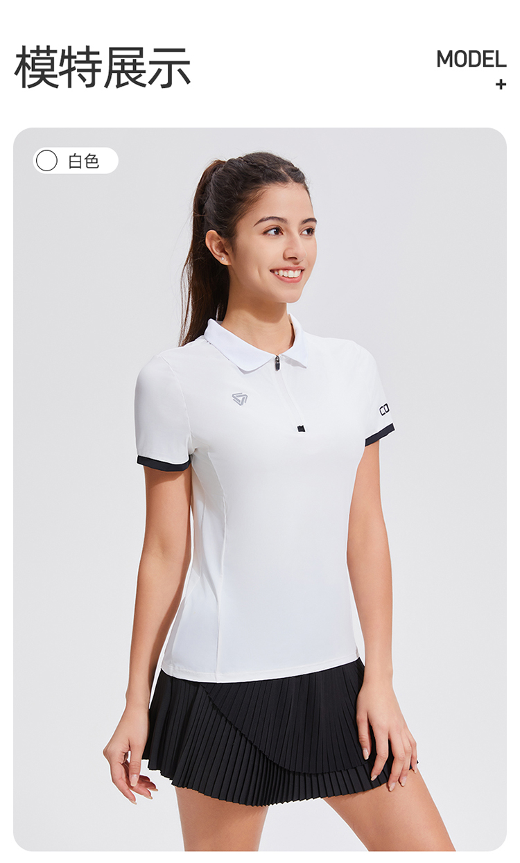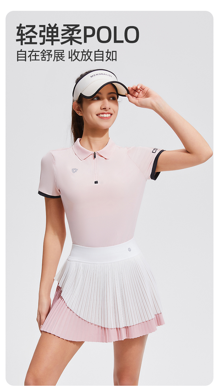 科里芙新款POLO衫半拉链翻领拼色短袖运动上衣户外休闲女款夏季