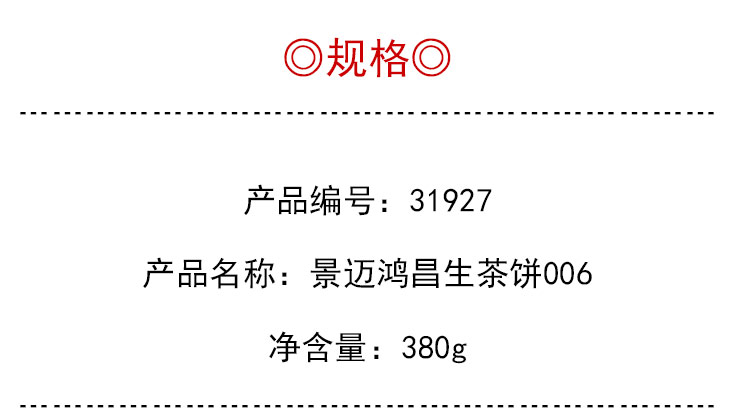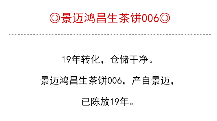 茶香记 景迈鸿昌生茶饼006普洱茶仓储干净甜润细腻高性价比品质老茶