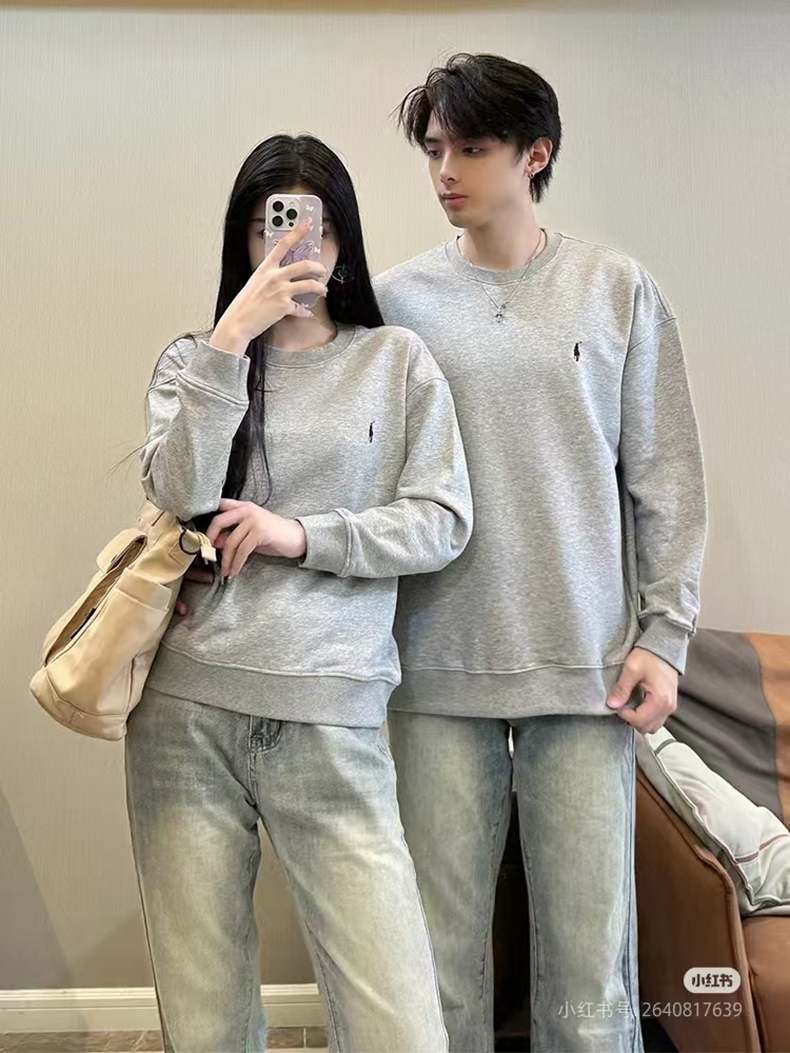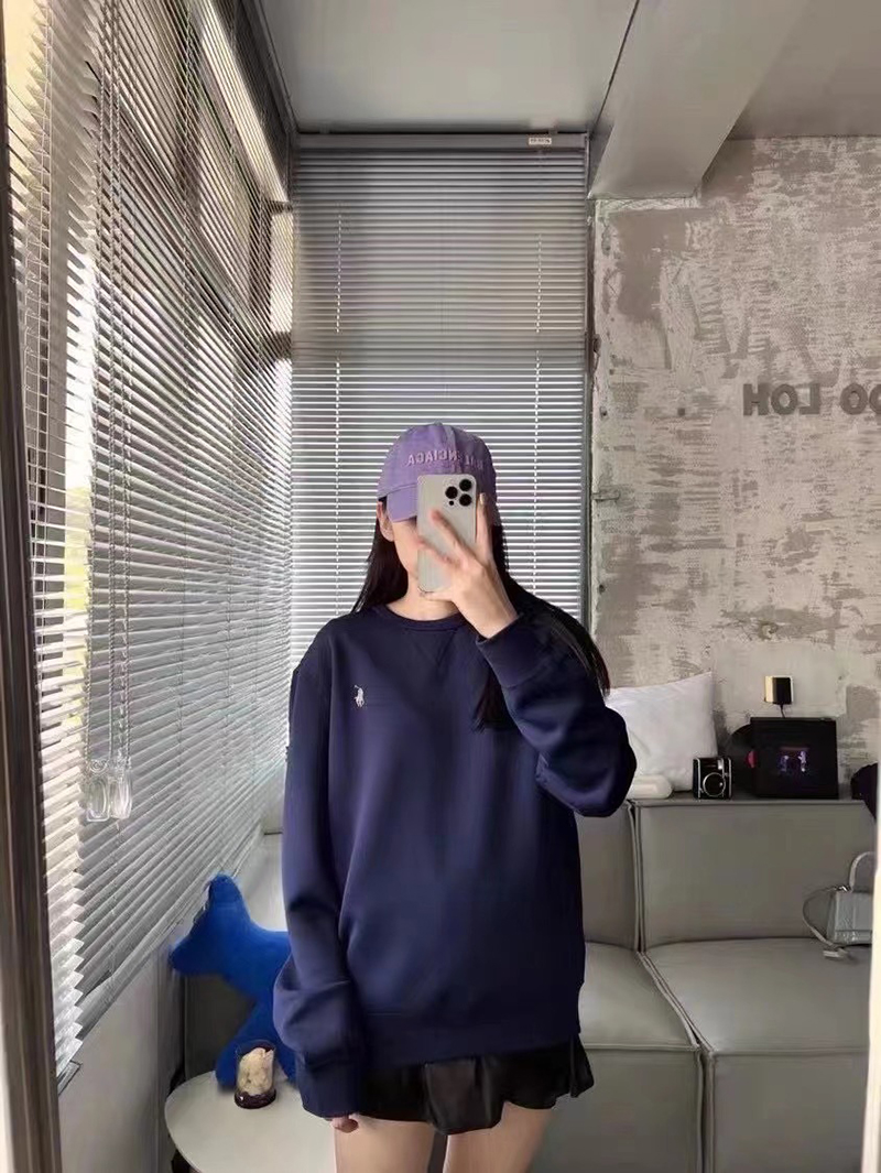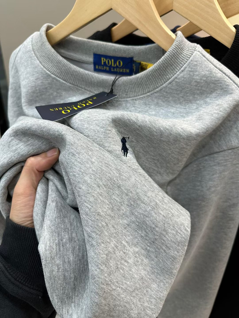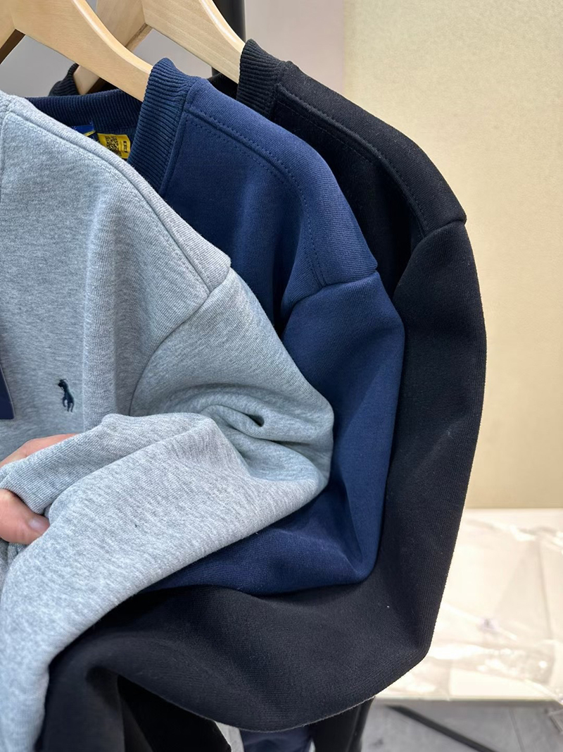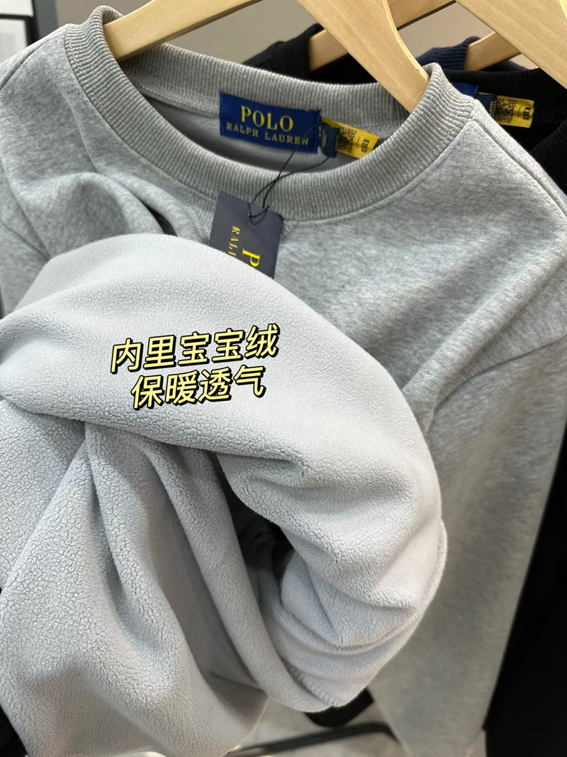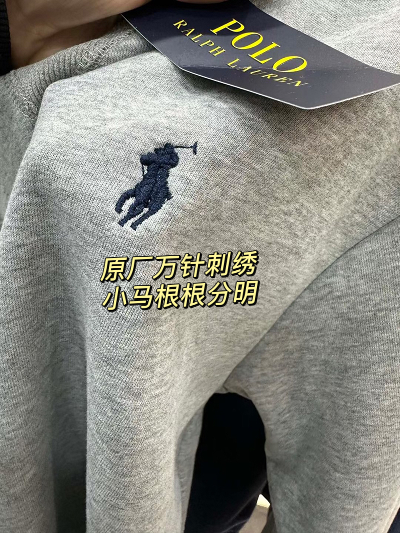 宝宝绒复合棉质卫衣料子,胸前RL经典刺绣马logo