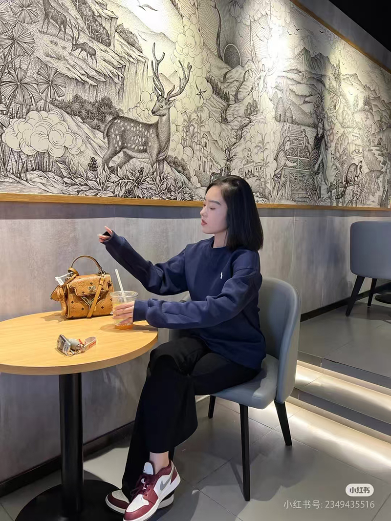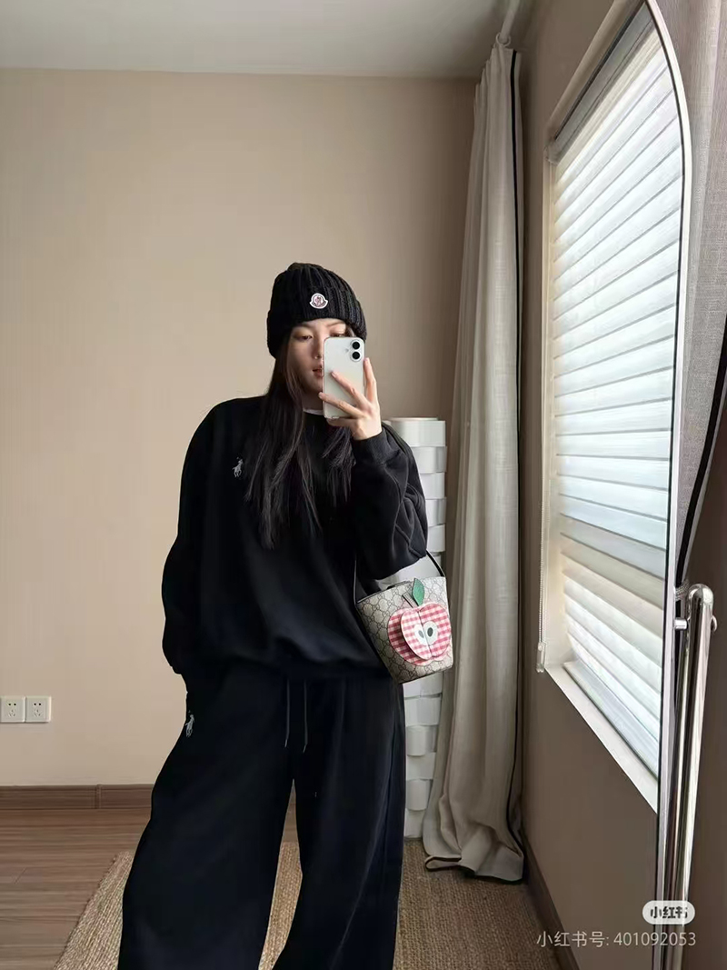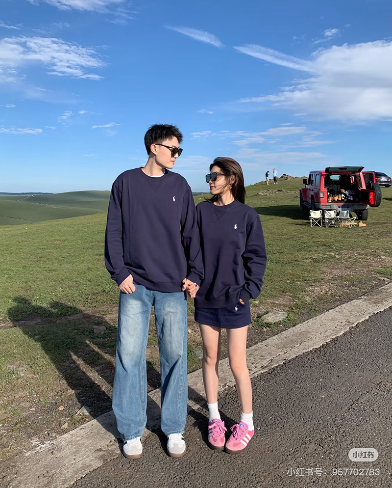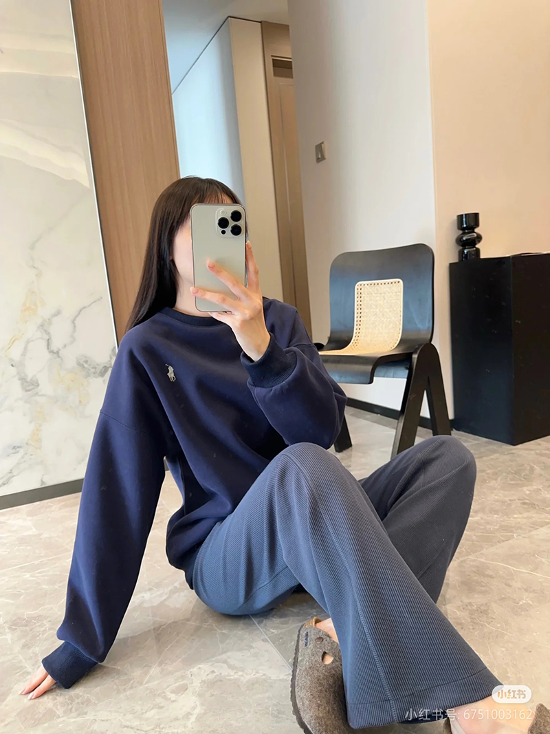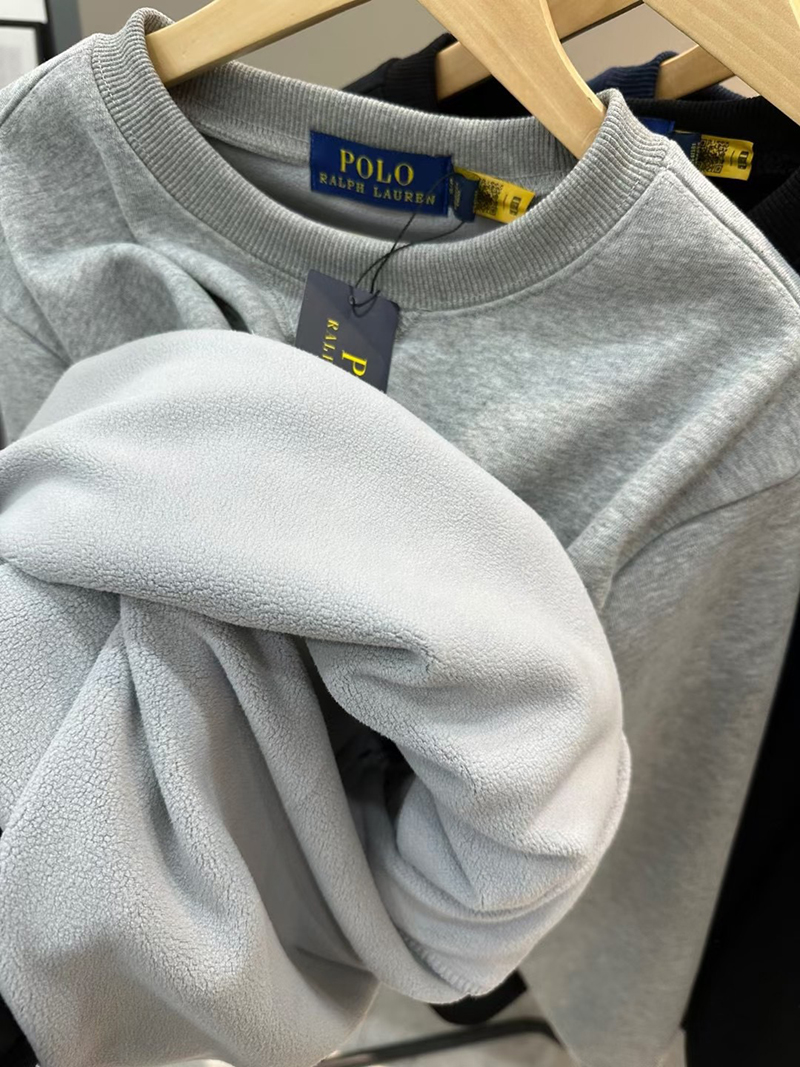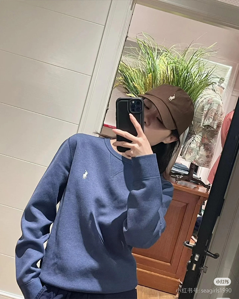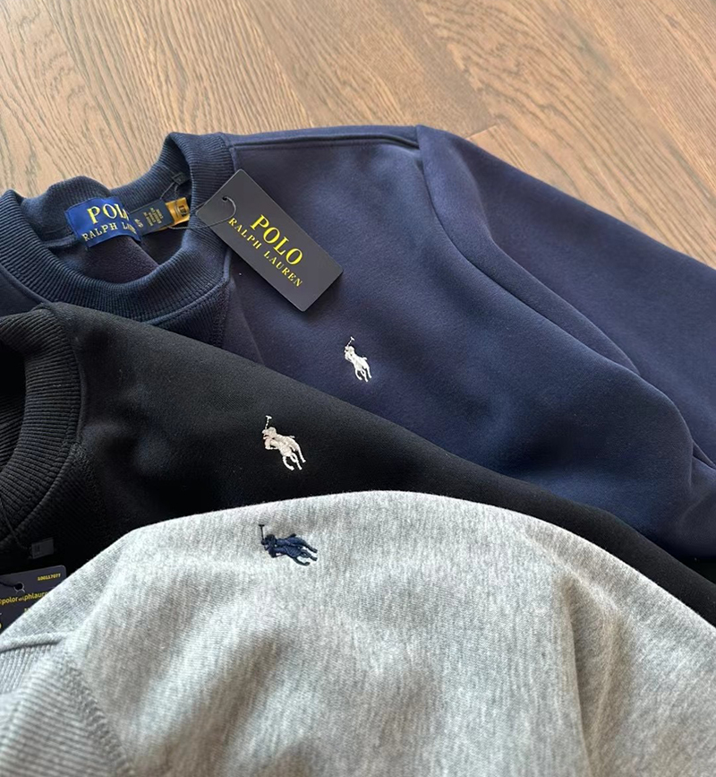 宝宝绒复合棉质卫衣料子,胸前RL经典刺绣马logo