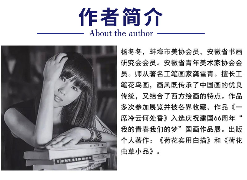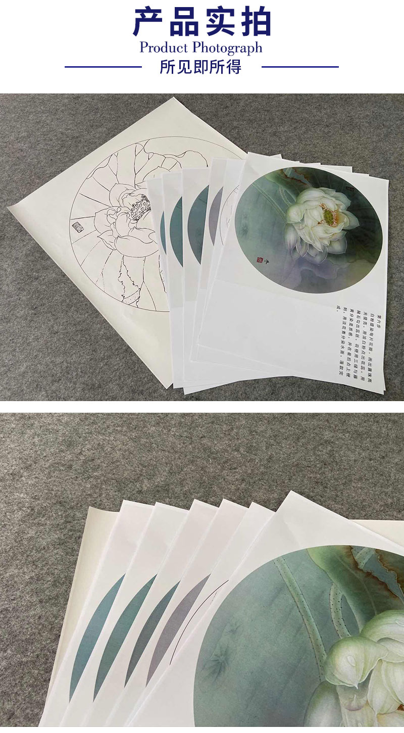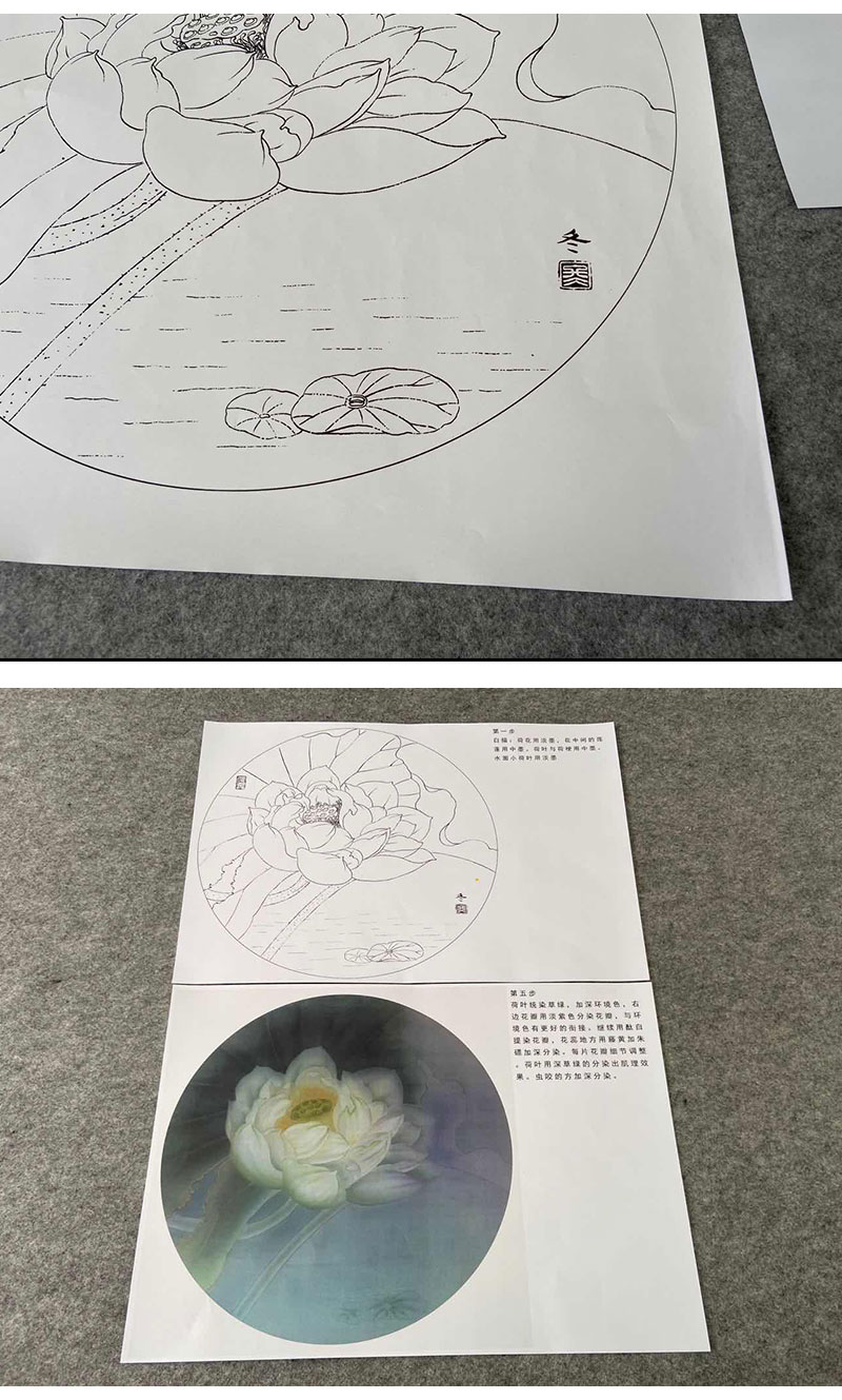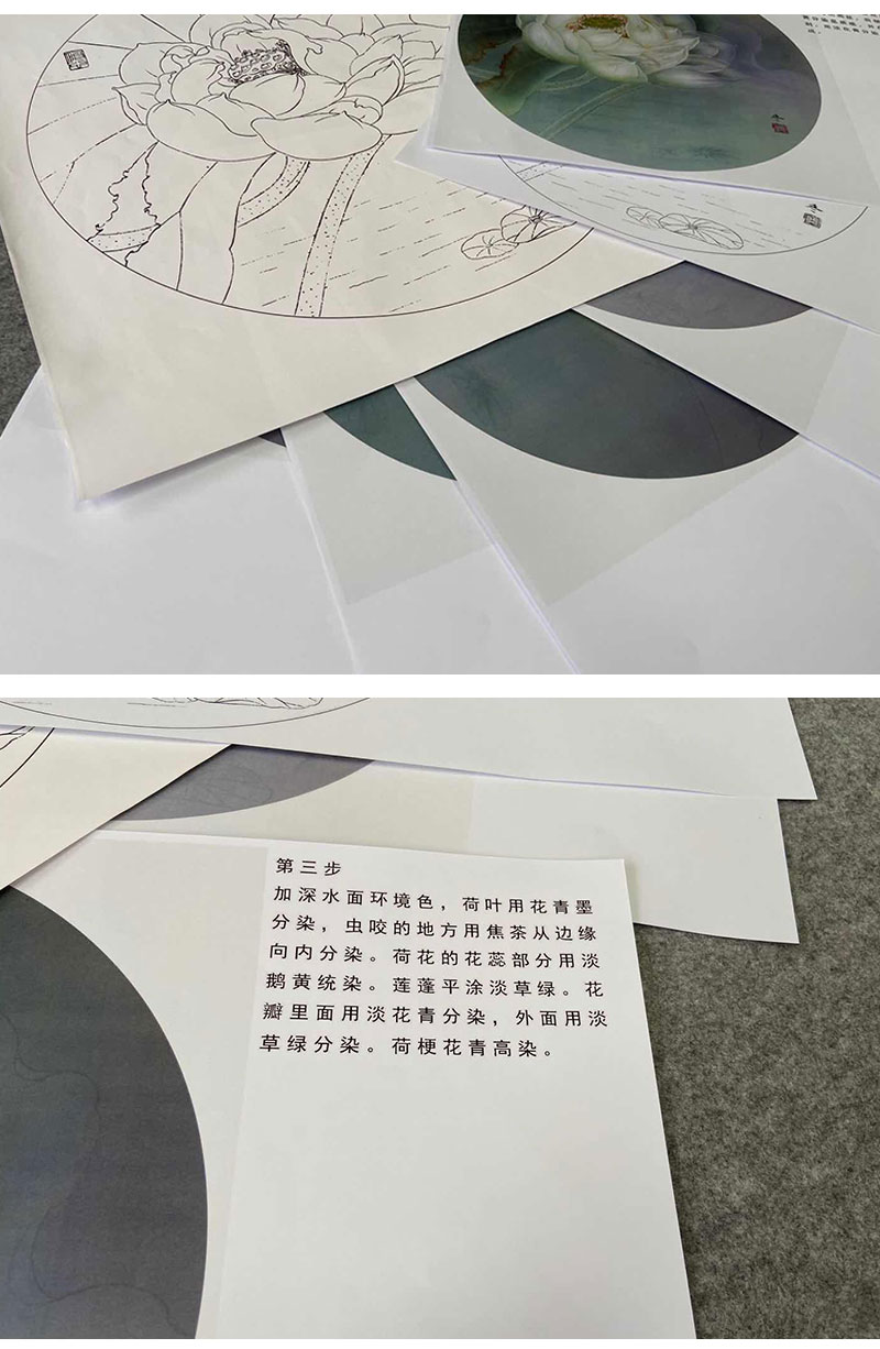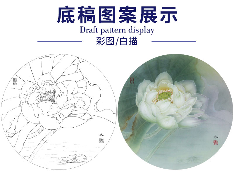 【有步骤、大彩图】杨冬冬工笔画白描底稿圆形小品《娇影》荷花初学者临摹花鸟线稿HD37