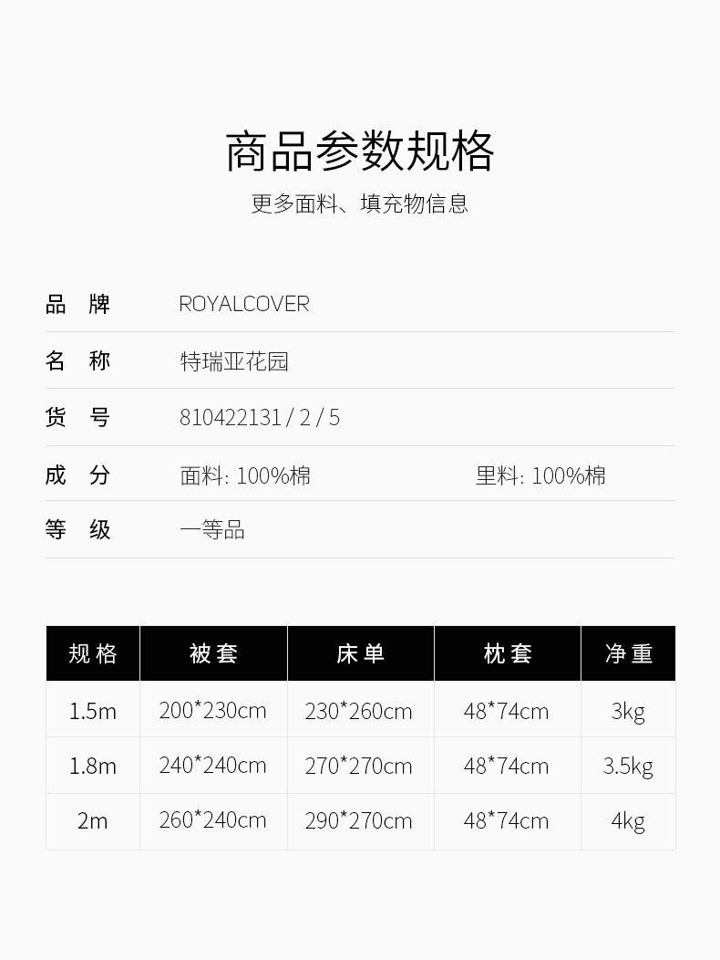 【ROYALCOVER】罗卡芙 长绒棉全棉四件套 特瑞亚花园