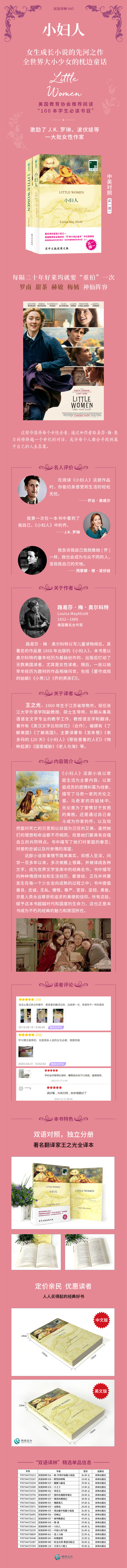 这部小说故事情节简单真实,却感人至深,问世一百多年以来,多次被搬上银幕,并被译成各种文字,成为世界文学宝库中的经典名作。书中描写的种种情感体验和生活经历,都曾经、正在并将要发生在每一个少女走向成熟的过程之中;书中提倡善良、忠诚、无私、慷慨、尊严、宽容、坚韧、勇敢、亦是人类永远尊崇和追求的美德和信仰。所有这些,赋予这本书超越时代和国度的生命力,这也正是她成为不朽的经典的魅力和原因所在。