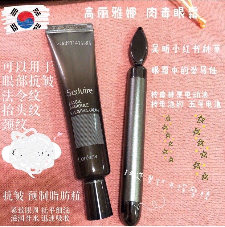高丽雅娜Seduire魔法安瓶精华眼霜30ml➕送袪皺按摩棒🔺眼角小熨斗💯使用时稍微按摩一下眼周肌肤会有温热的感觉,就像带上了蒸汽眼罩做眼部spa一样[机智]眼睛更有神啦!熬夜党的福音,消除眼部细纹,用了一段时间眼周的泪沟、熊猫眼都有改善❤️双眼提亮电力十足!🔥按摩棒一分钟能震动6000次,促进血液循环的同时,☀️也能加速眼霜吸收,感觉错过她就要错过1个亿。