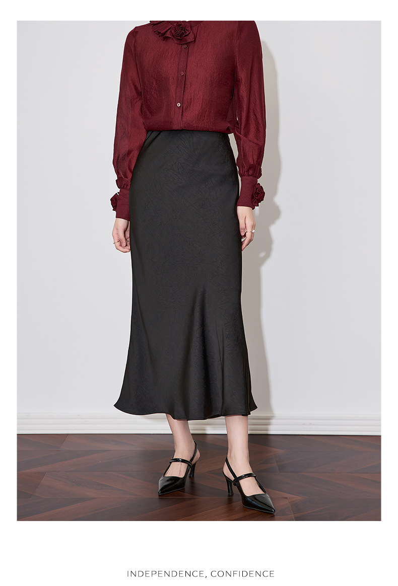 「高货wl」全新升级【铂金会员247/天猫329/差价82】(12806)洛诗琳压花肌理醋酸缎高级感时尚气质新中式半身裙
