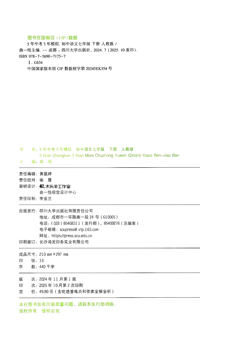 26新版 五年中考三年模拟 7-9年级下册 语数英科社 六折优惠