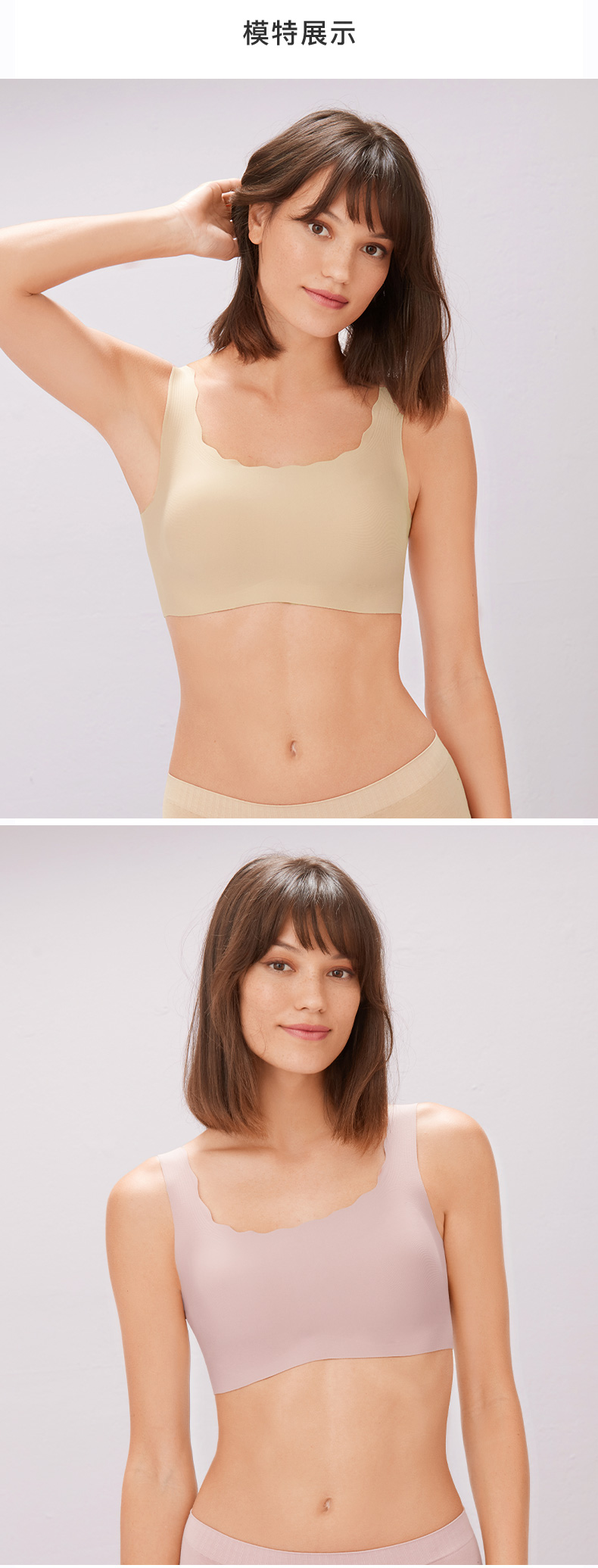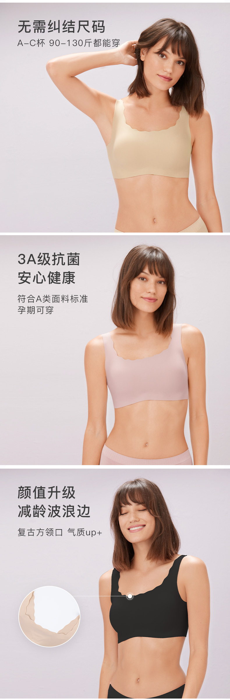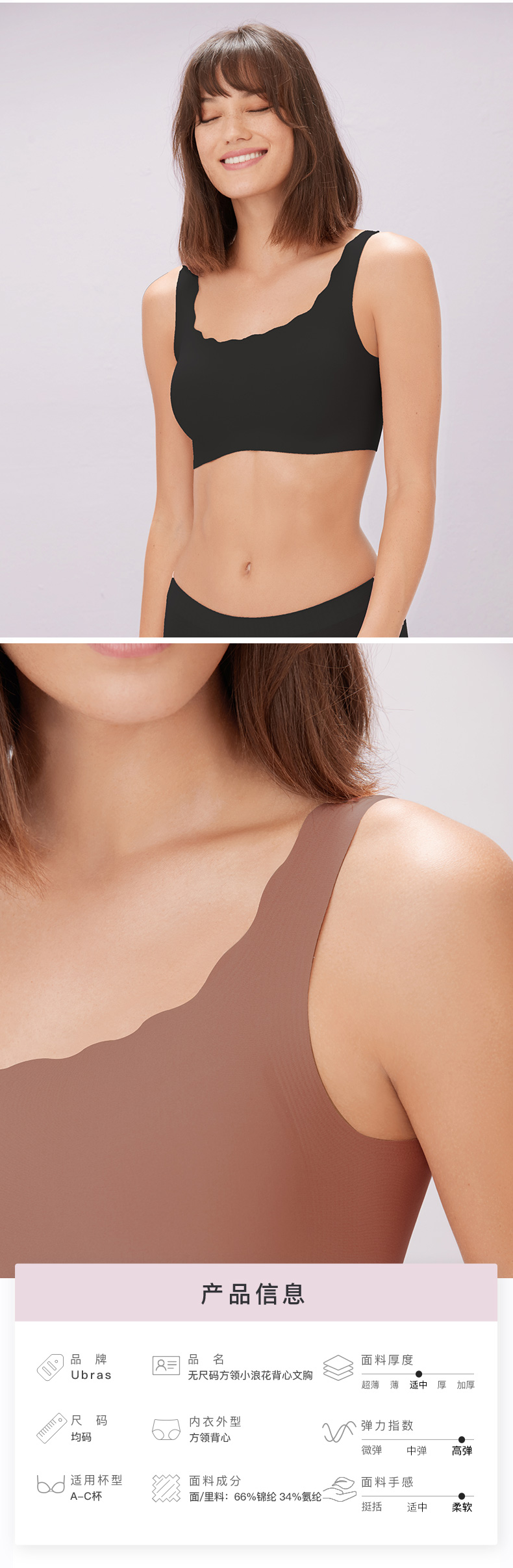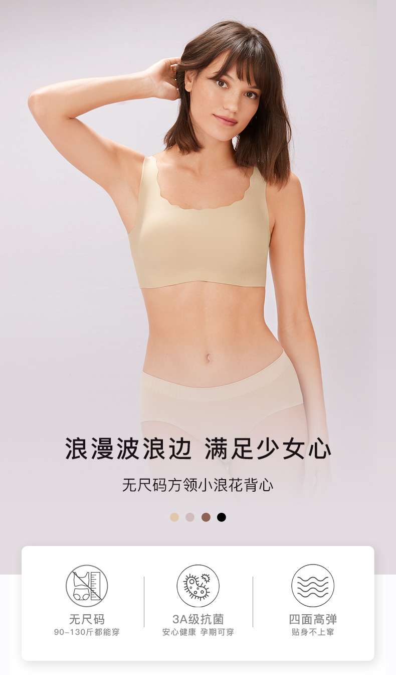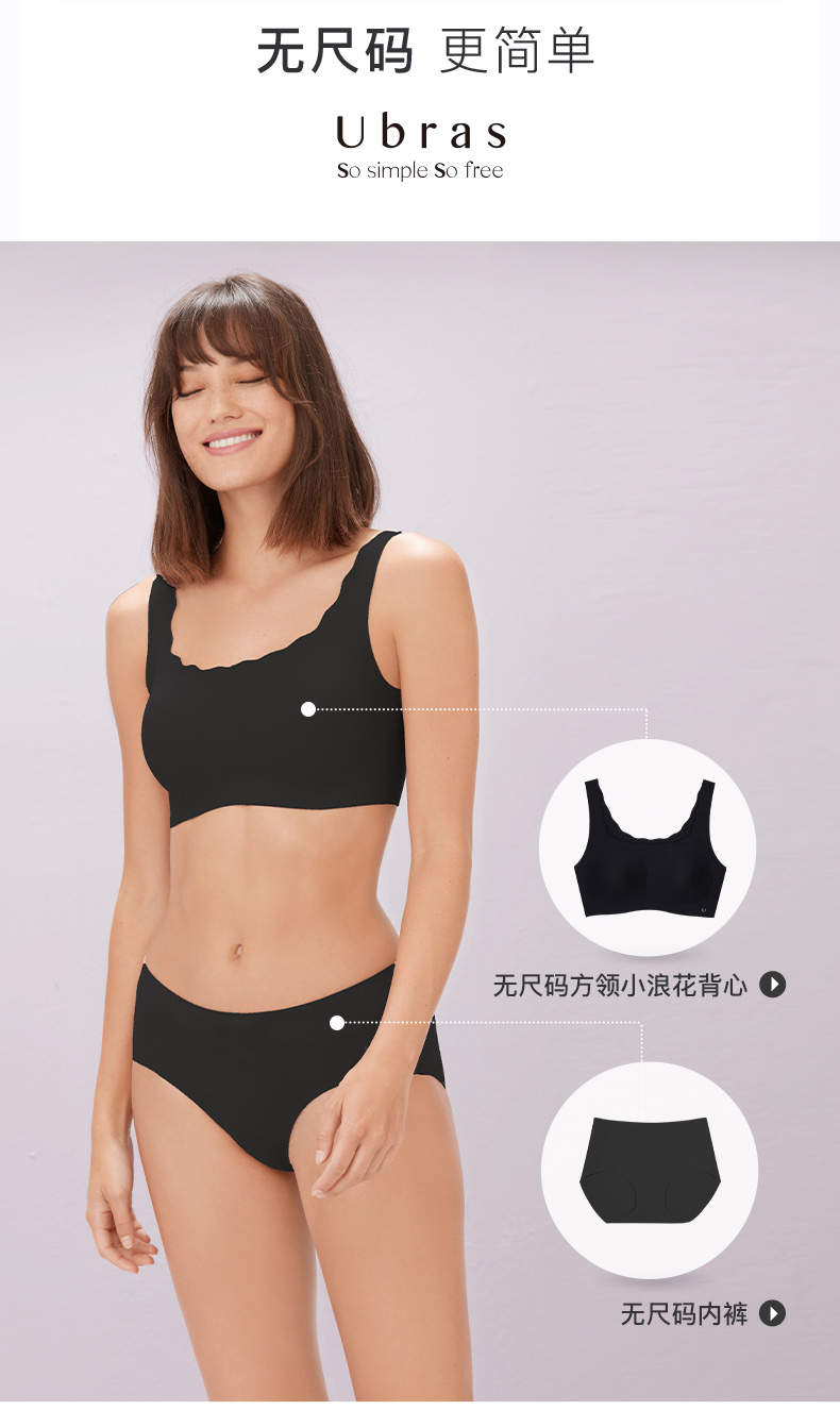 Ubras无尺码方领小浪花背心文胸内衣女无钢圈无痕透气美背文胸