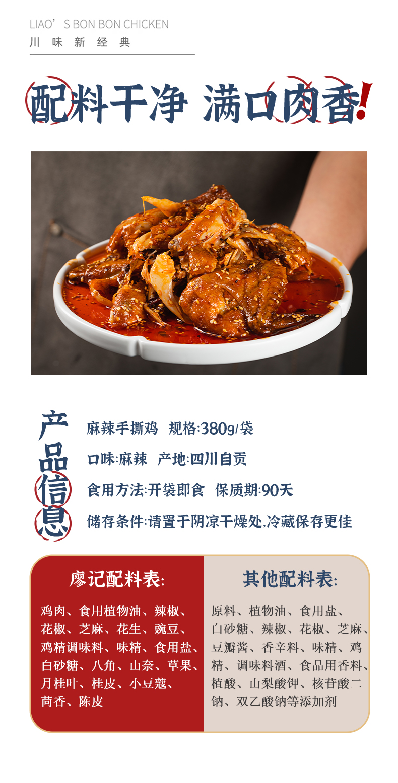 【年货推荐】廖记棒棒鸡麻辣手撕鸡380g整只四川特产鸡肉零食即食