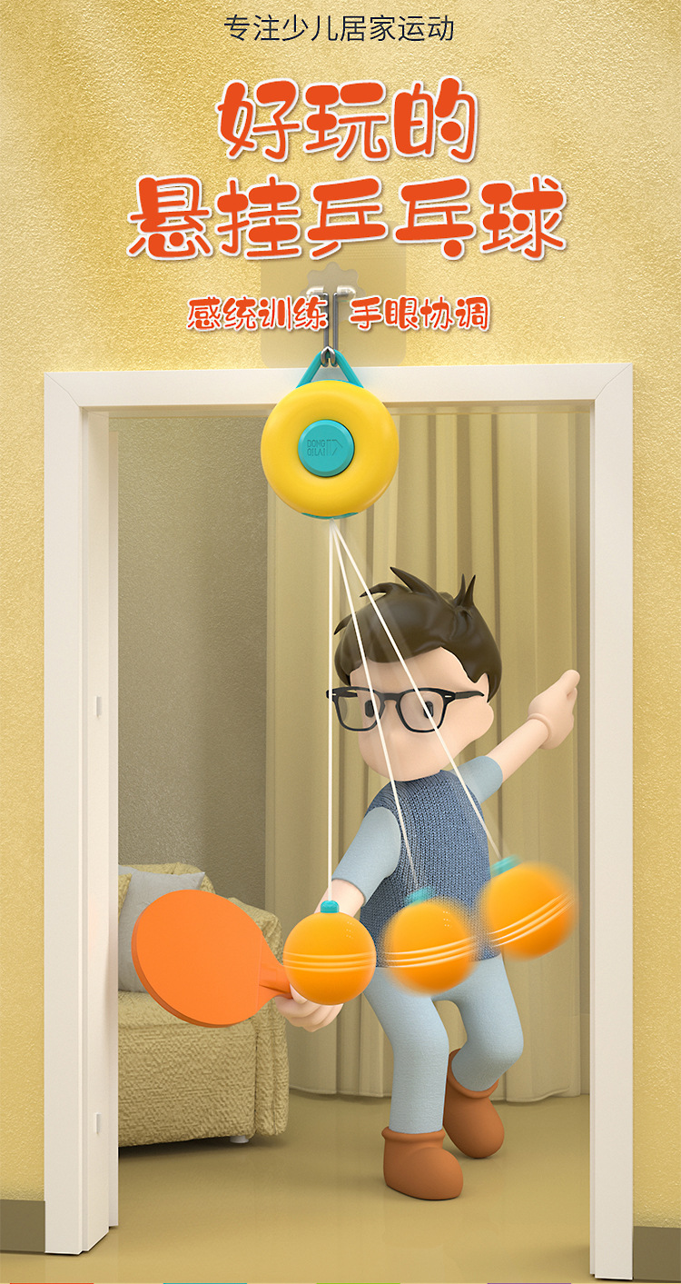 👪全家都能玩!儿童悬挂式乒乓球训练器 [放下手机 让眼睛做运动] 室内门框亲子互动 感统训练玩具