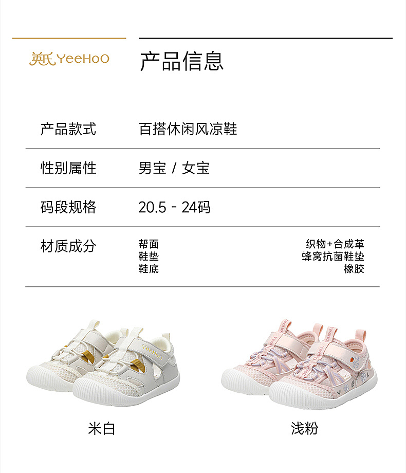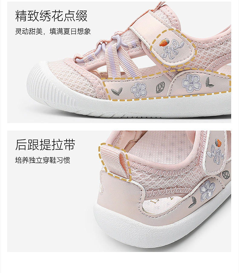 英氏儿童鞋子女童学步鞋夏季网眼透气包头凉鞋户外百搭26新款