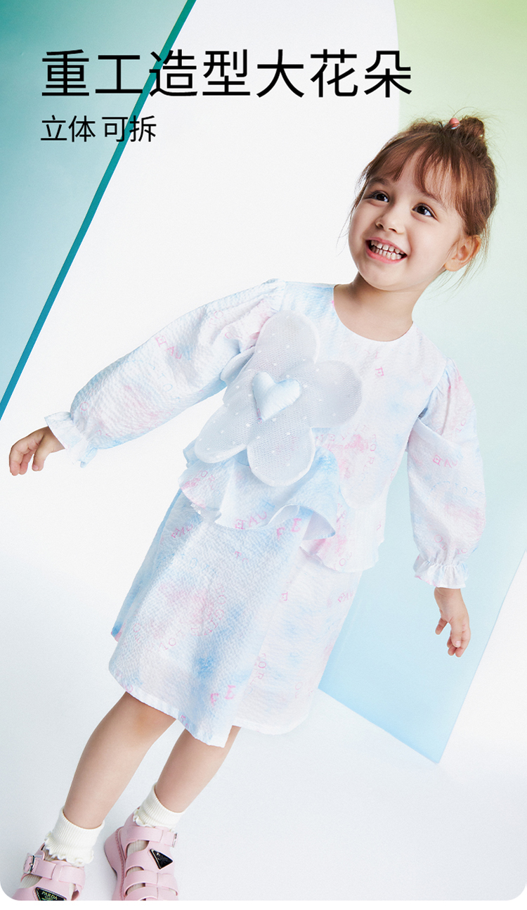 女童连衣裙秋新款宝宝洋气可爱甜美长袖纯棉公主裙安奈儿童装TG313074
