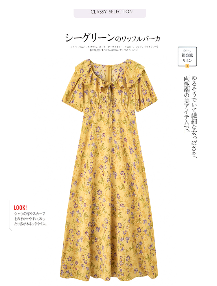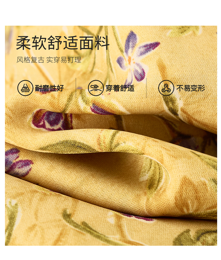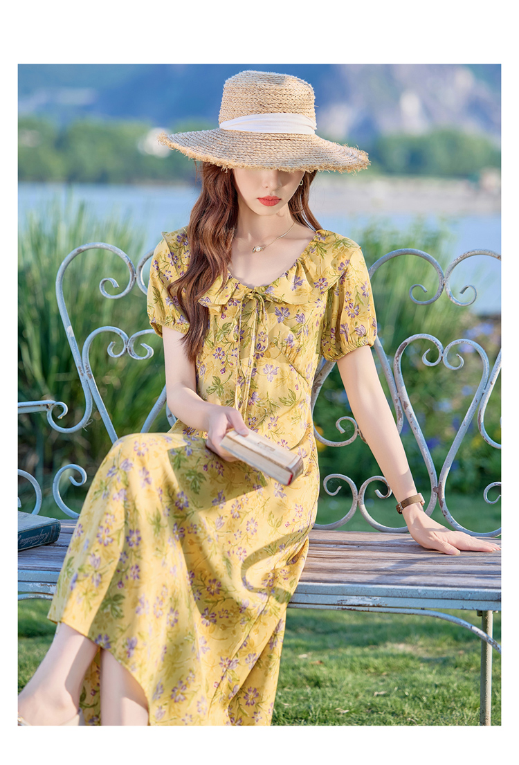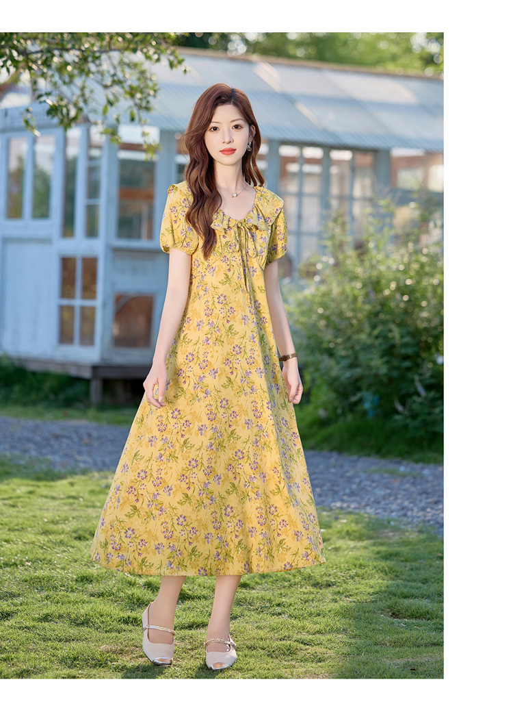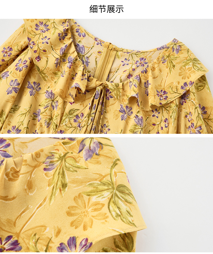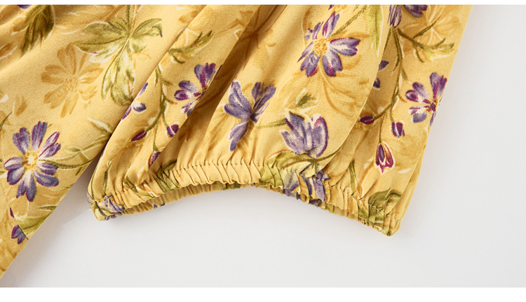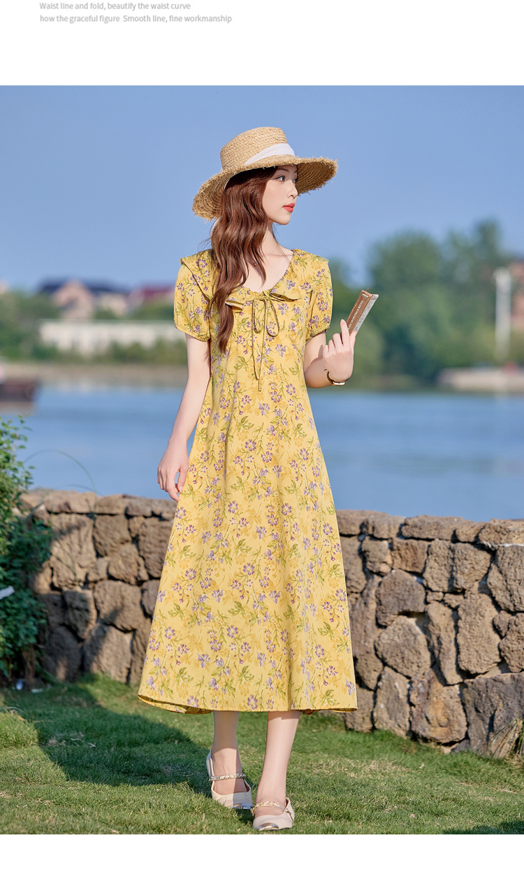 V领中长款碎花连衣裙,收腰显瘦修身过膝中长裙HR-HBLJRA1177