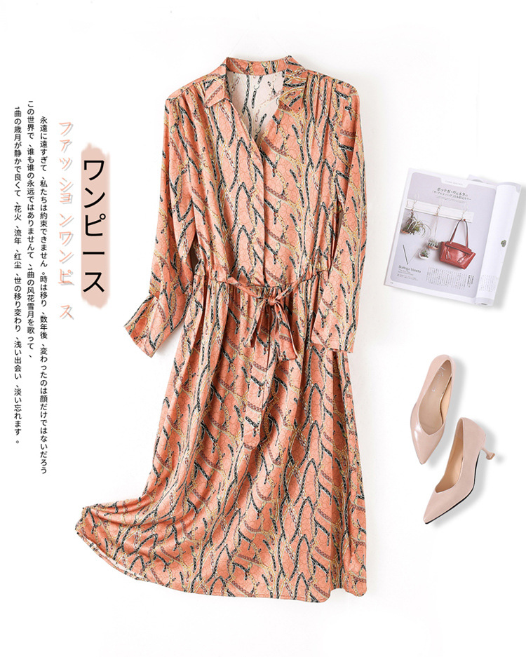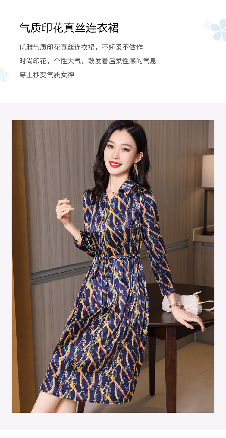 丁摩 重磅真丝连衣裙春夏新款桑蚕丝裙子中长款大牌5ZF-2353