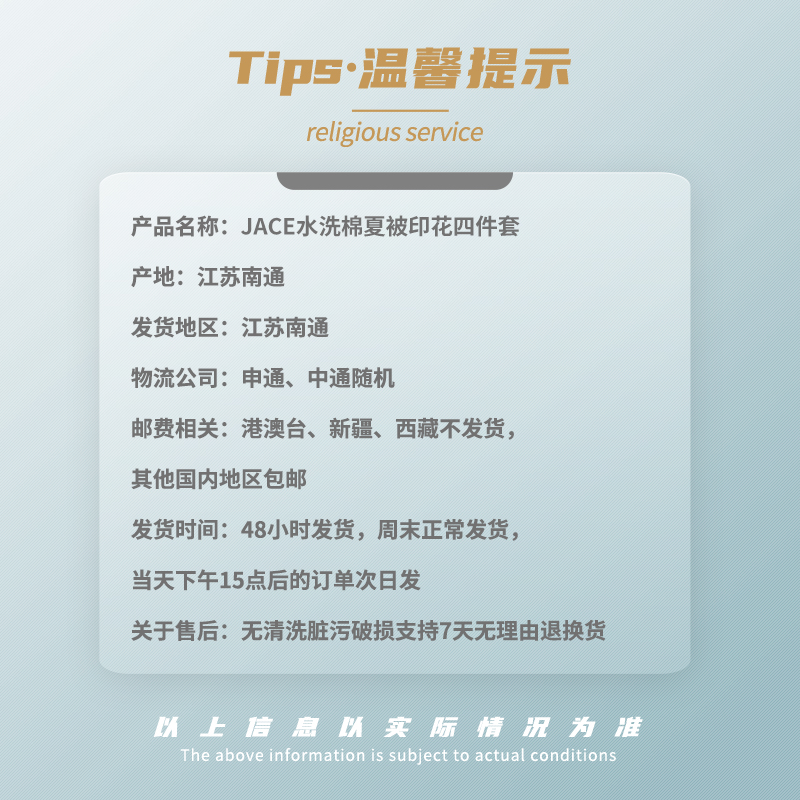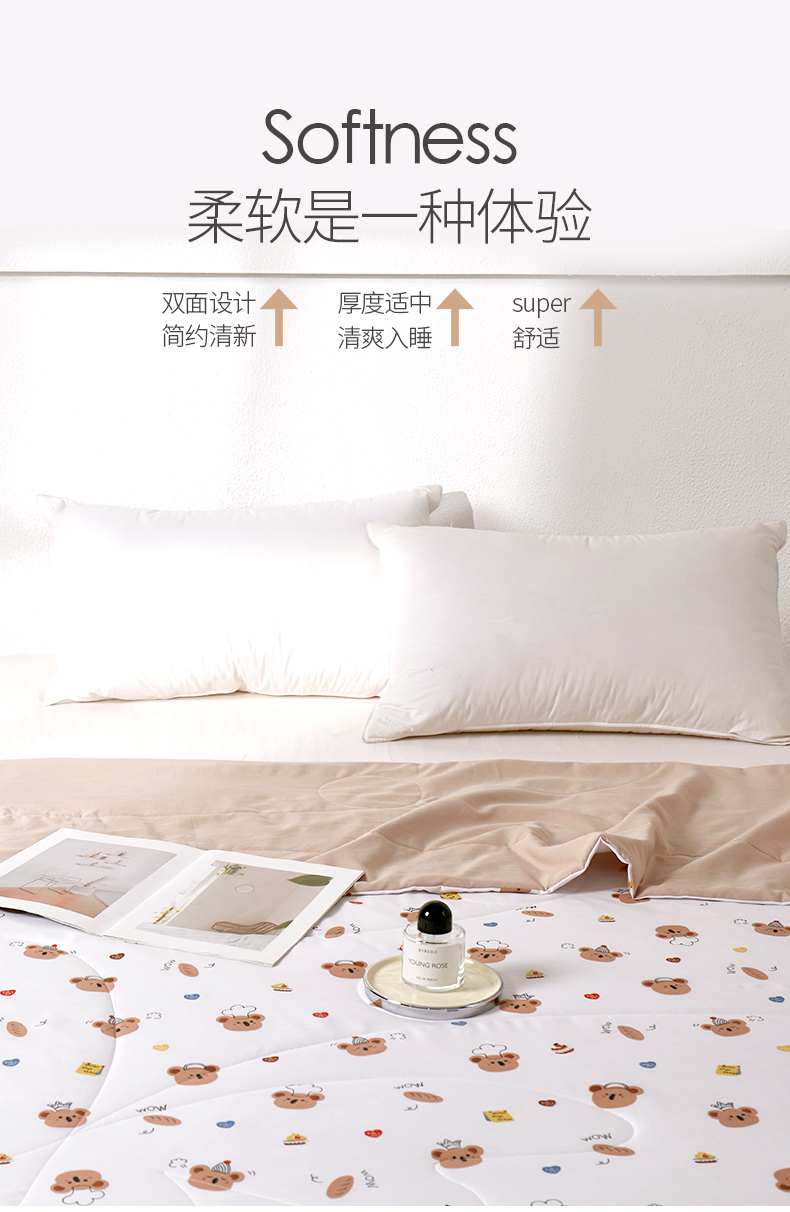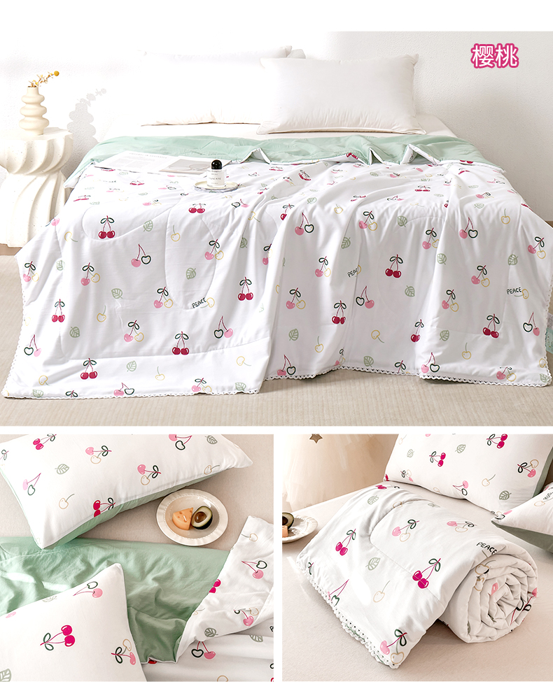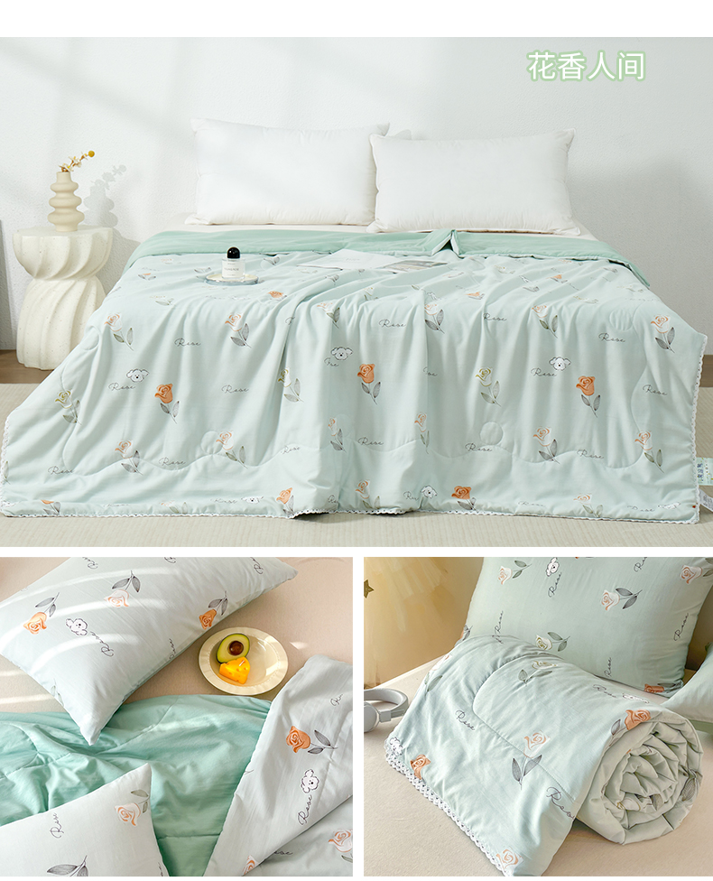 JACE久适水洗棉夏被印花四件套 夏凉被学生宿舍单人空调被 清新印花夏日舒睡薄被