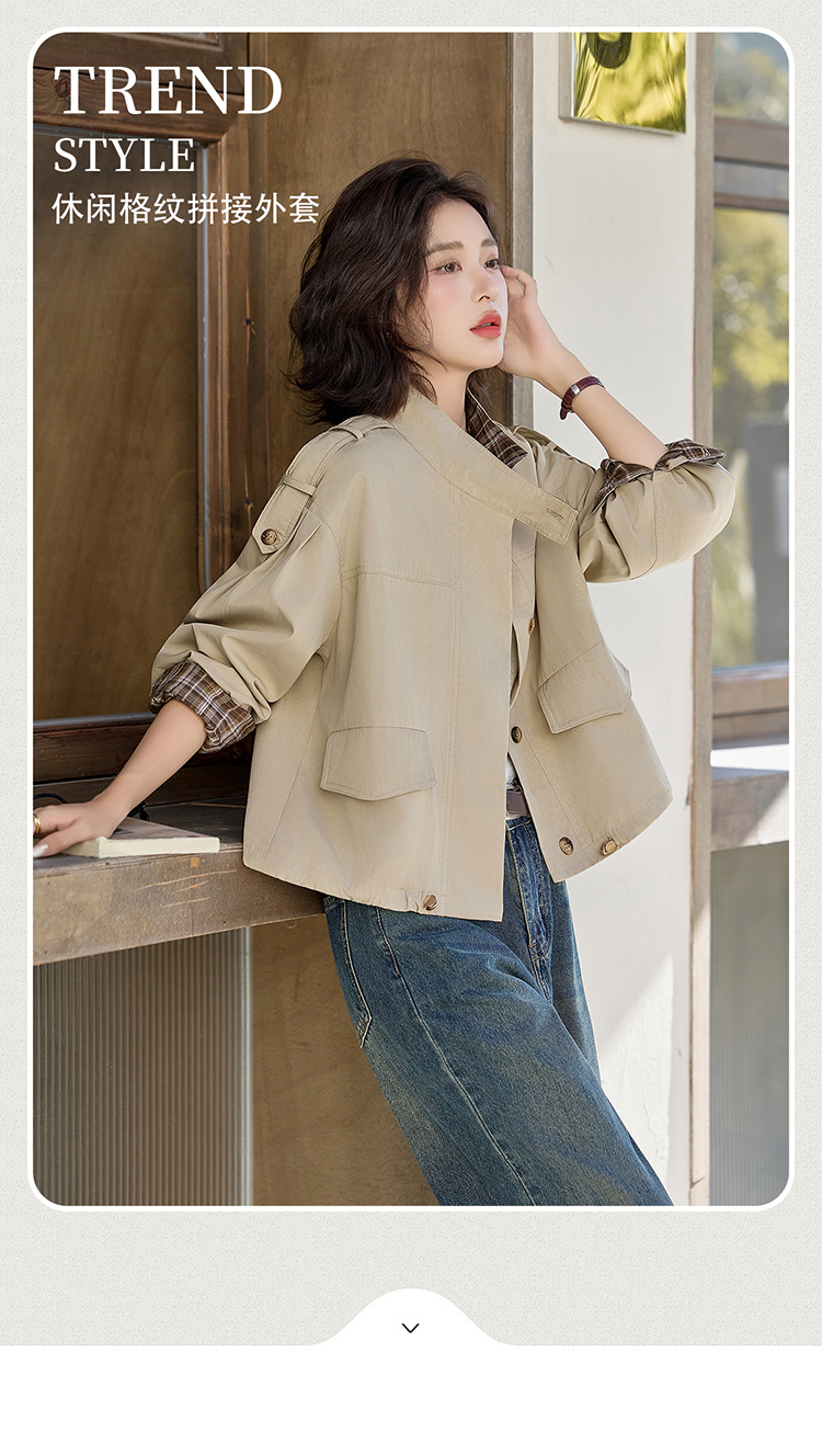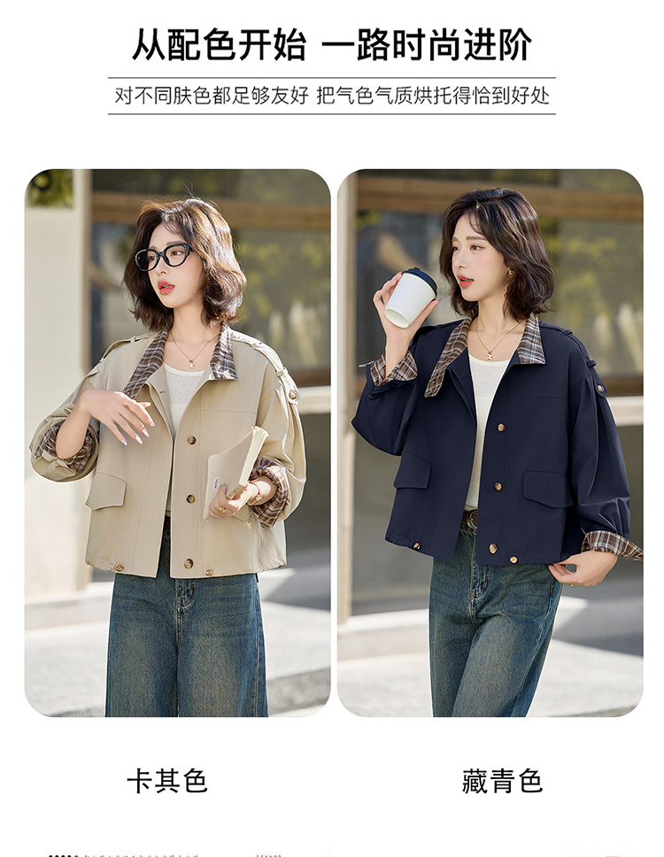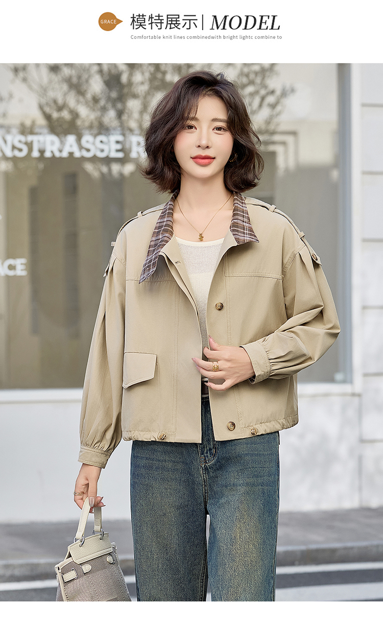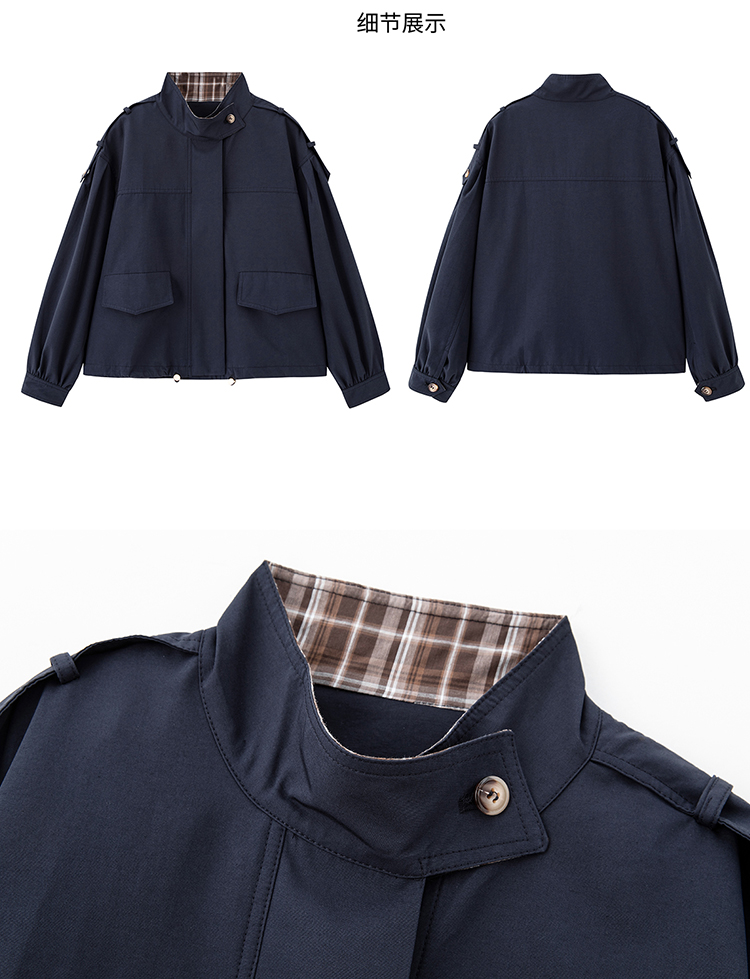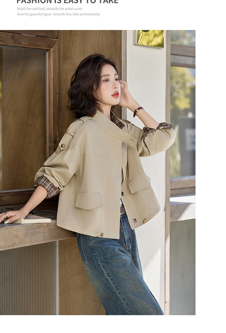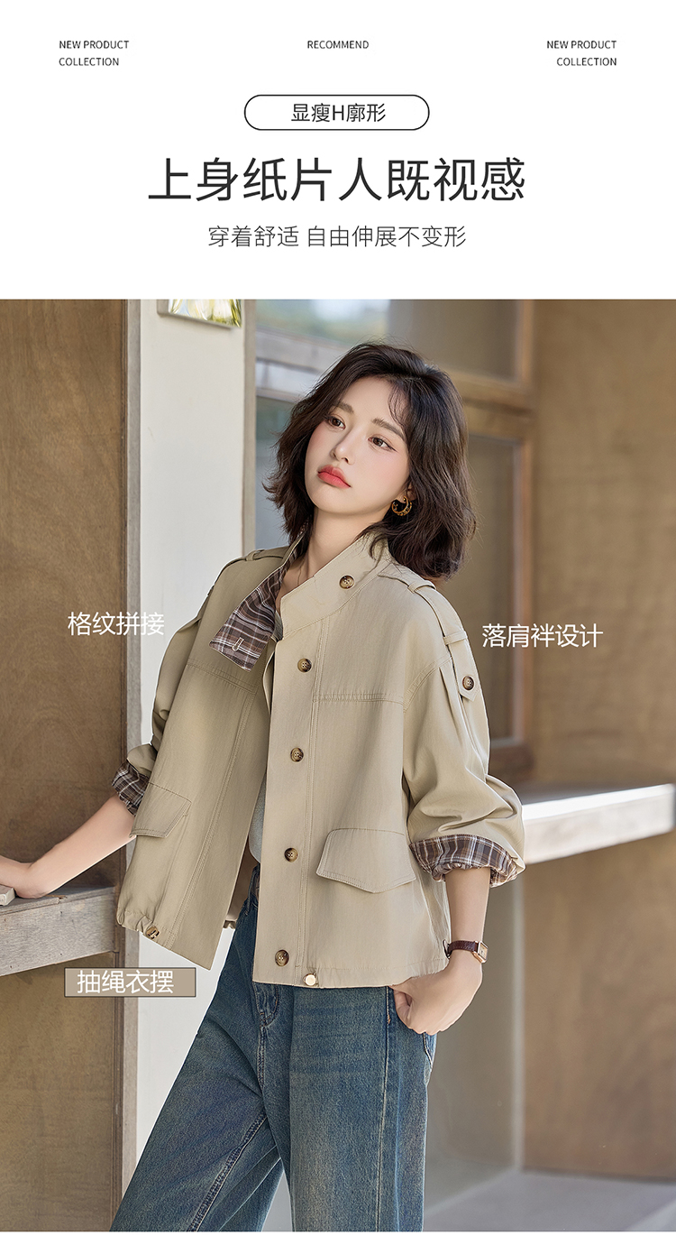 休闲初秋风衣外套,翻领抽绳小个子短款夹克上衣潮HR-WJ5861