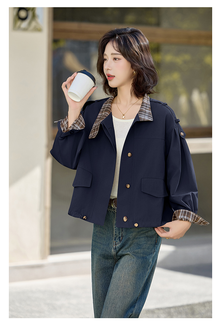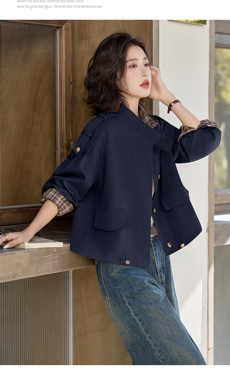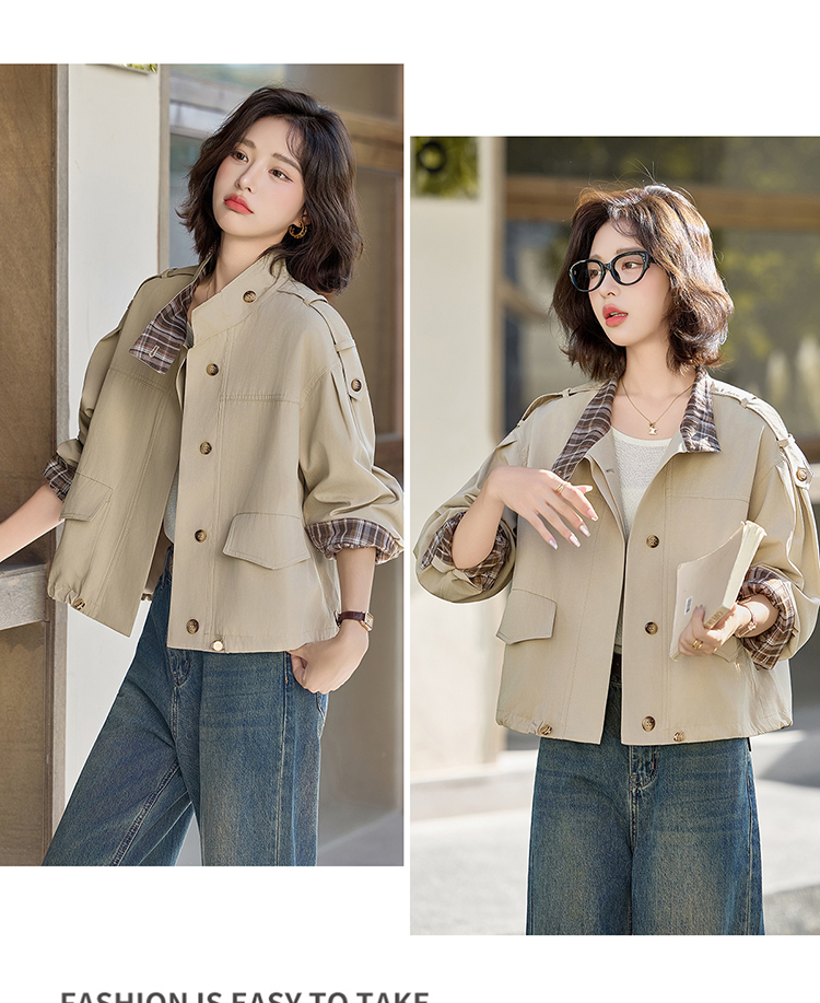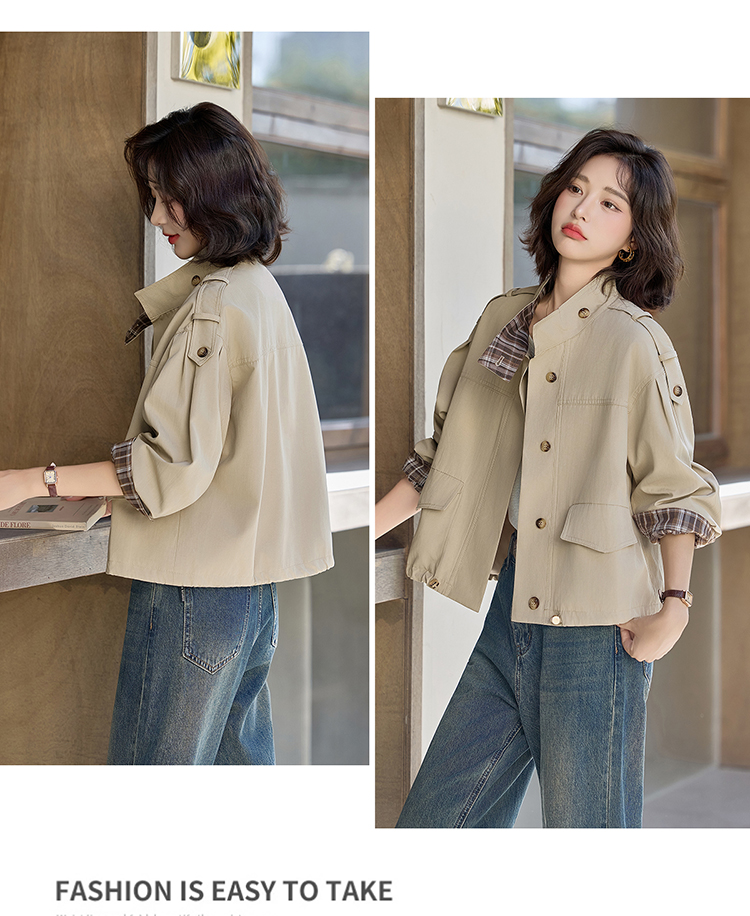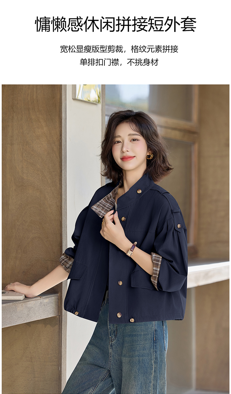 休闲初秋风衣外套,翻领抽绳小个子短款夹克上衣潮HR-WJ5861