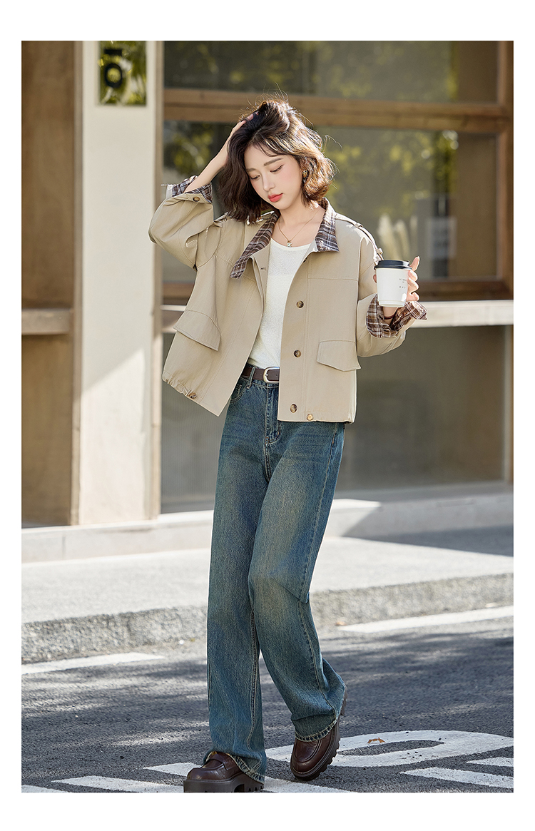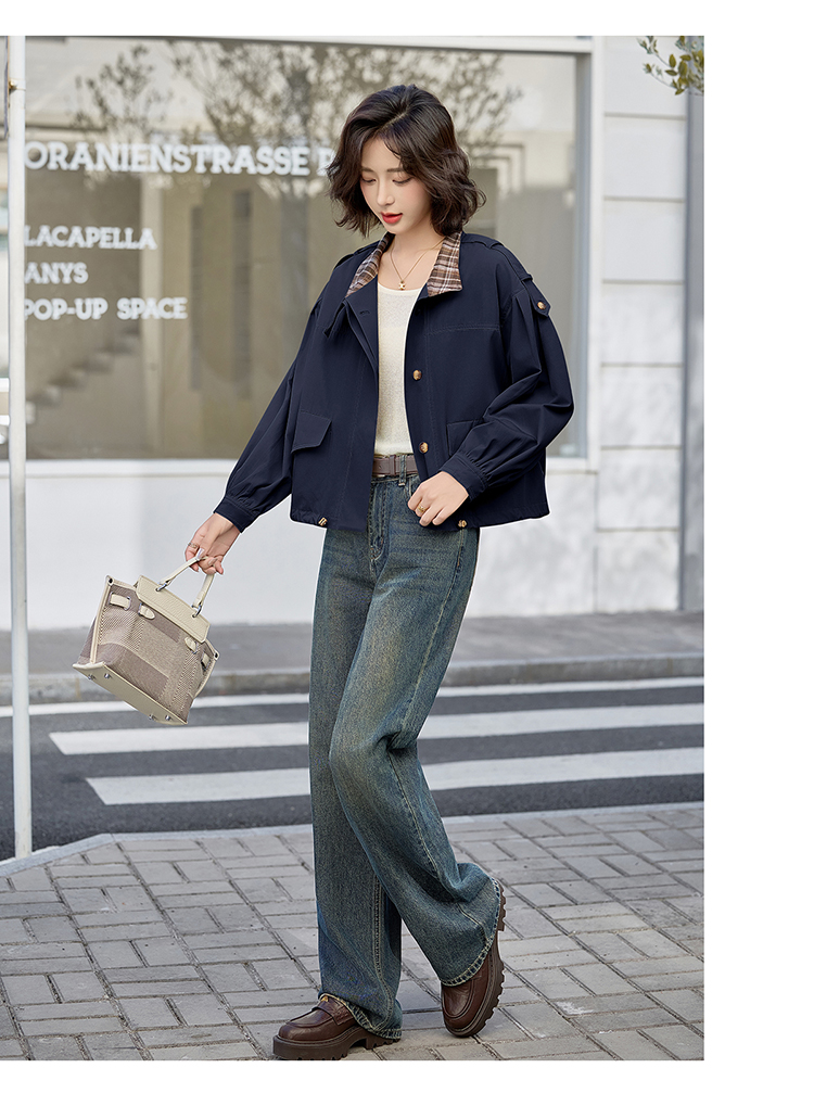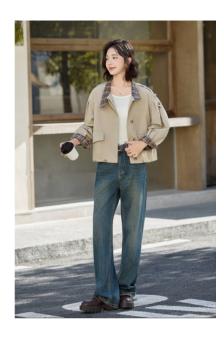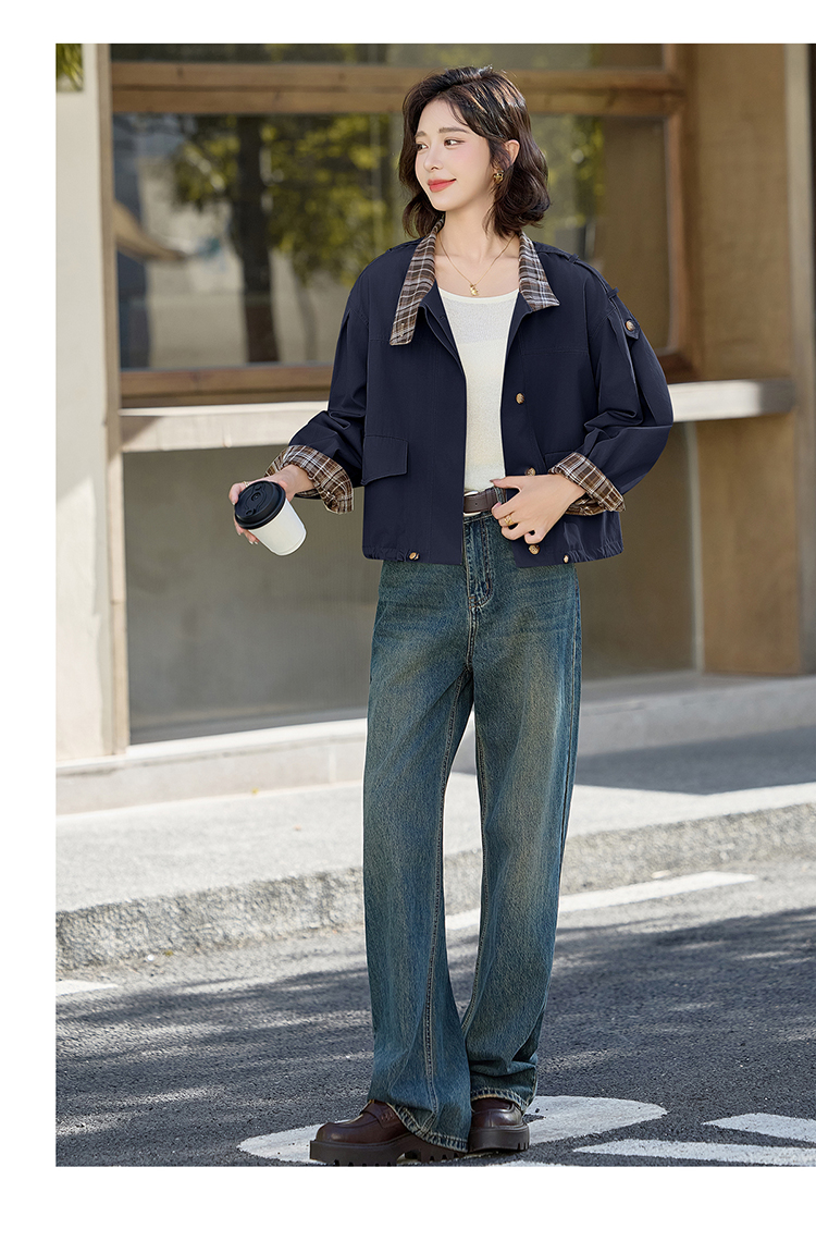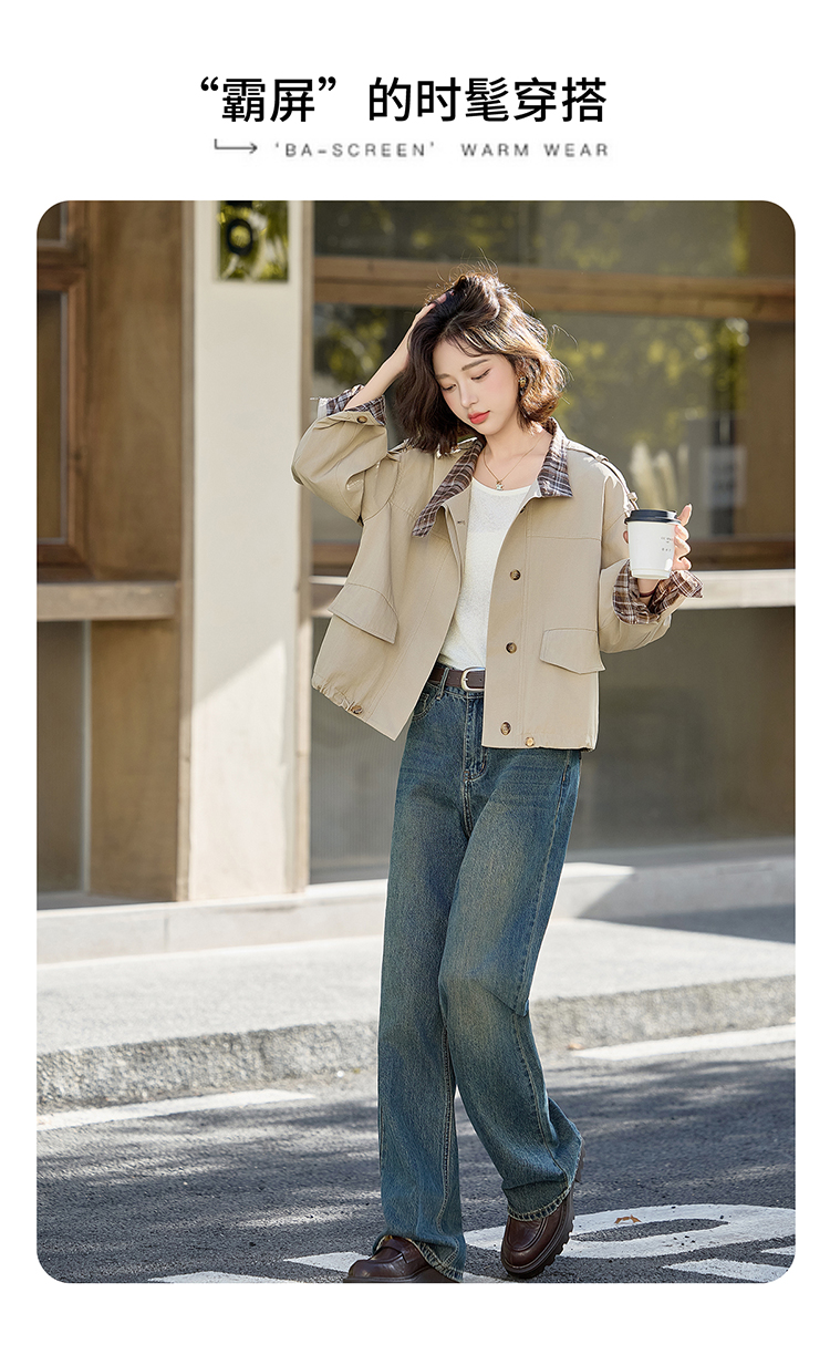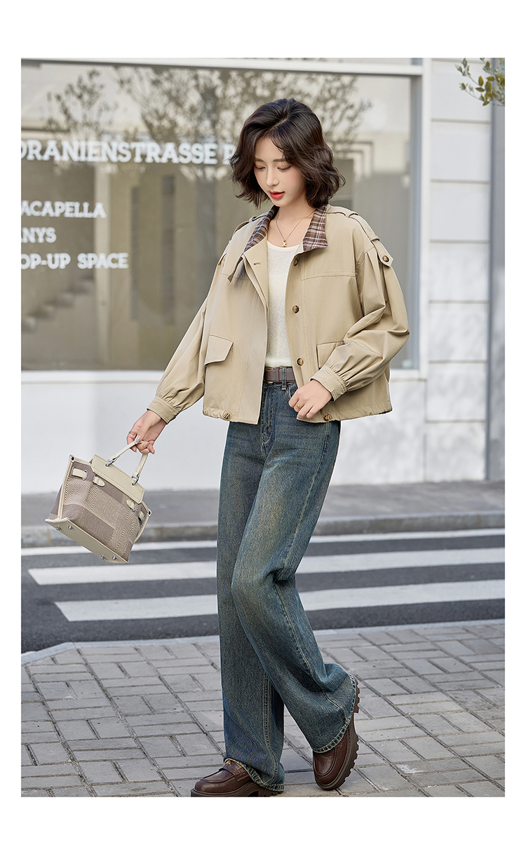 休闲初秋风衣外套,翻领抽绳小个子短款夹克上衣潮HR-WJ5861
