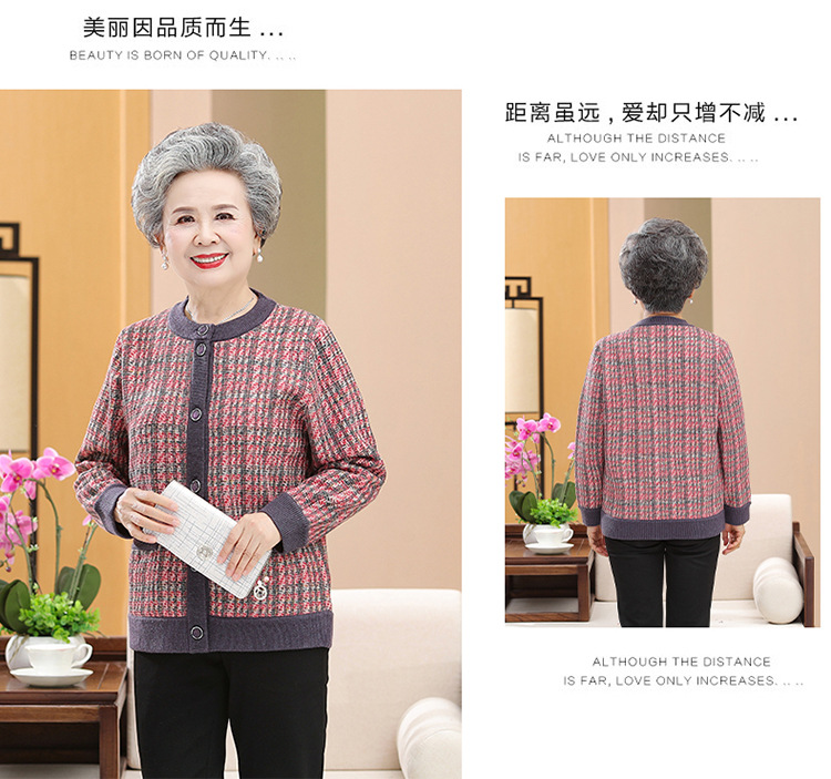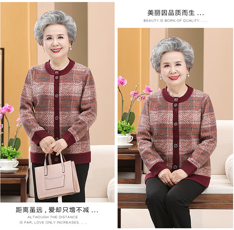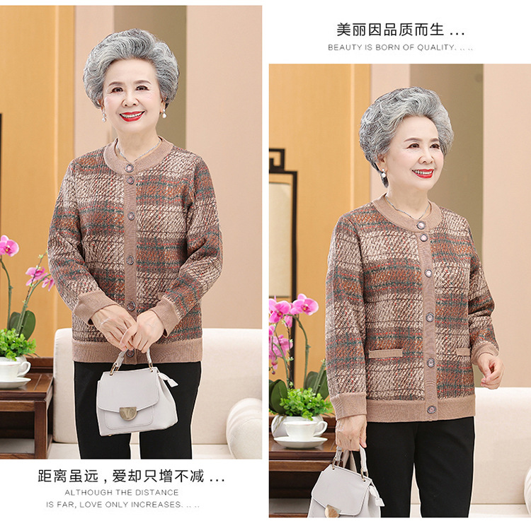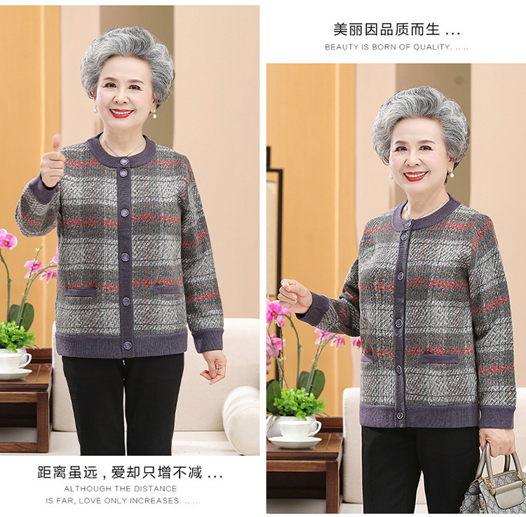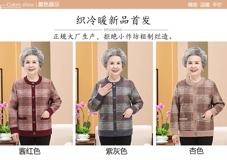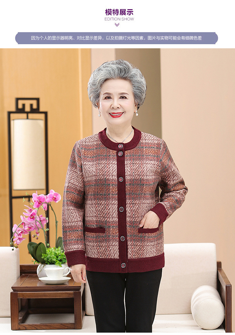 【加绒针织开衫】中老年人妈妈装 秋冬装毛衣外套 奶奶保暖上衣