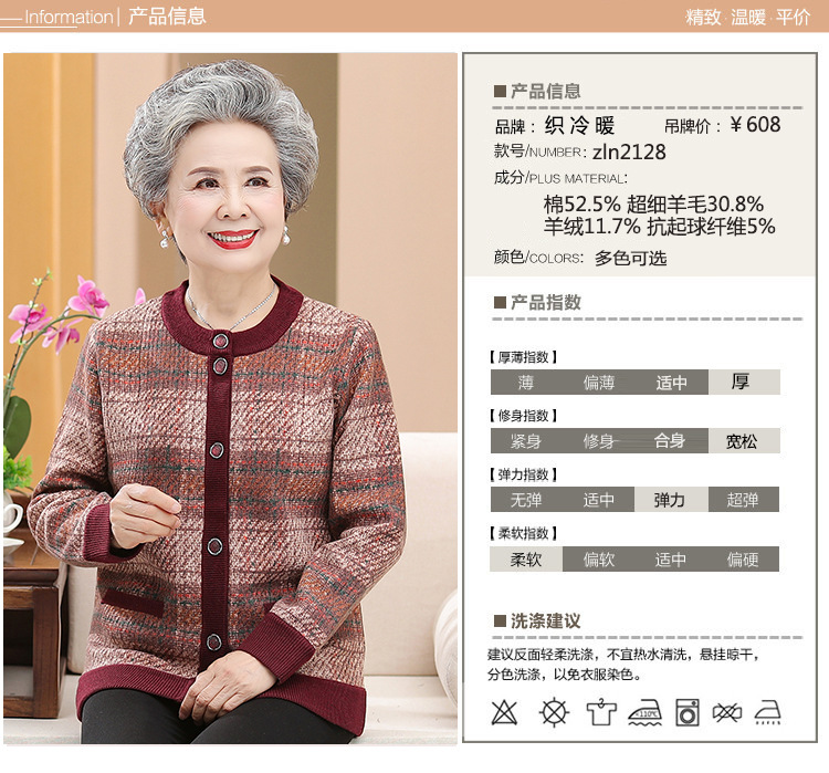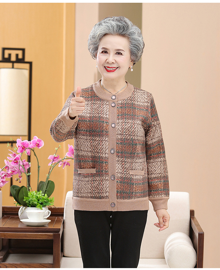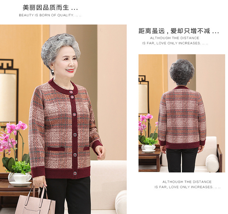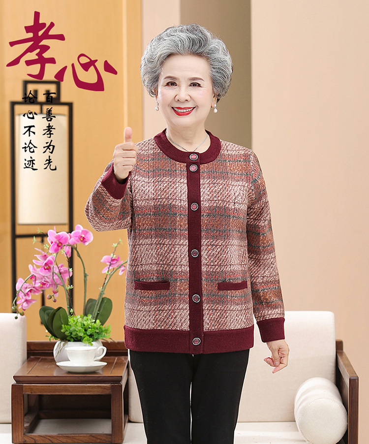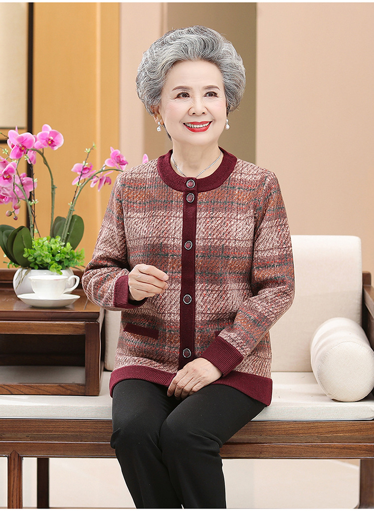 【加绒针织开衫】中老年人妈妈装 秋冬装毛衣外套 奶奶保暖上衣