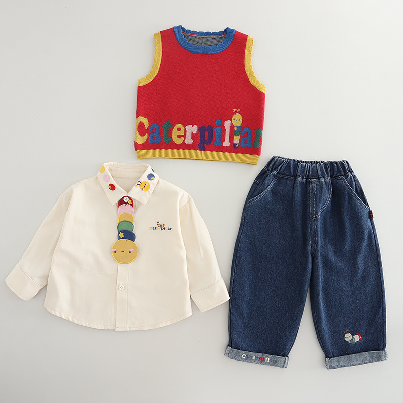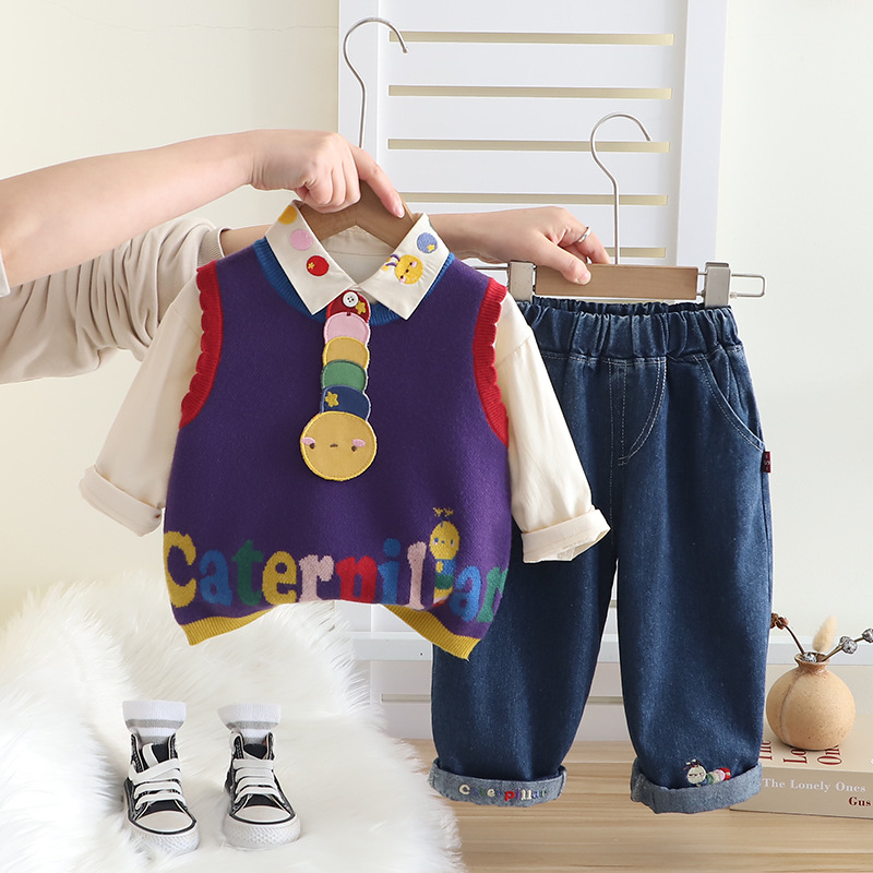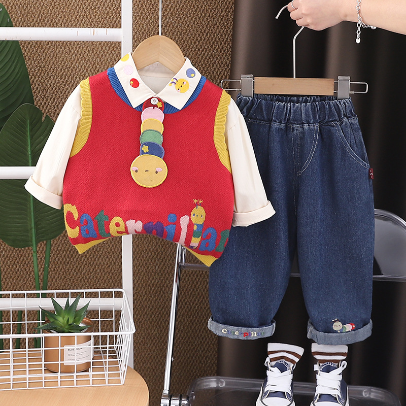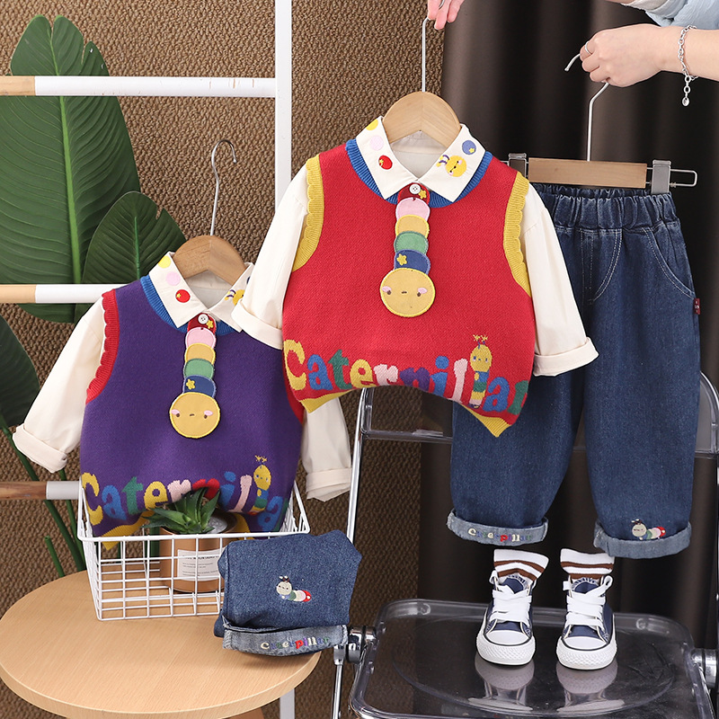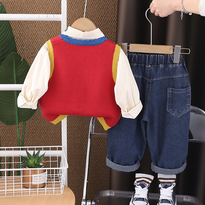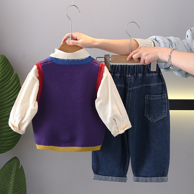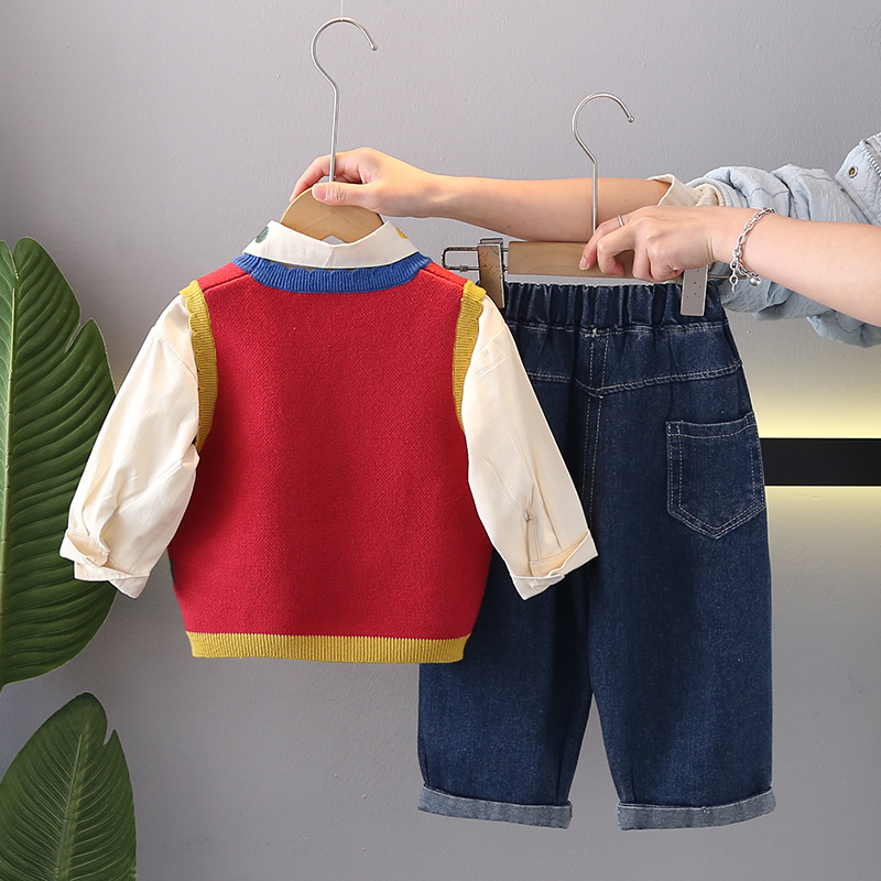 【新品抢先看!春款套装!】男童套装 春装2025新款 洋气婴儿童 春季帅气毛衣马甲三件套 宝宝潮衣-QQ
