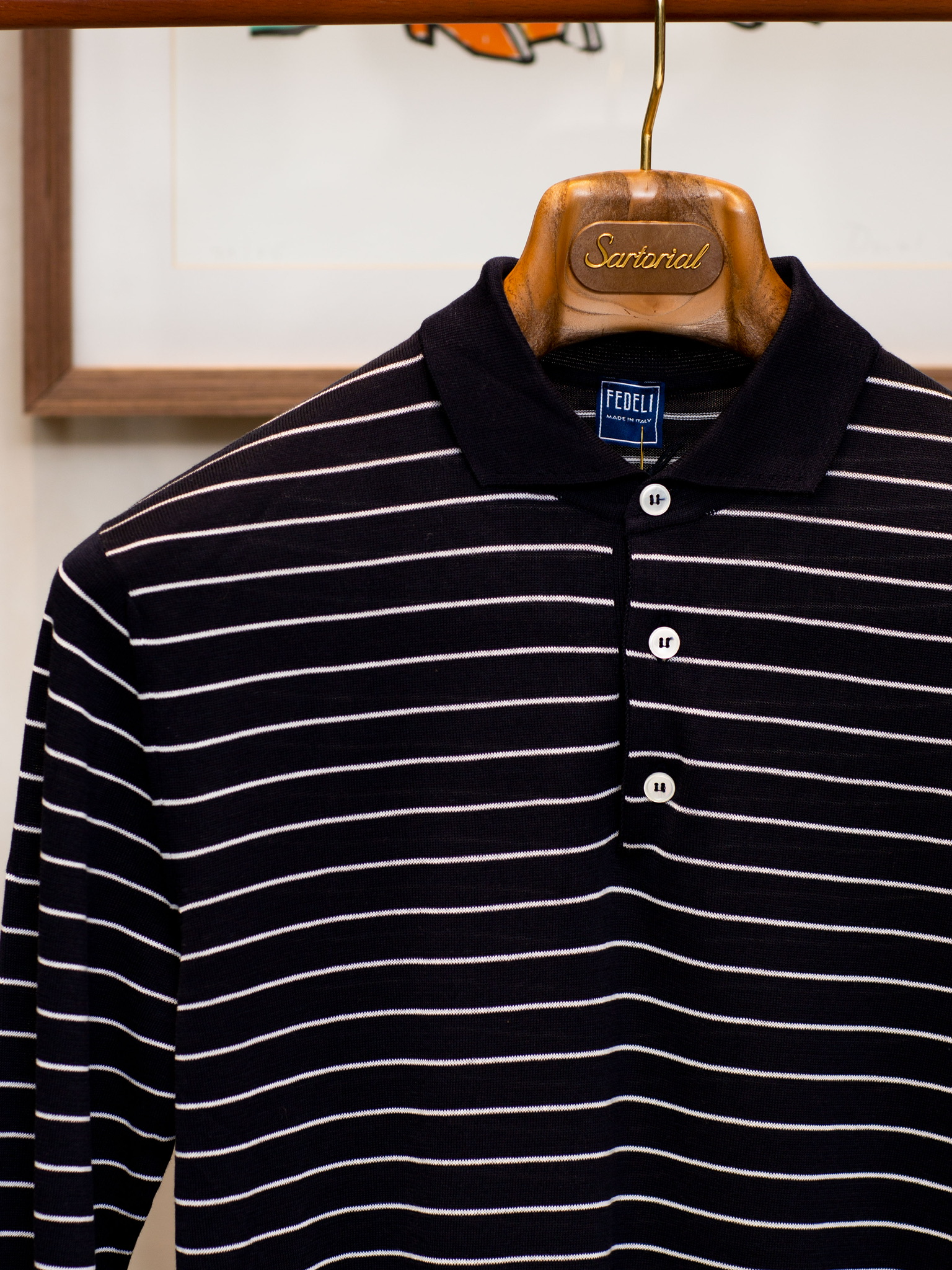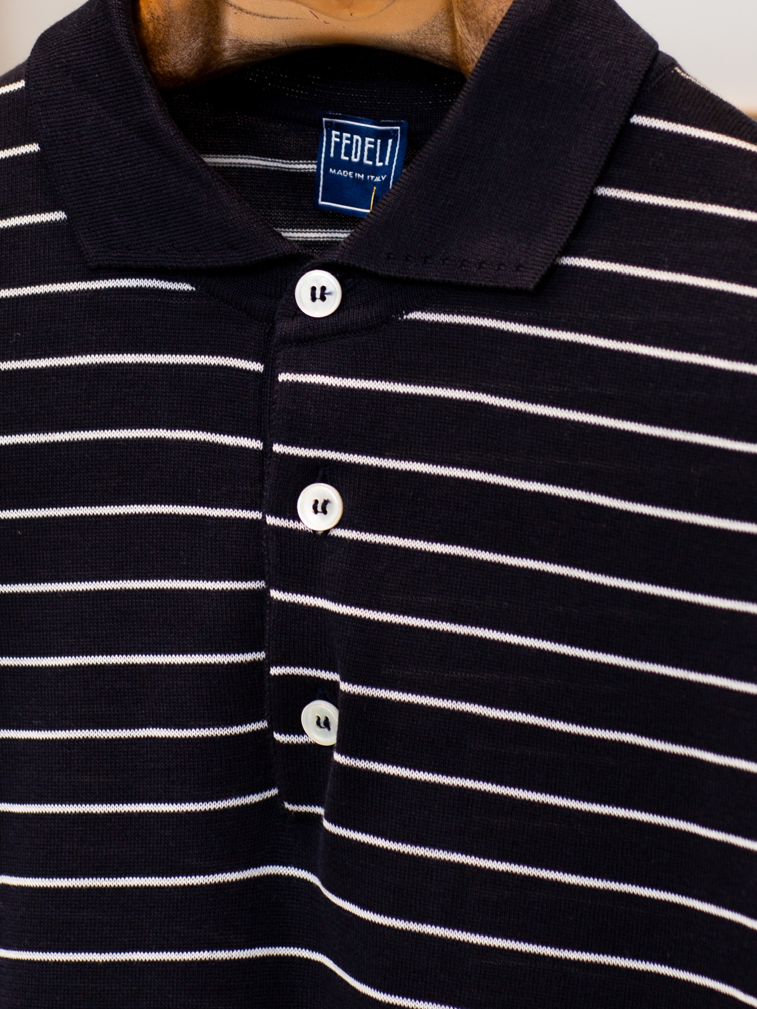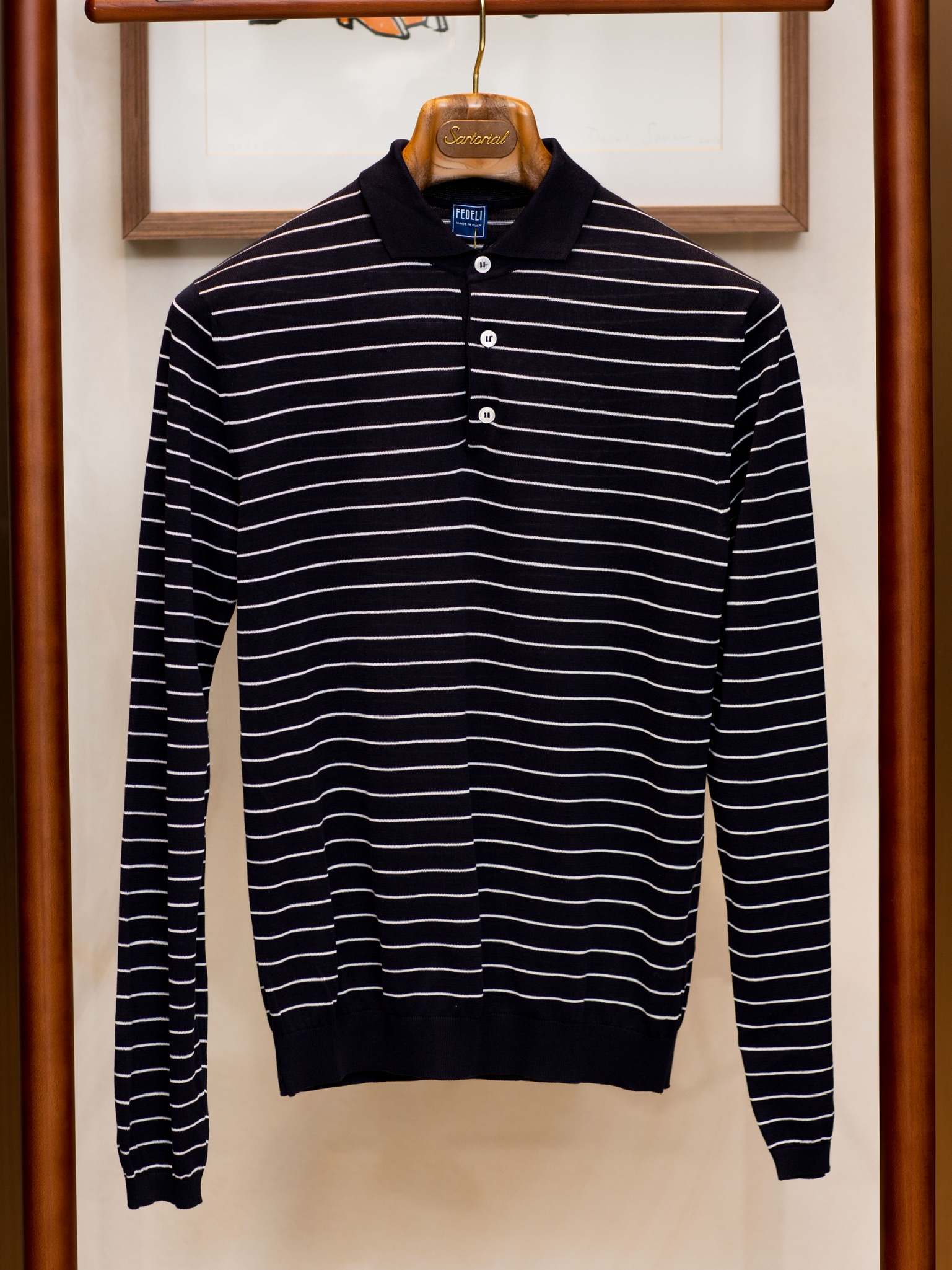 Fedeli 藏蓝条纹长袖Polo