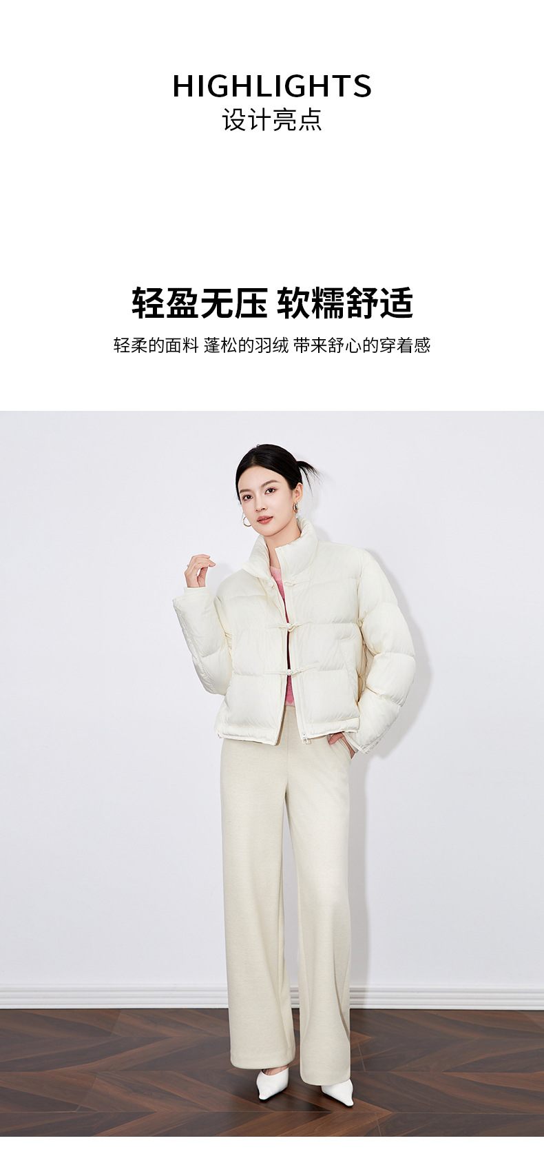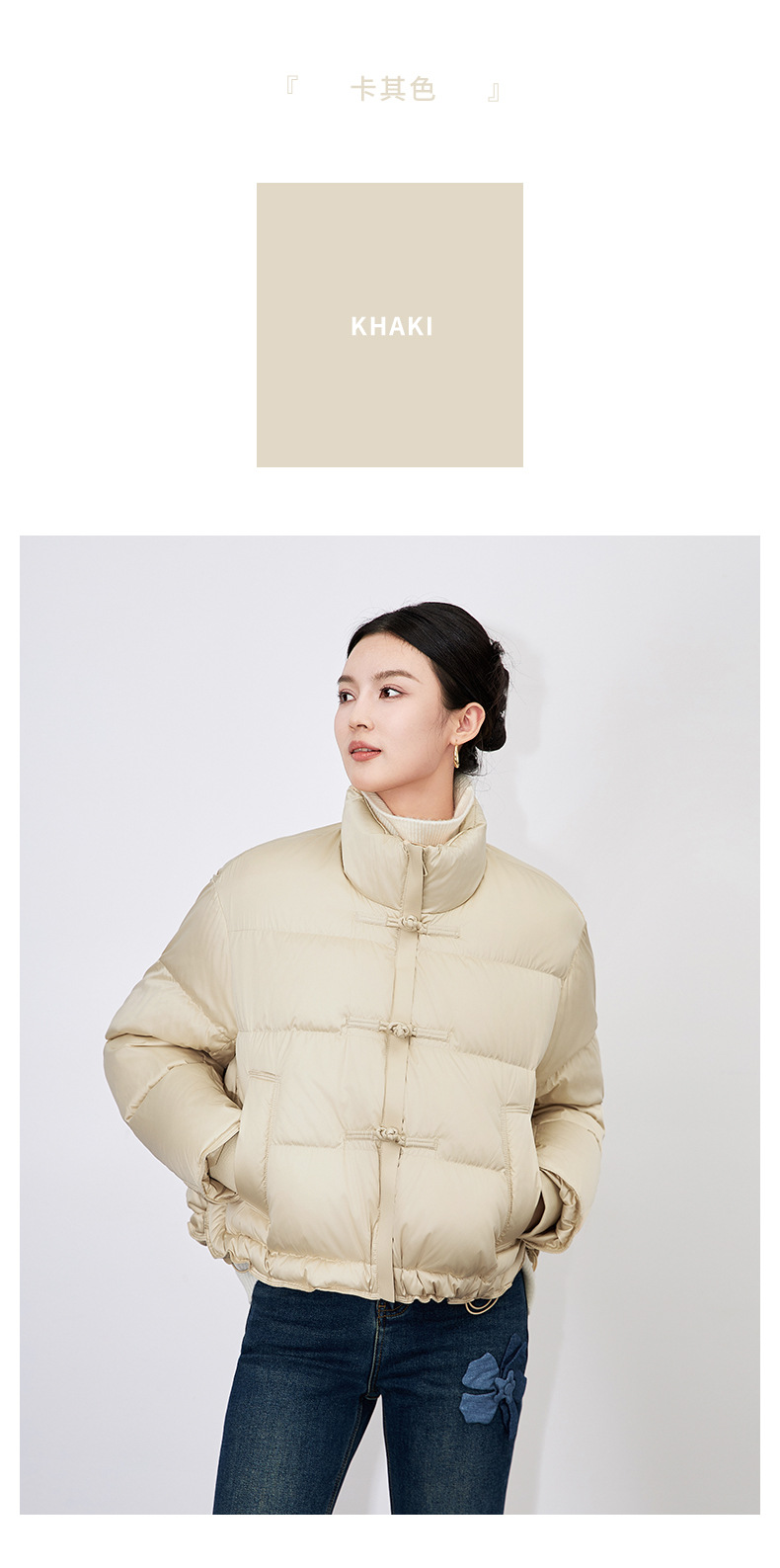 【高货wl】全新升级【铂金会员514/天猫699/差价185】(05230) 洛诗琳秋冬时尚简约宽松短款新中式立领国风设计感羽绒服