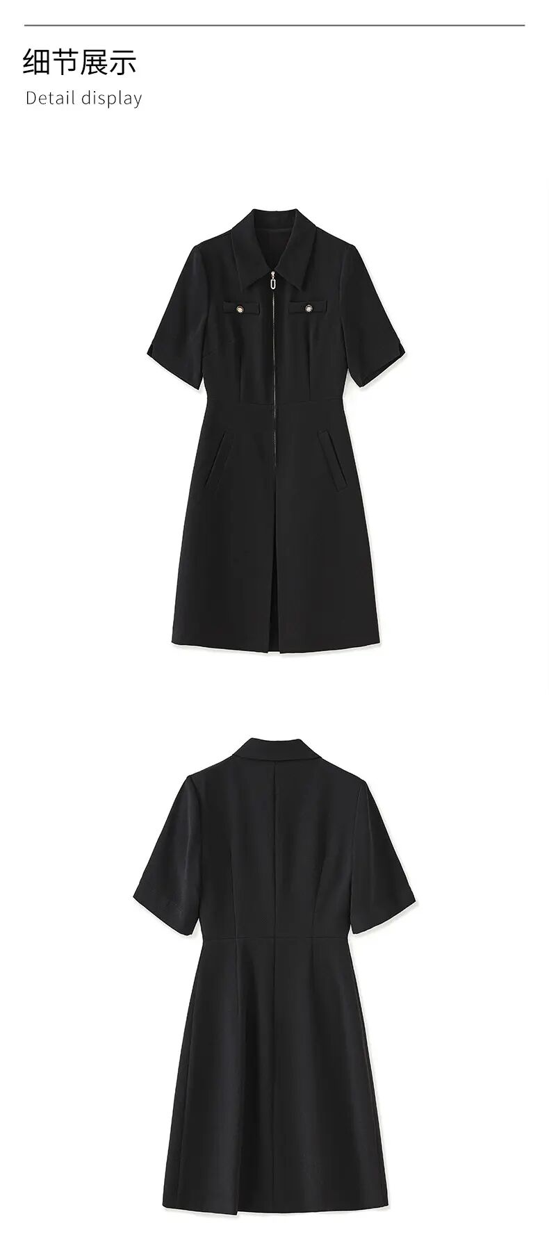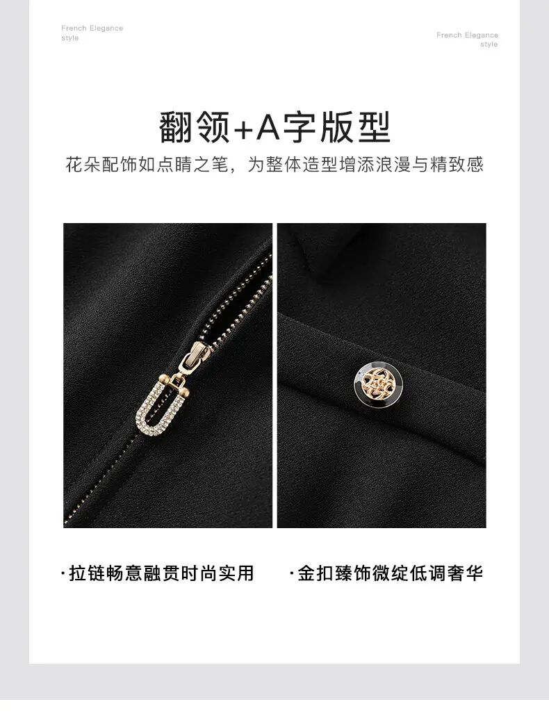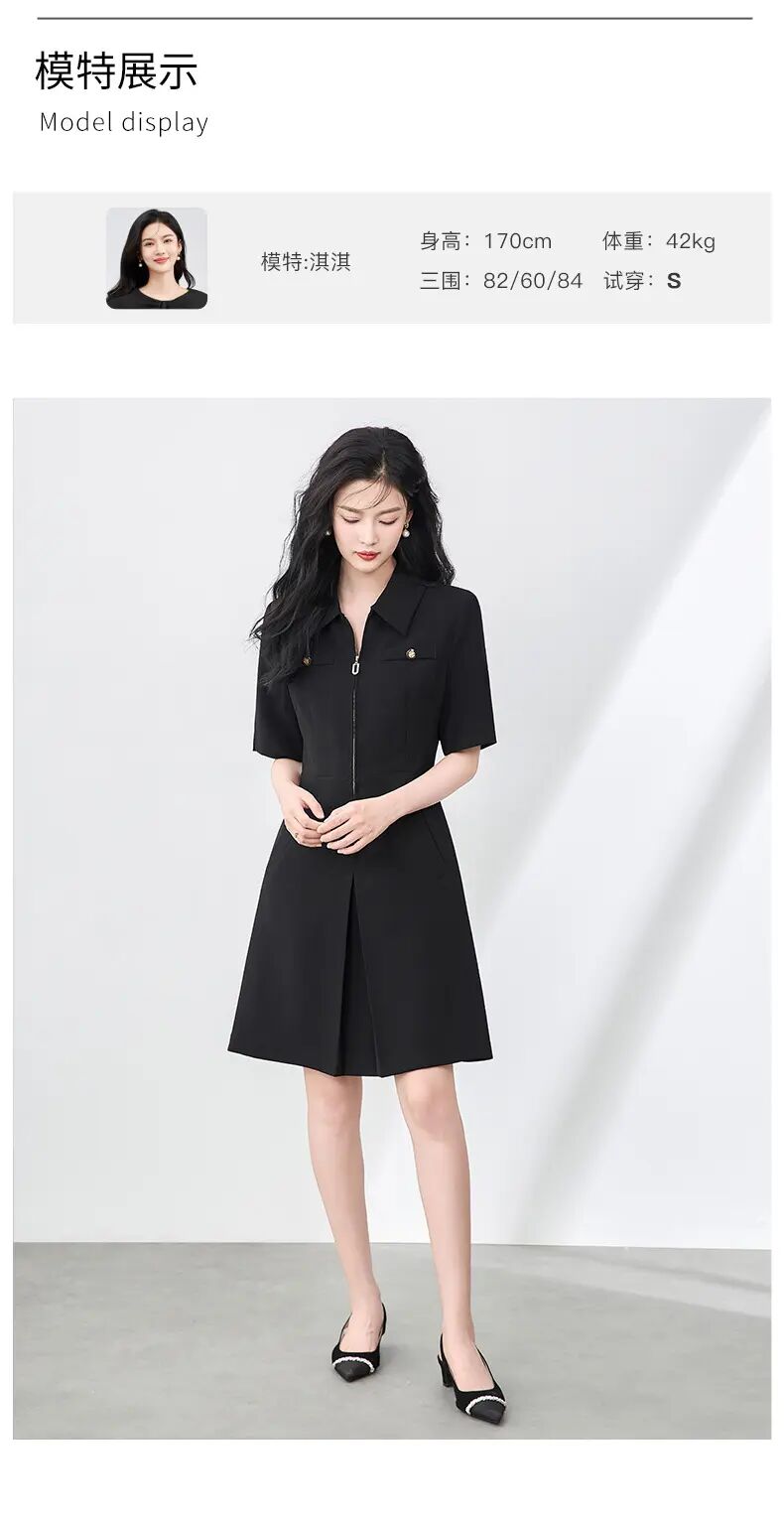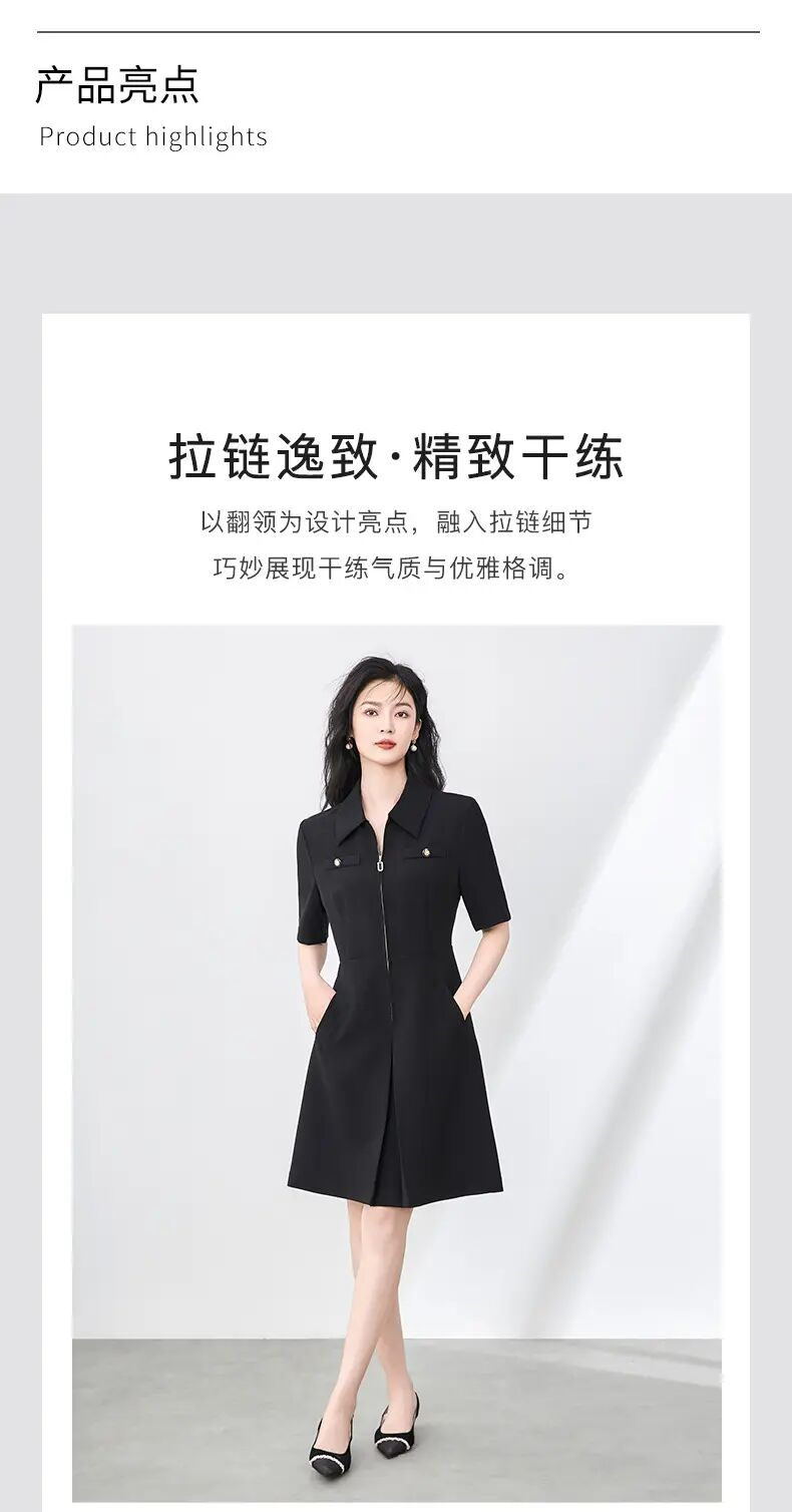 「高货wl」全新升级【铂金会员339/天猫459/差价120】(00857)洛诗琳法式高级感连衣裙2025夏季优雅翻领镶钻拉链收腰裙子00857