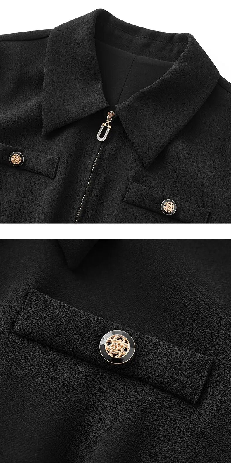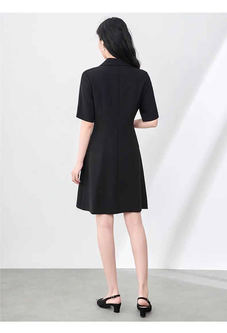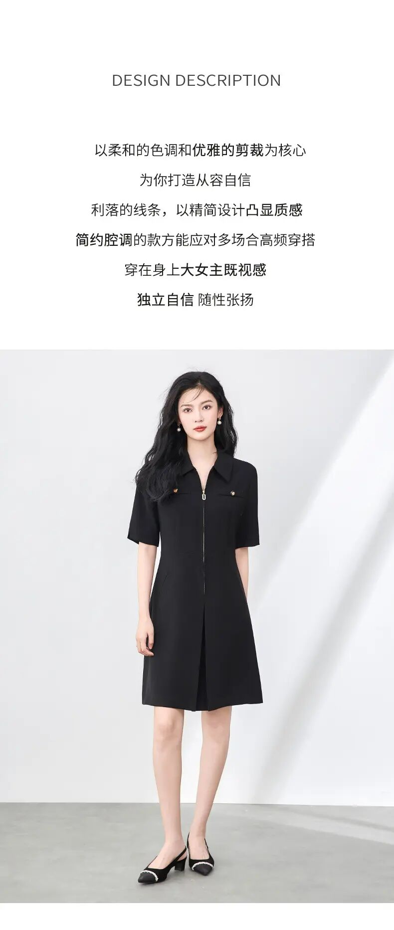 「高货wl」全新升级【铂金会员339/天猫459/差价120】(00857)洛诗琳法式高级感连衣裙2025夏季优雅翻领镶钻拉链收腰裙子00857