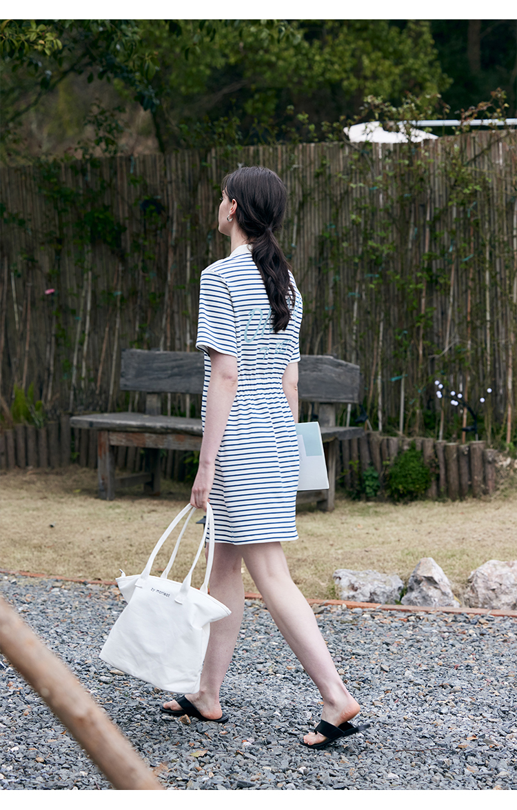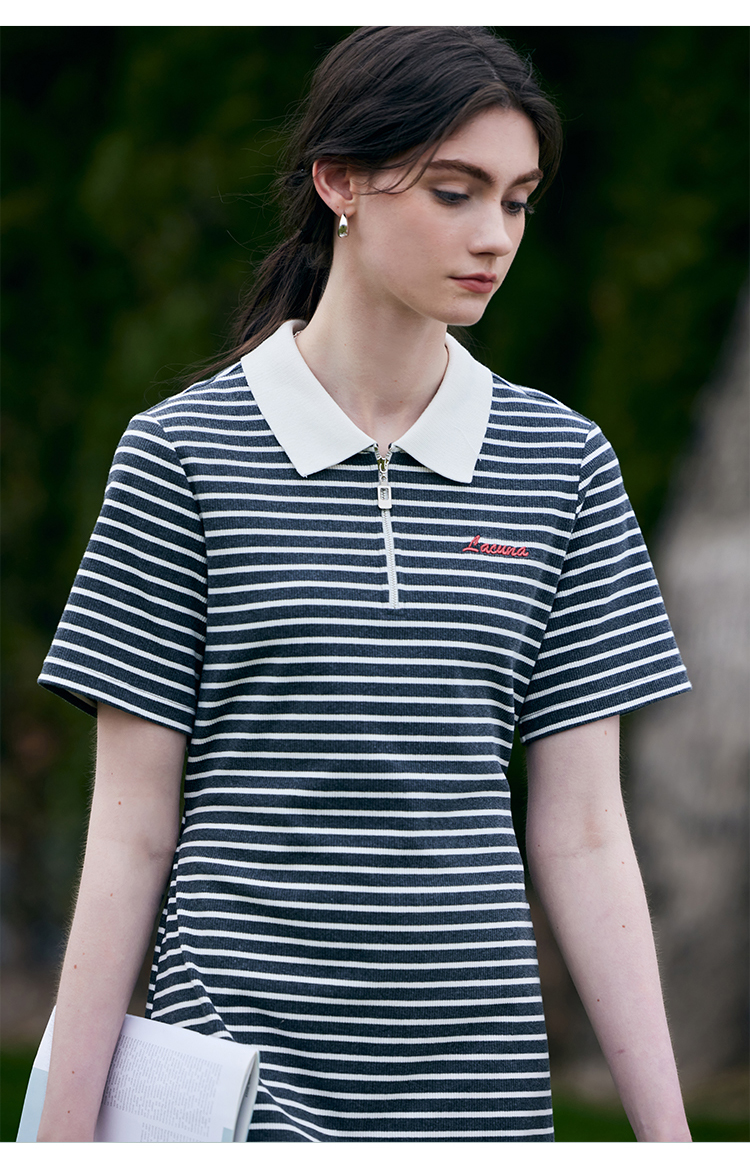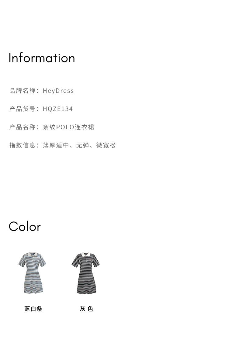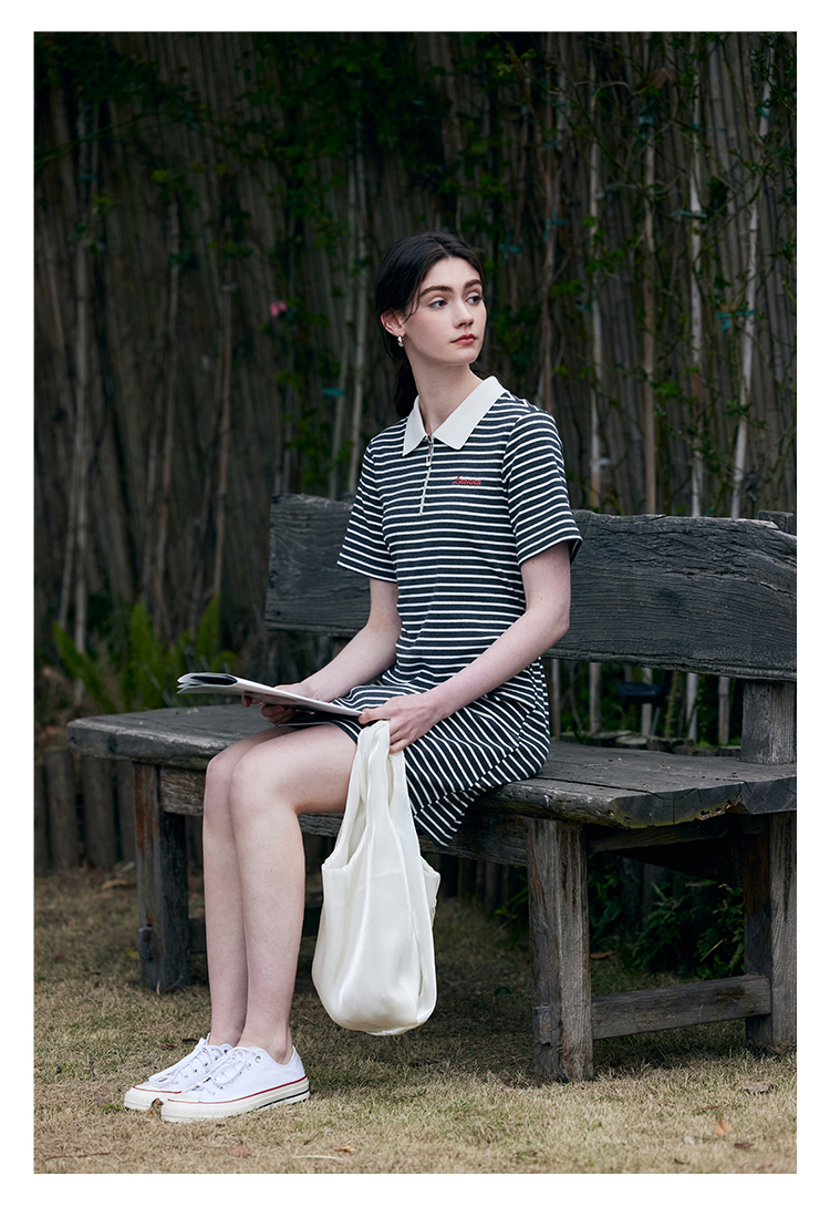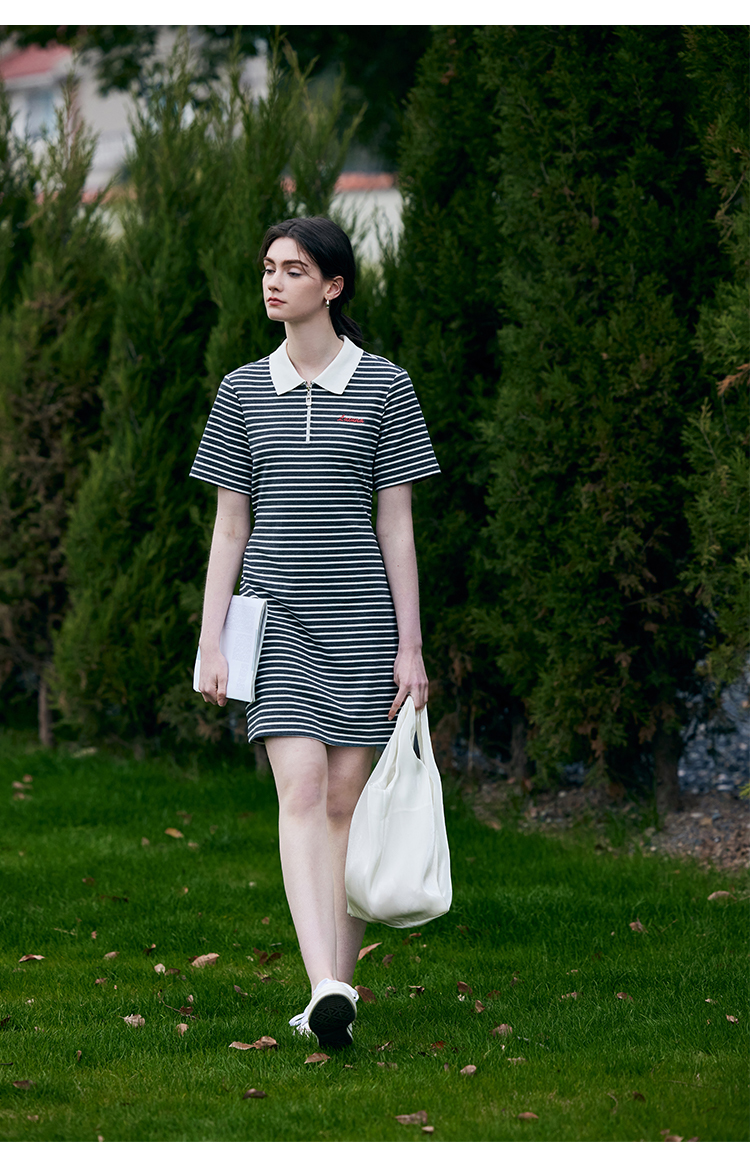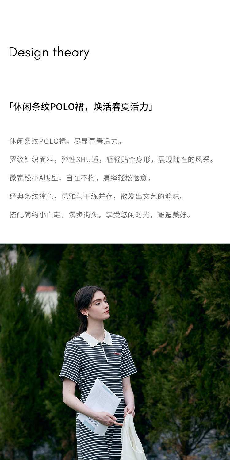 HeyDress条纹polo连衣裙女夏季翻领宽松直筒裙休闲小个子印花裙子