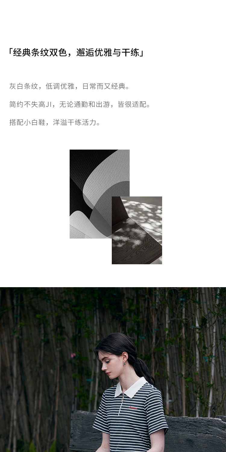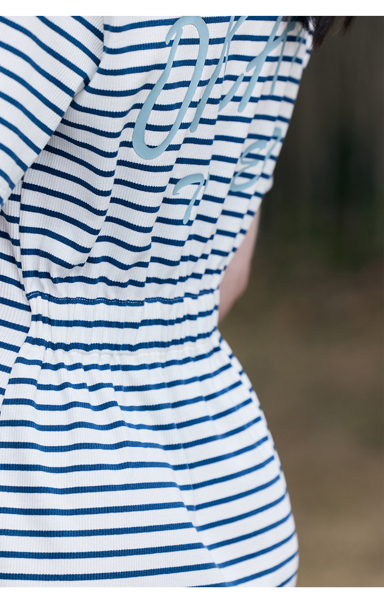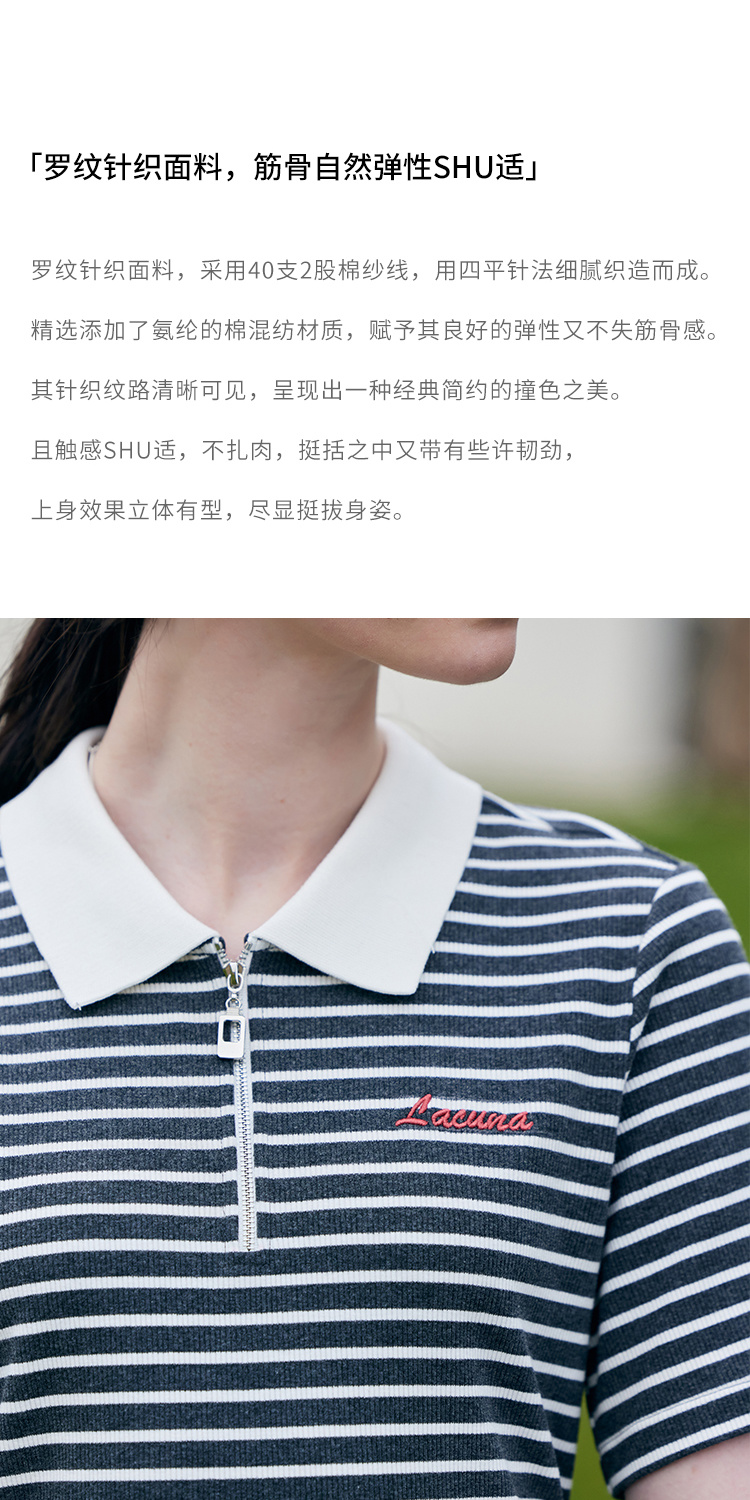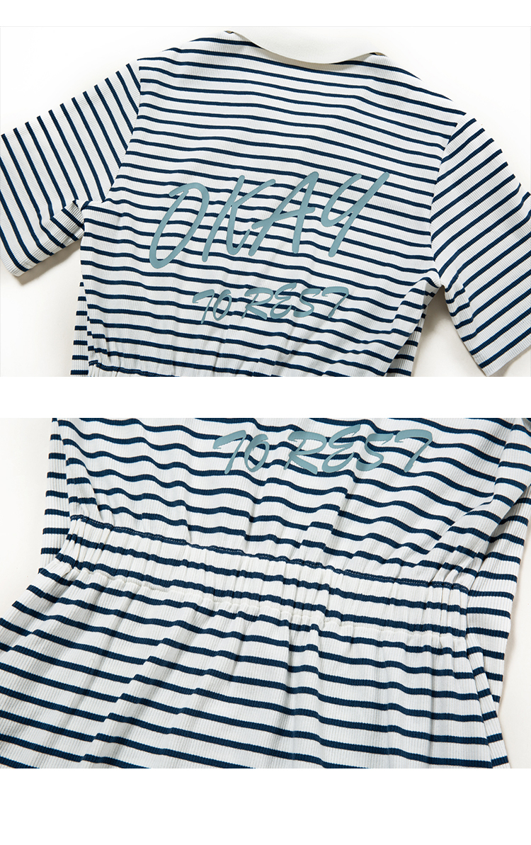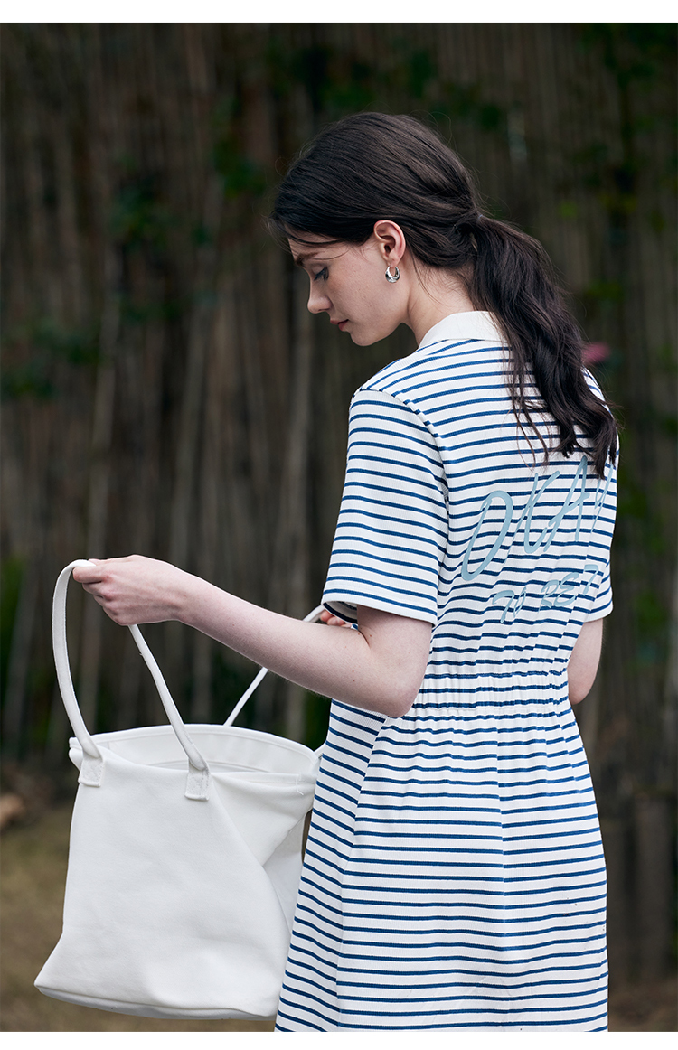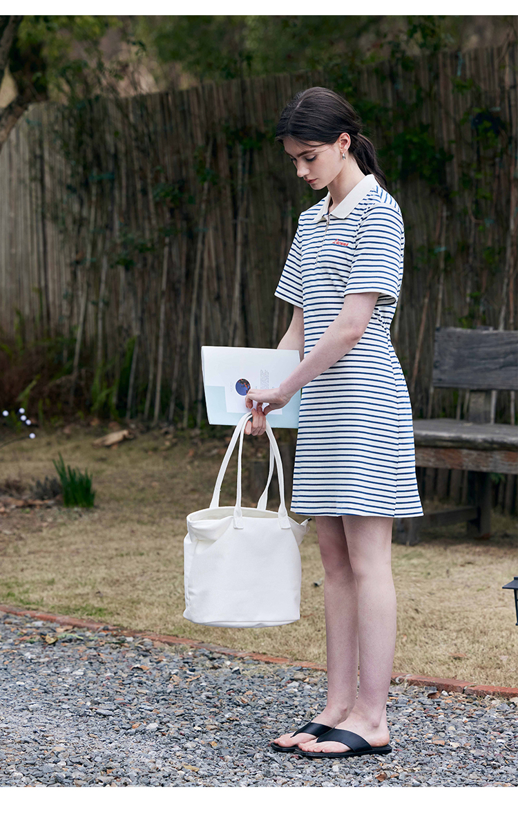 HeyDress条纹polo连衣裙女夏季翻领宽松直筒裙休闲小个子印花裙子