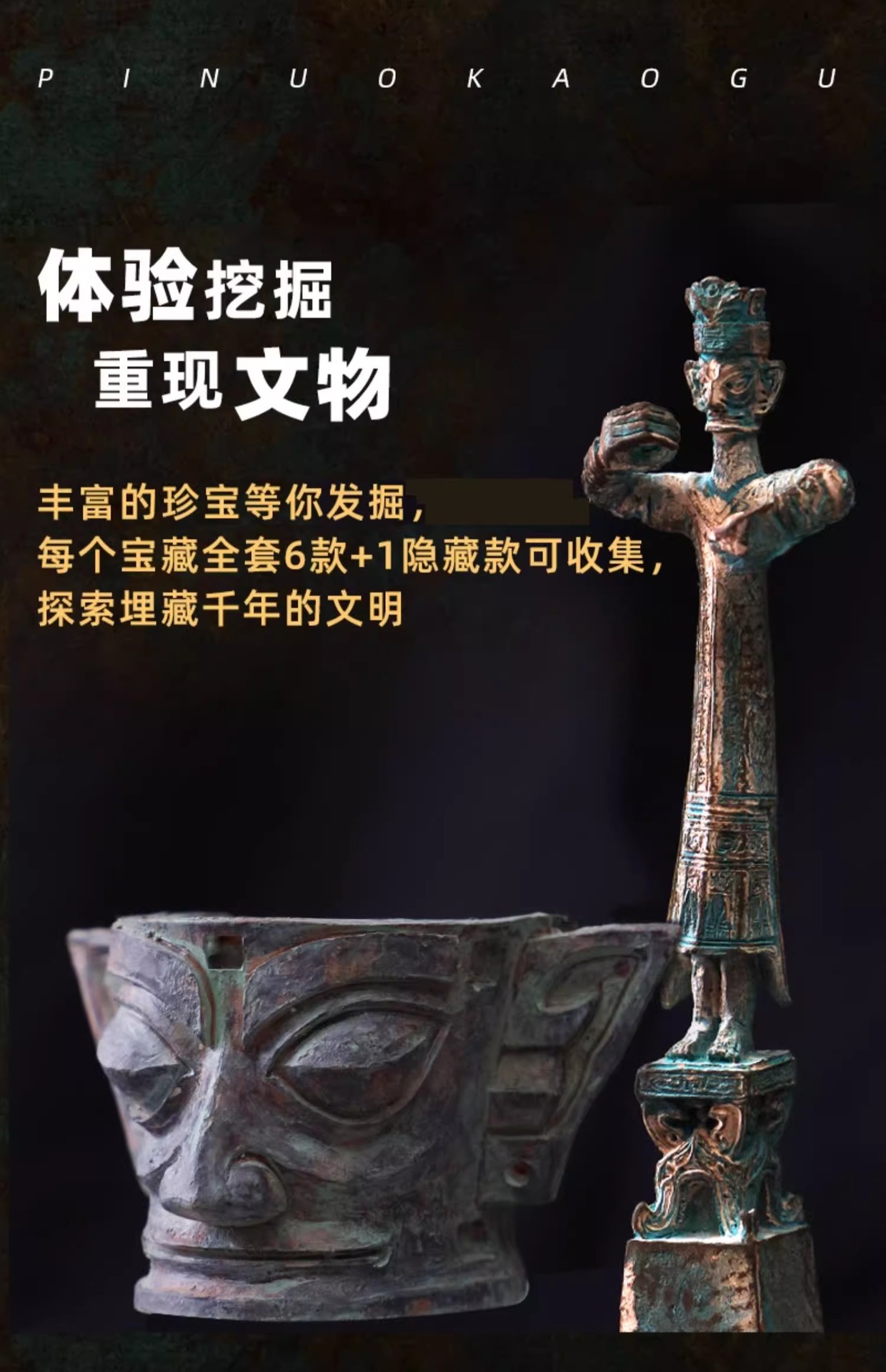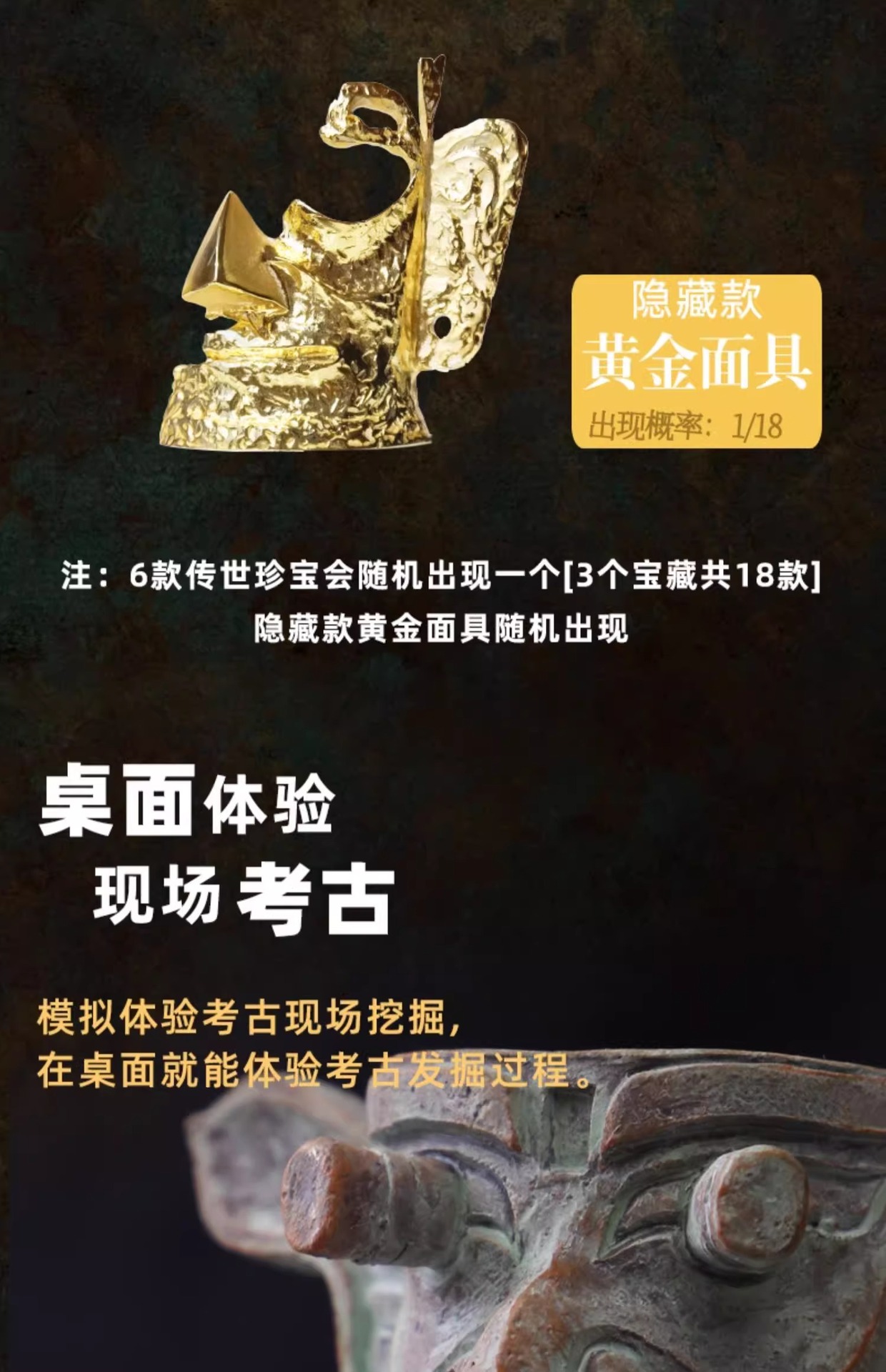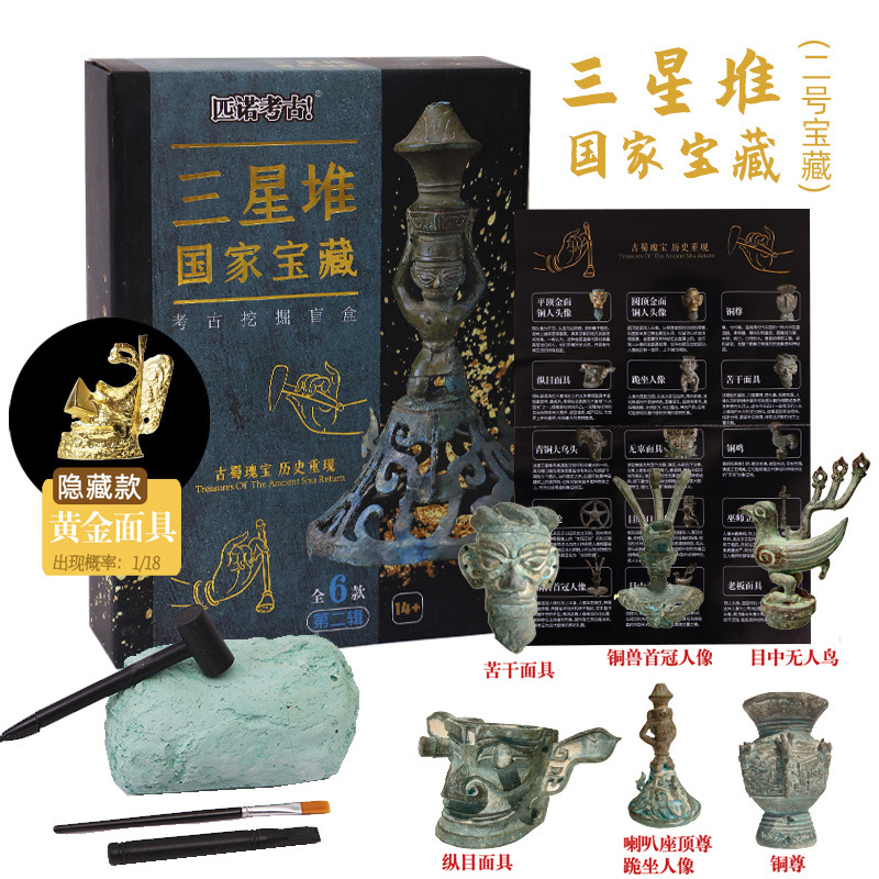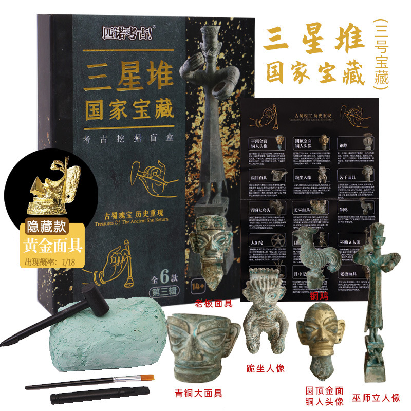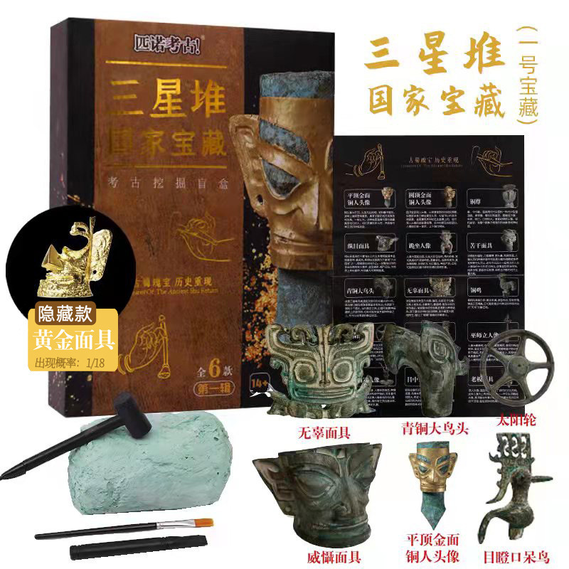 【国家宝藏三星堆】匹诺考古挖掘三星堆纵目面具黄金面具考古挖掘青铜器三星堆盲盒