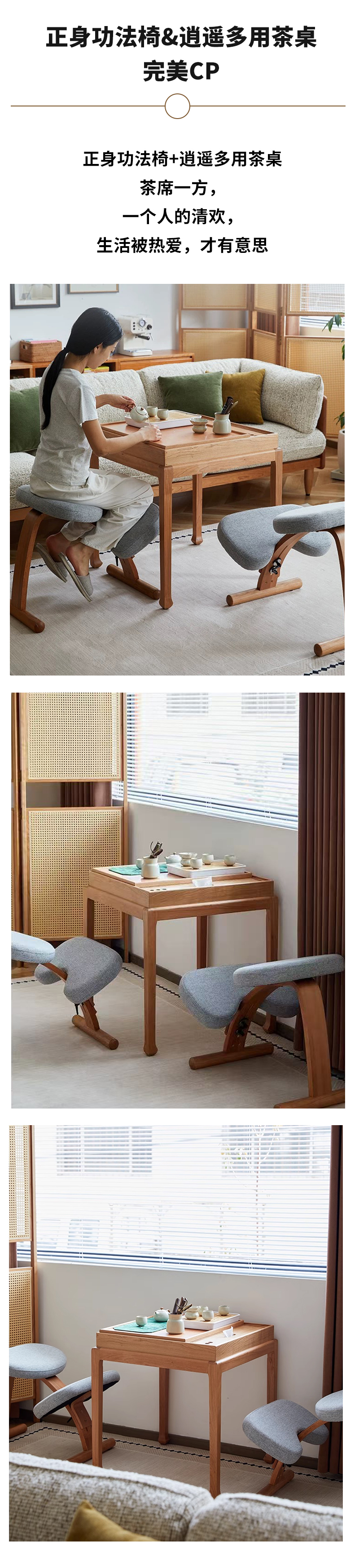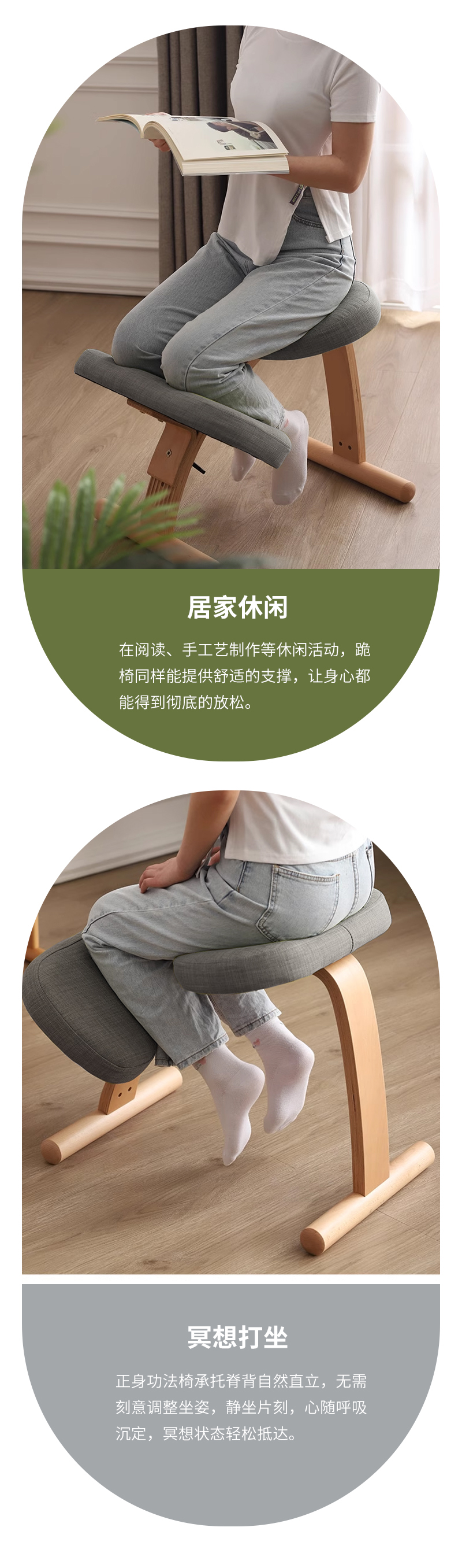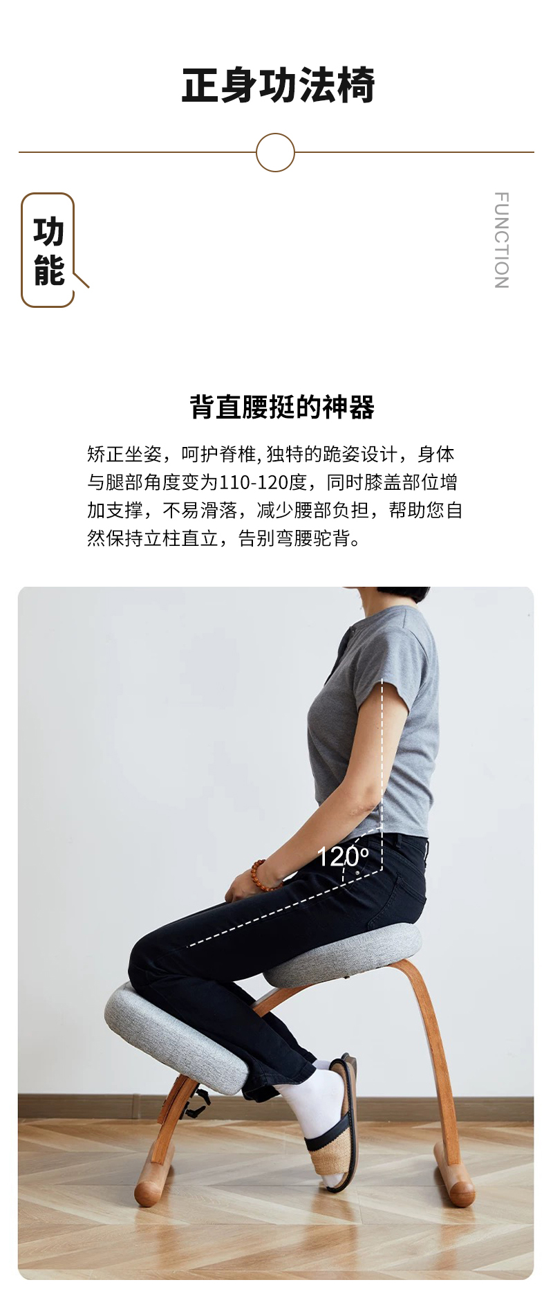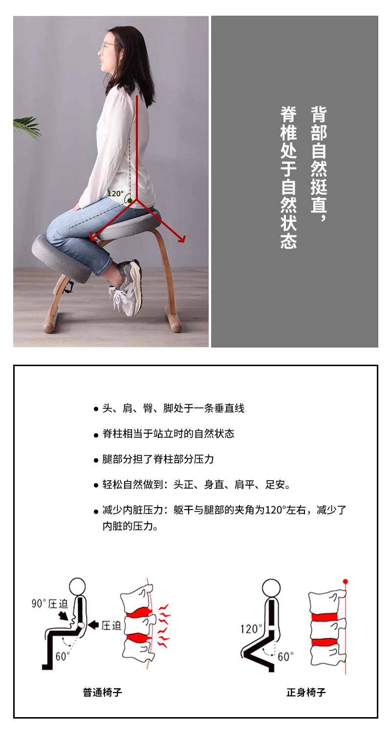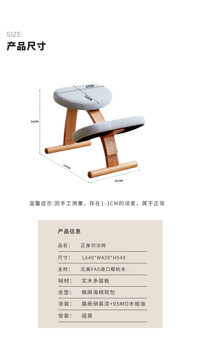 【立减100】正身功法椅 | 樱桃木色 64*42*54cm 帮助背部自然挺直 棉麻面料 办公居家喝茶打坐 附安装说明书「下单后72小时内发货」