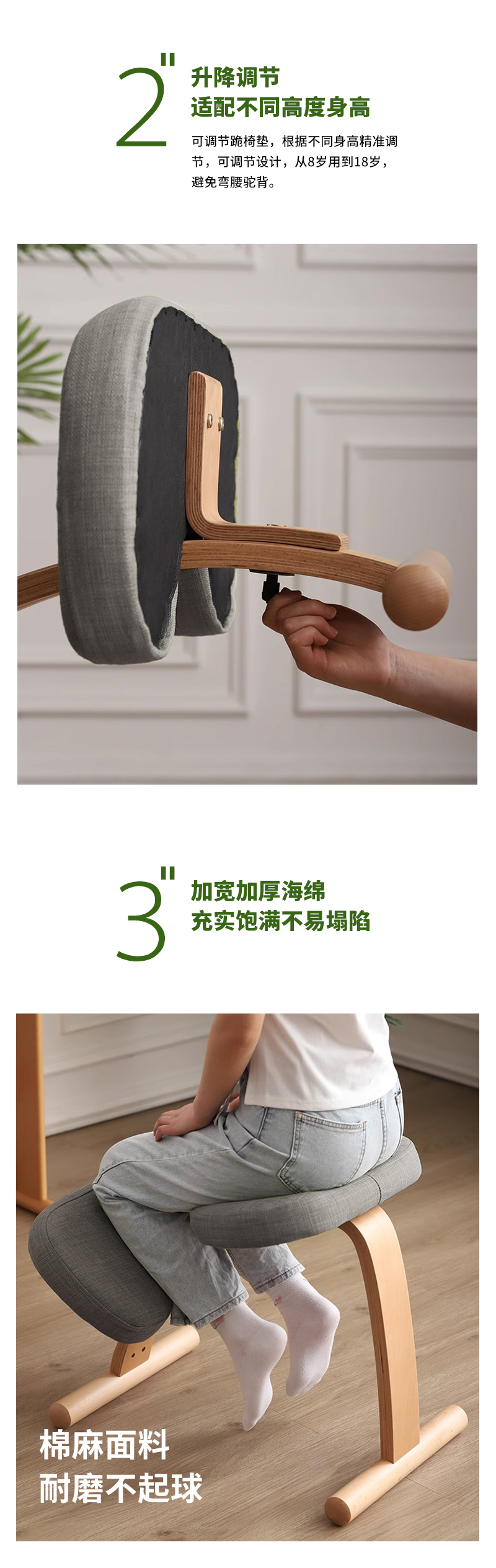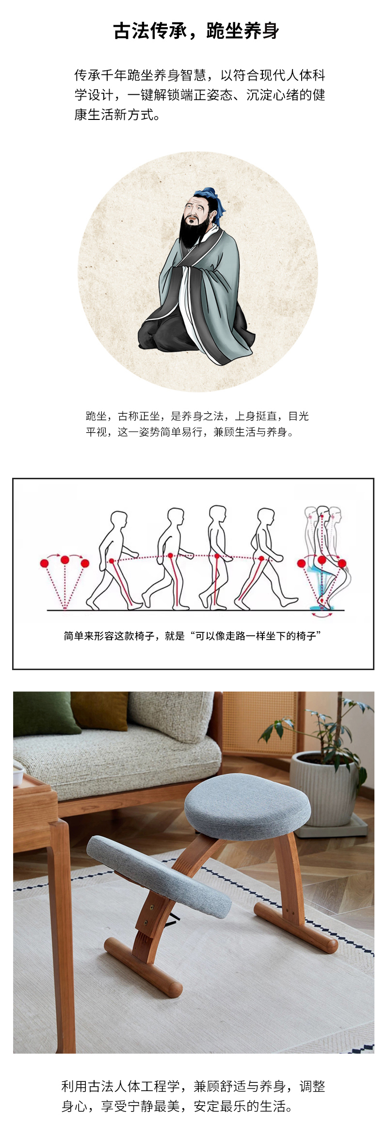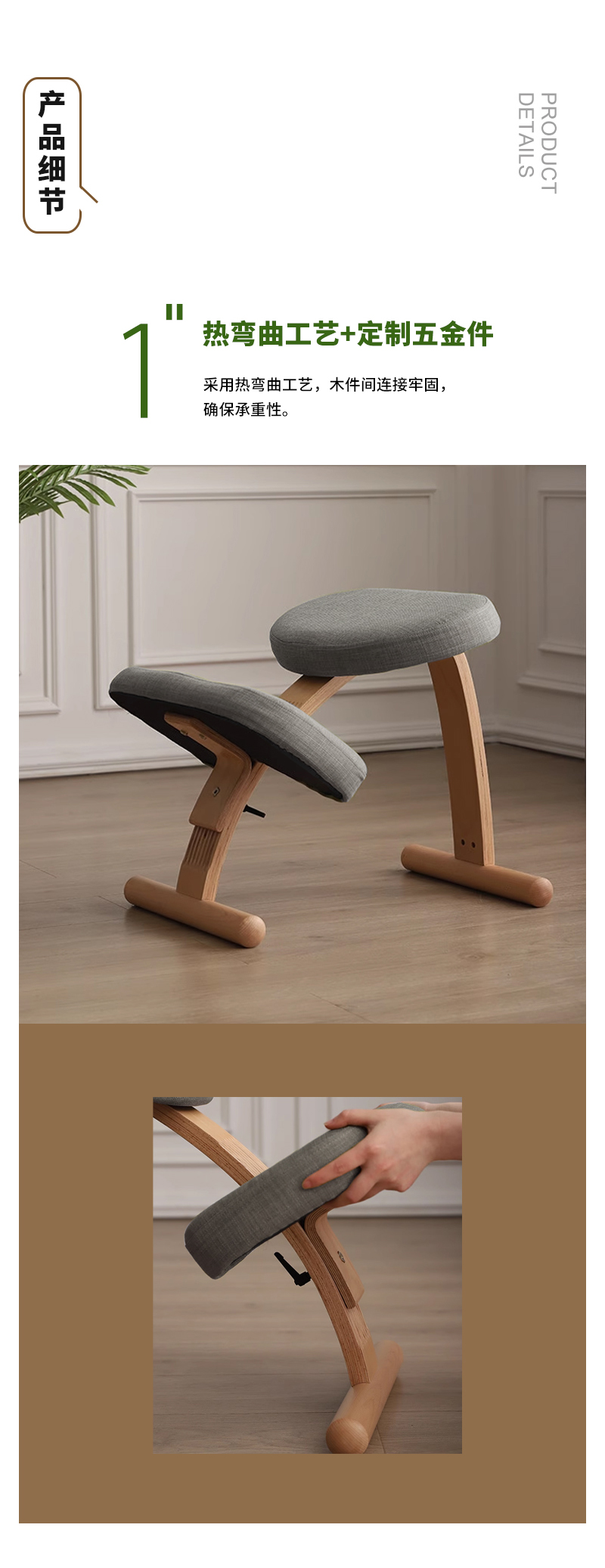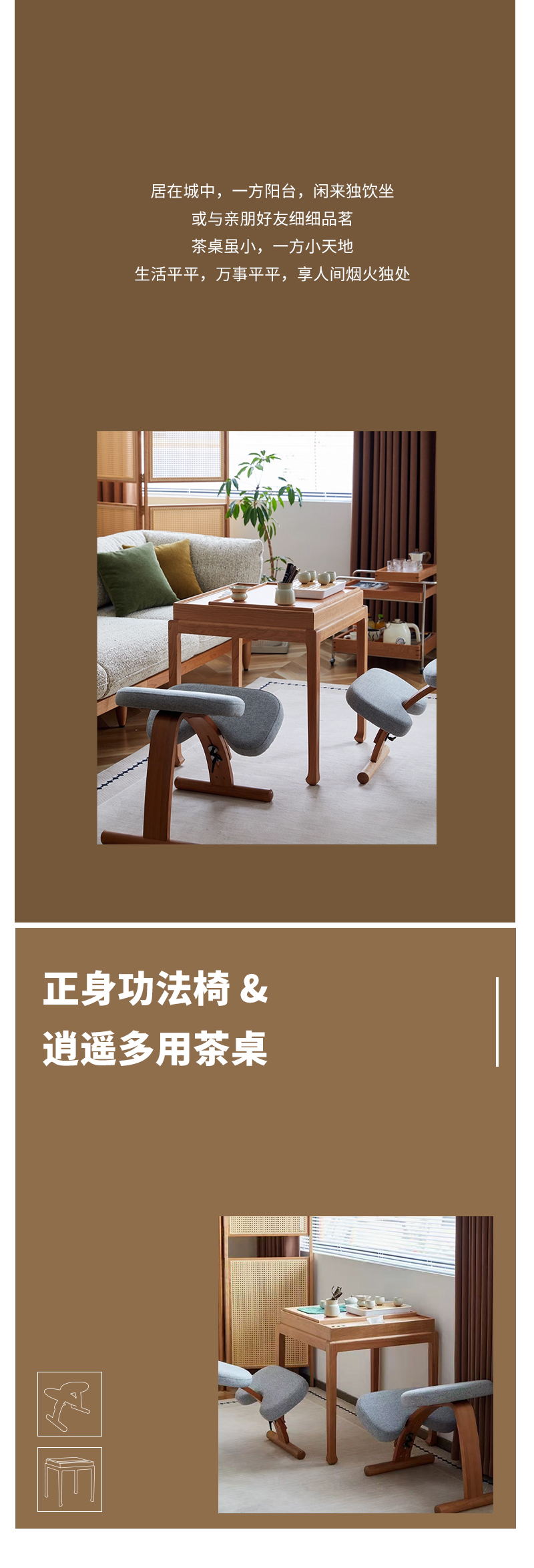 【立减100】正身功法椅 | 樱桃木色 64*42*54cm 帮助背部自然挺直 棉麻面料 办公居家喝茶打坐 附安装说明书「下单后72小时内发货」