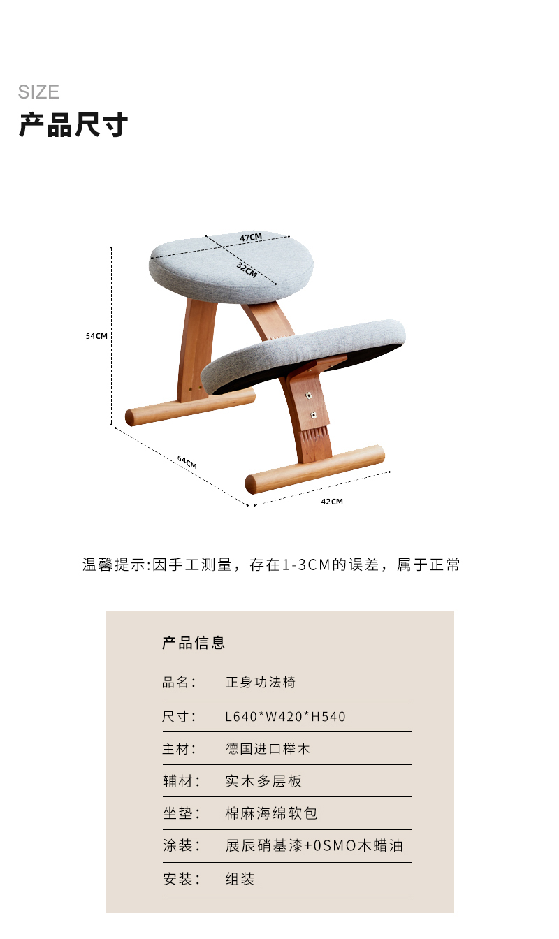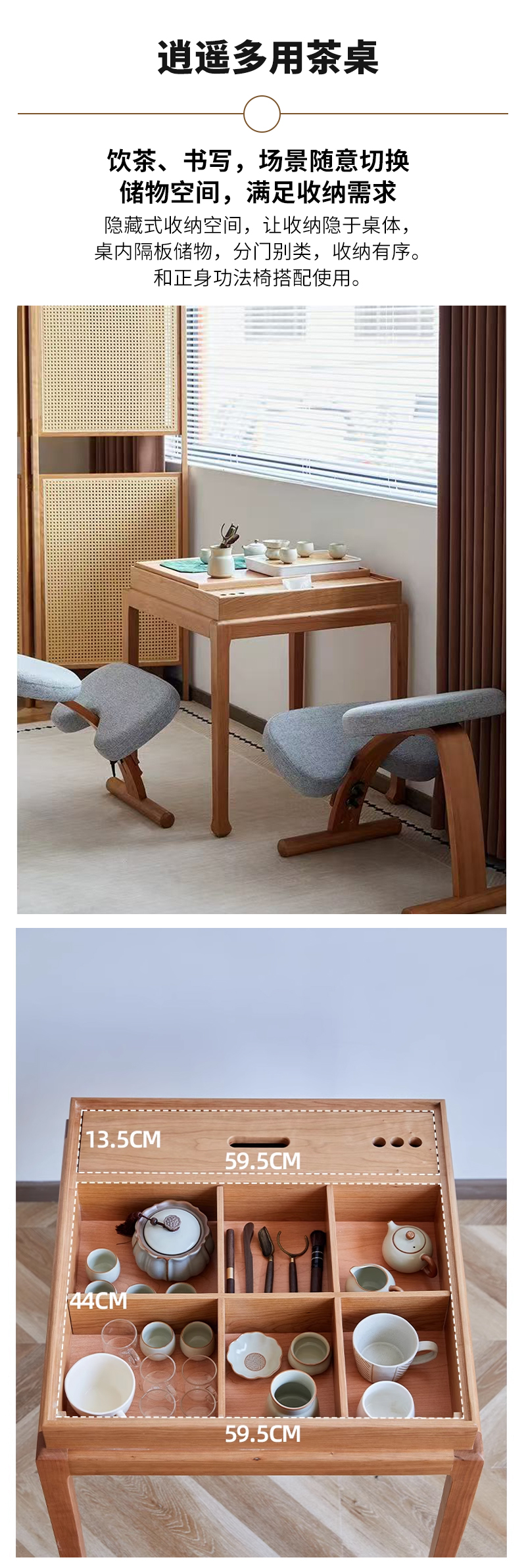 正身功法椅&逍遥多用茶桌 | 樱桃木色 帮助背部自然挺直 棉麻面料 办公居家喝茶打坐 附安装说明书