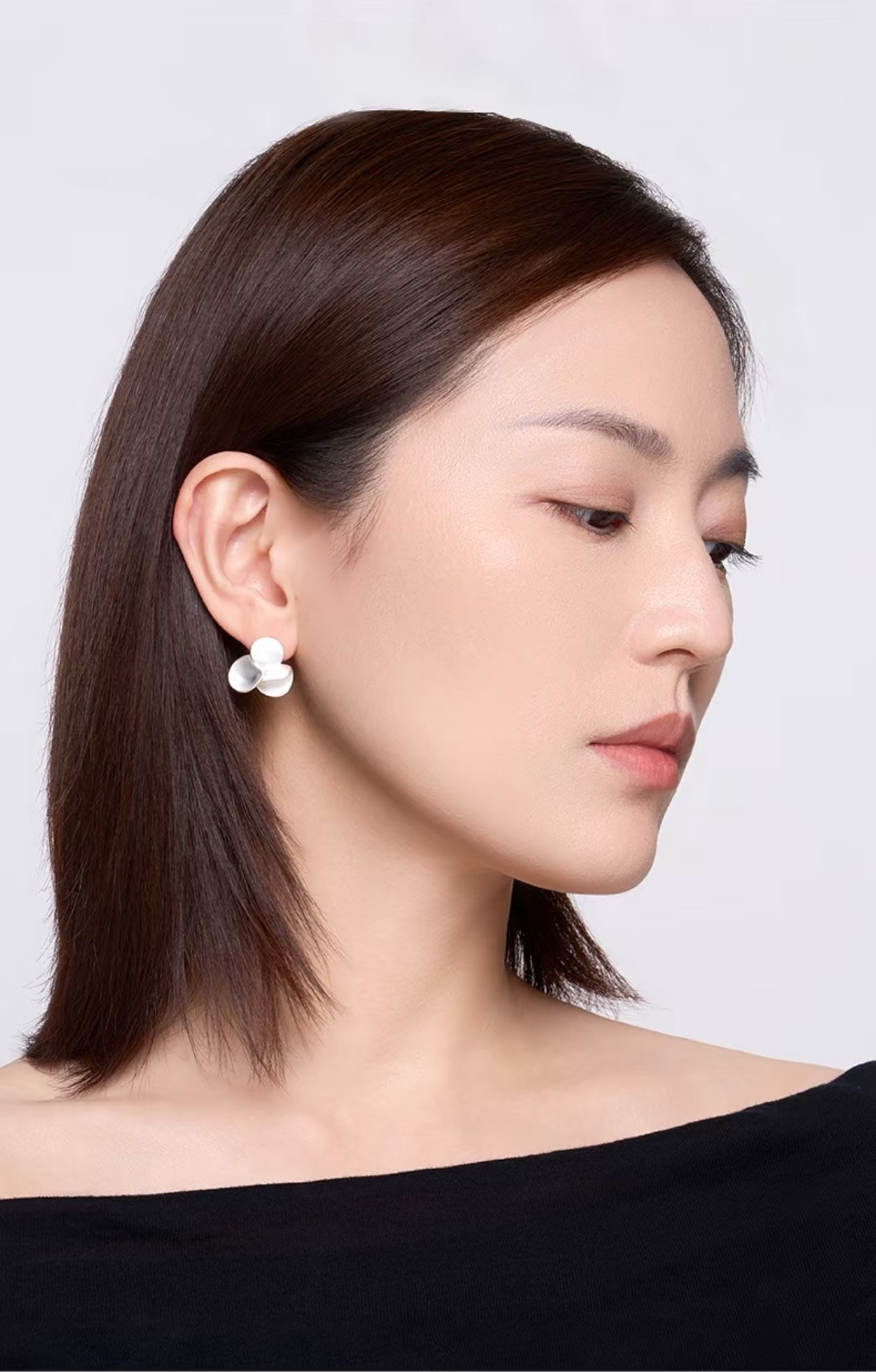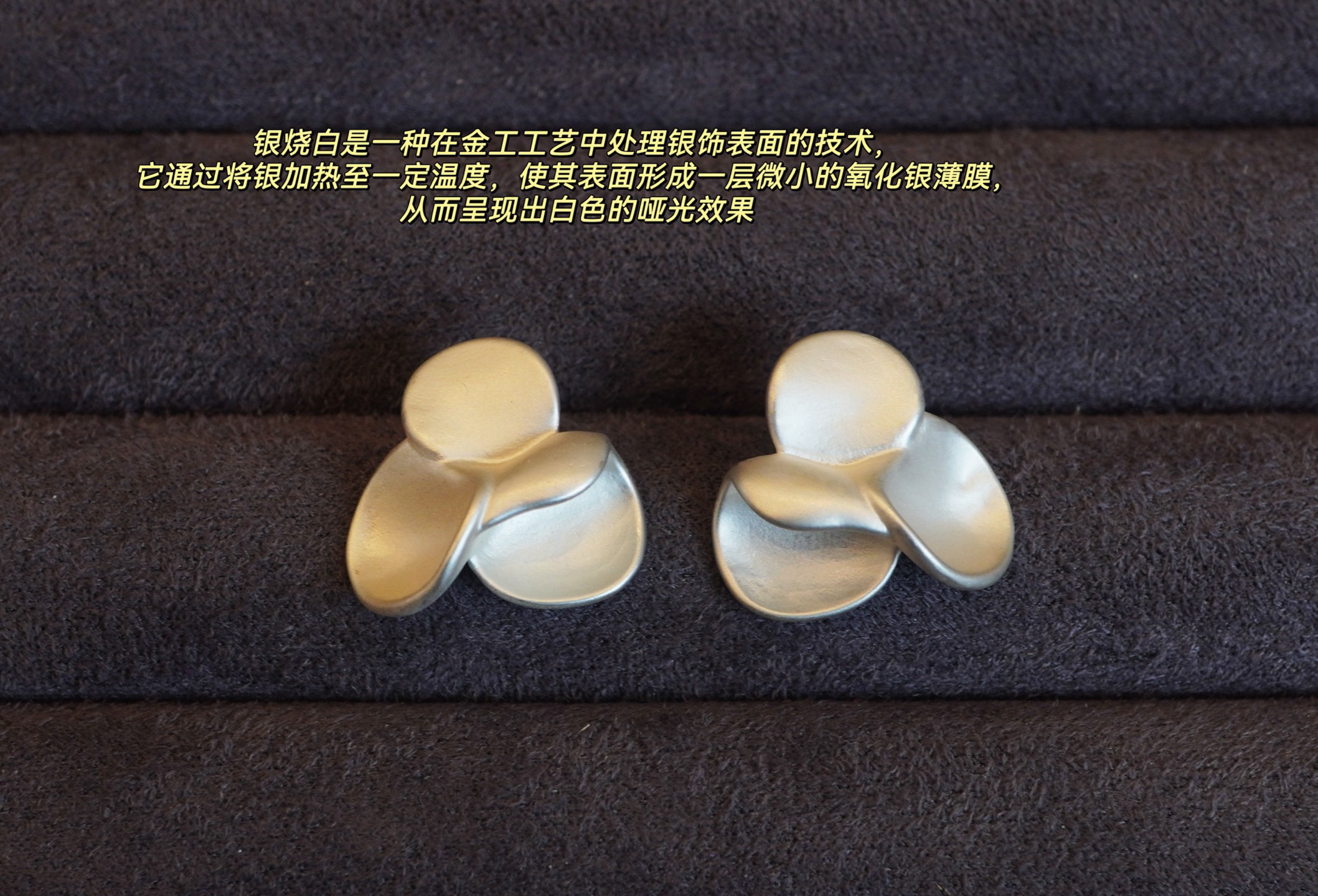 小众清冷优雅感烧白耳钉,银色独有的清冷气质与夏日氛围更为契合!!