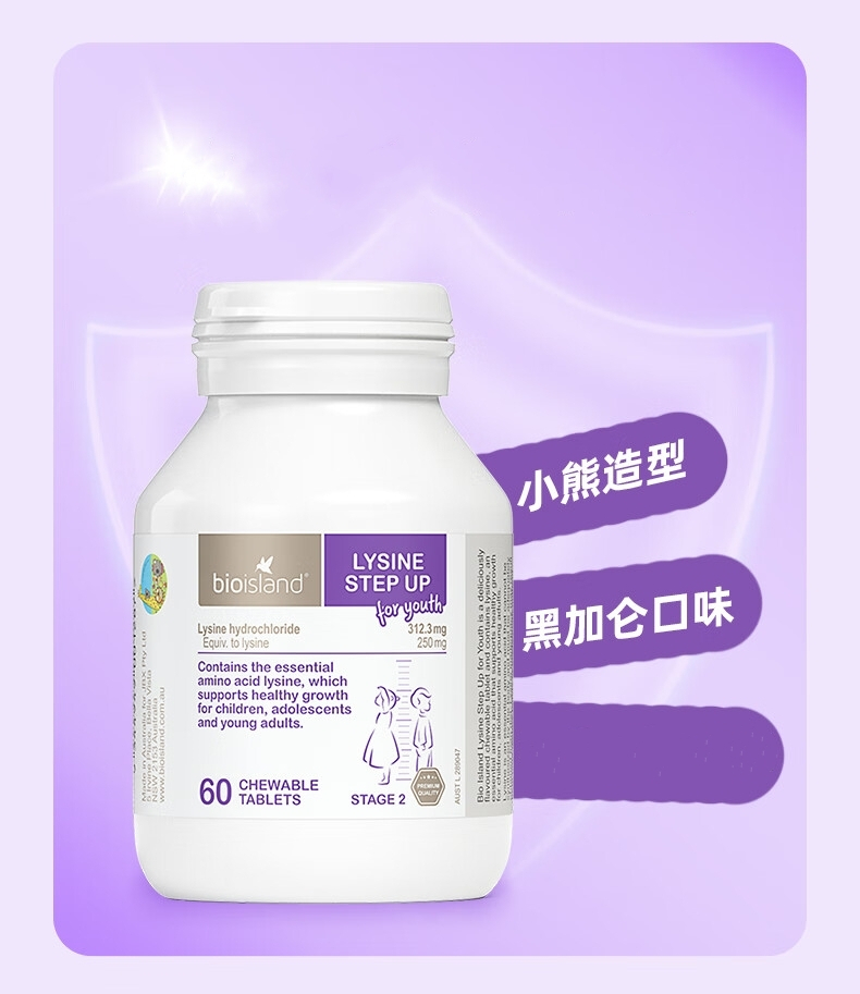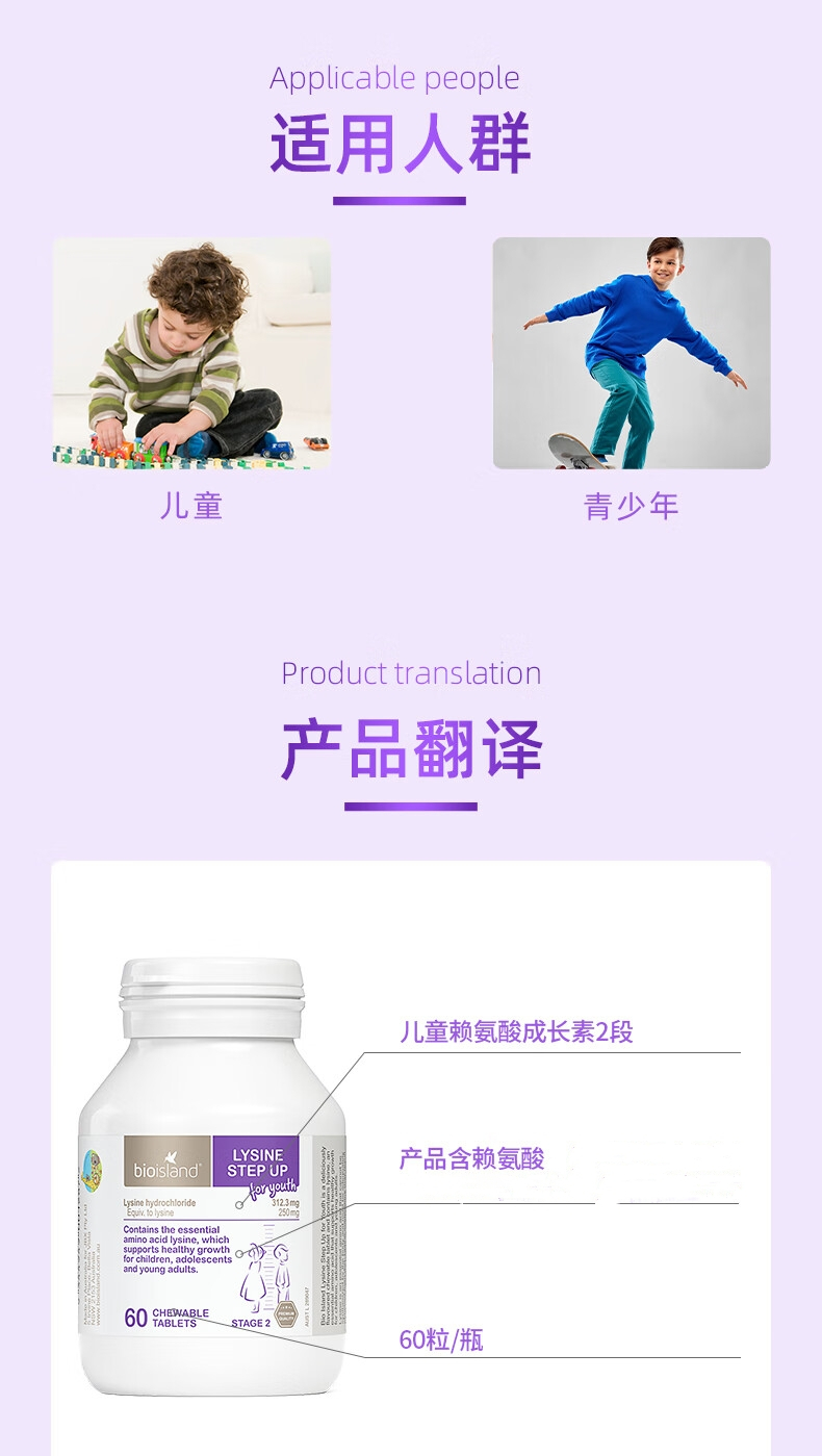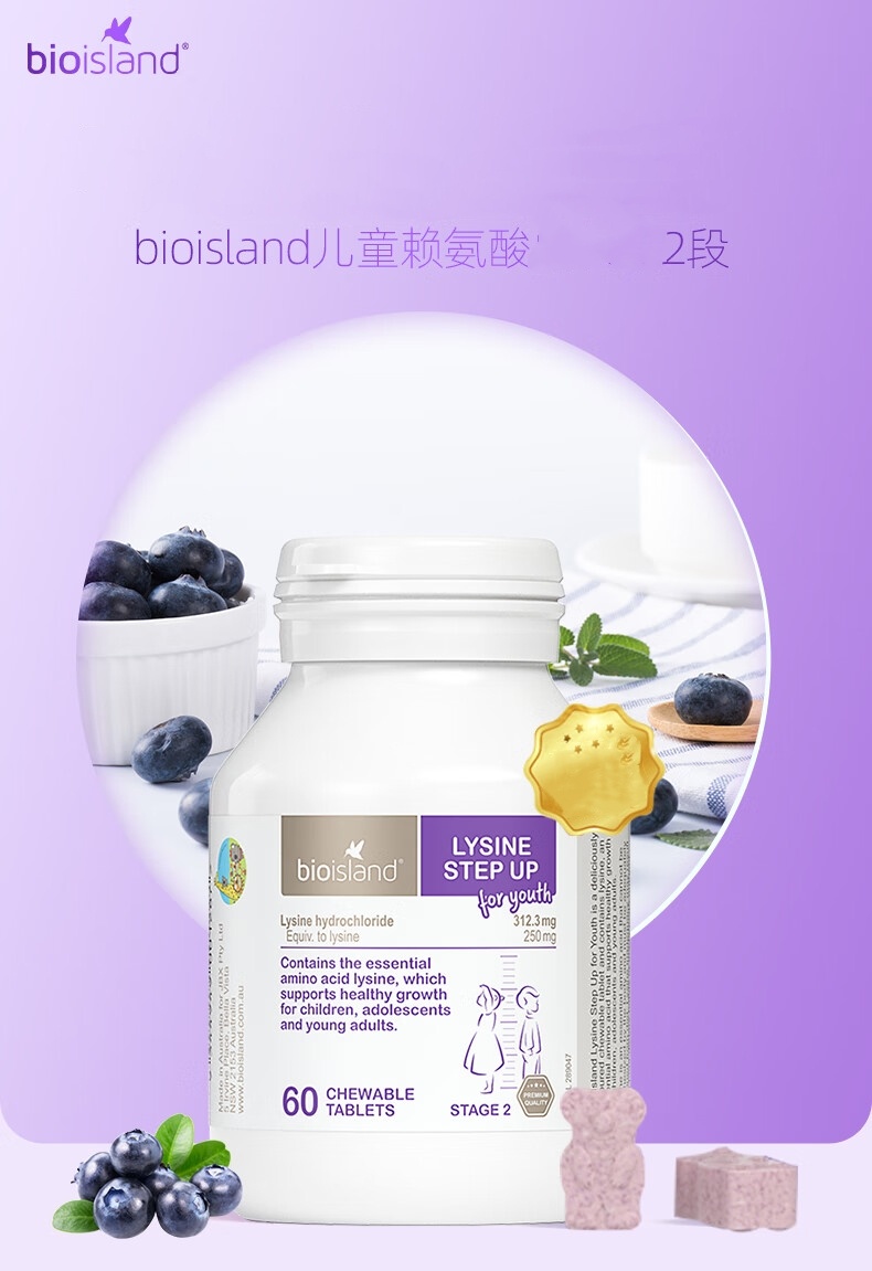 【跨境】佰澳朗德Bioisland 赖氨酸儿童营养素2段 60粒(2028-06)